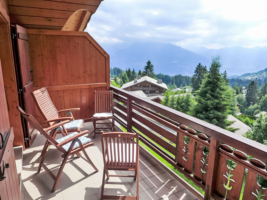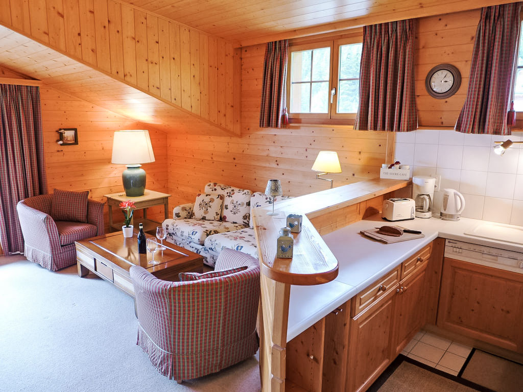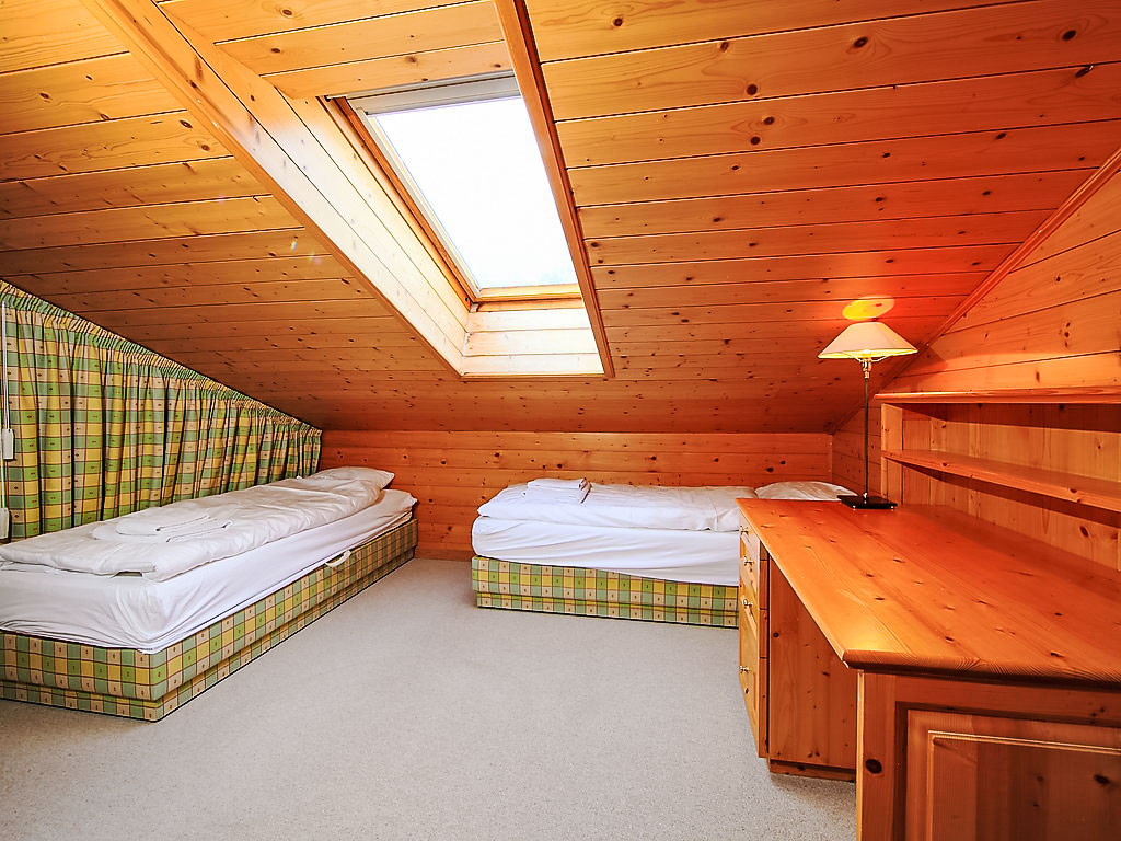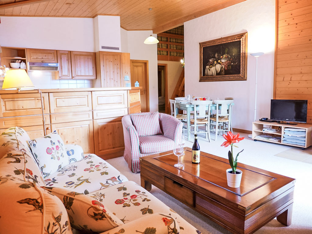 "Le Faucon 7", 4-Zimmer-Wohnung 120 m2 auf 2 Stockwerken im 2. Stock. Hell, teilweise abgeschrägt, komfortabel und schön eingerichtet: Wohn-/Esszimmer mit offenem Kamin, TV und DVD. Ausgang zum Balkon. 1 Zimmer mit 2 Betten und Dusche/WC. 1 Zimmer mit 1 franz. Bett und Bad/WC. Offene Küche (Backofen, Geschirrspüler, 4 Glaskeramikherd Platten, Mikrowelle, Tiefkühler, elektrische Kaffeemaschine). Dachgeschoss: (steile Treppe) abgeschrägte, offene Galerie mit 2 Betten. Dusche/WC. Balkon. Terrassenmöbel. Panoramasicht. Zur Verfügung: Internet (Wireless LAN, gratis). Parkplatz Nr. 7 (überdacht), Garage Nr. 5, Höhe 220 cm, Breite 400 cm.