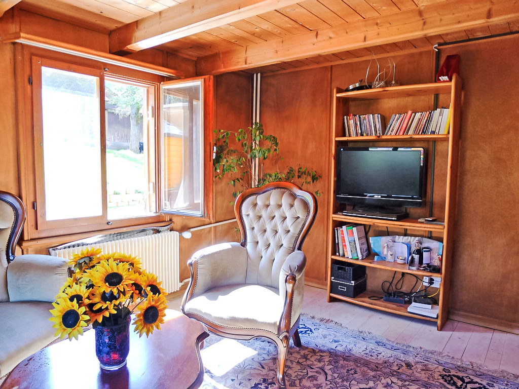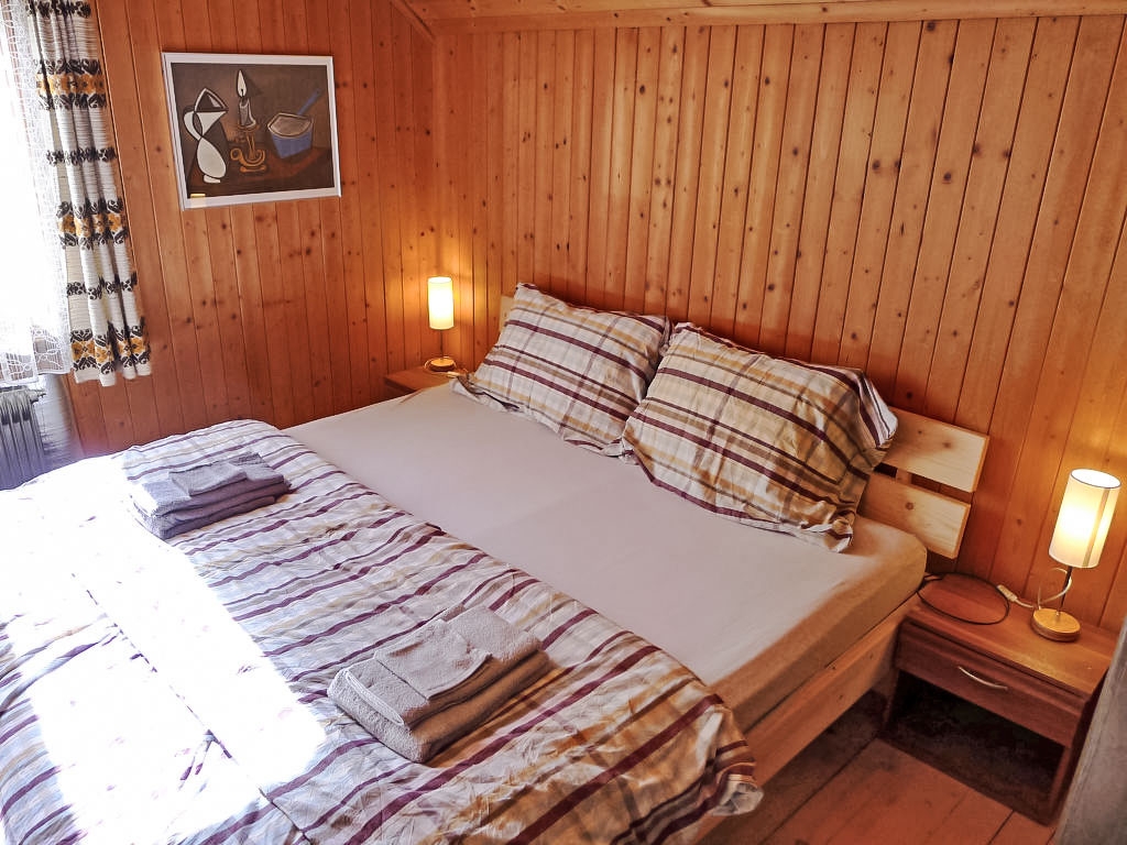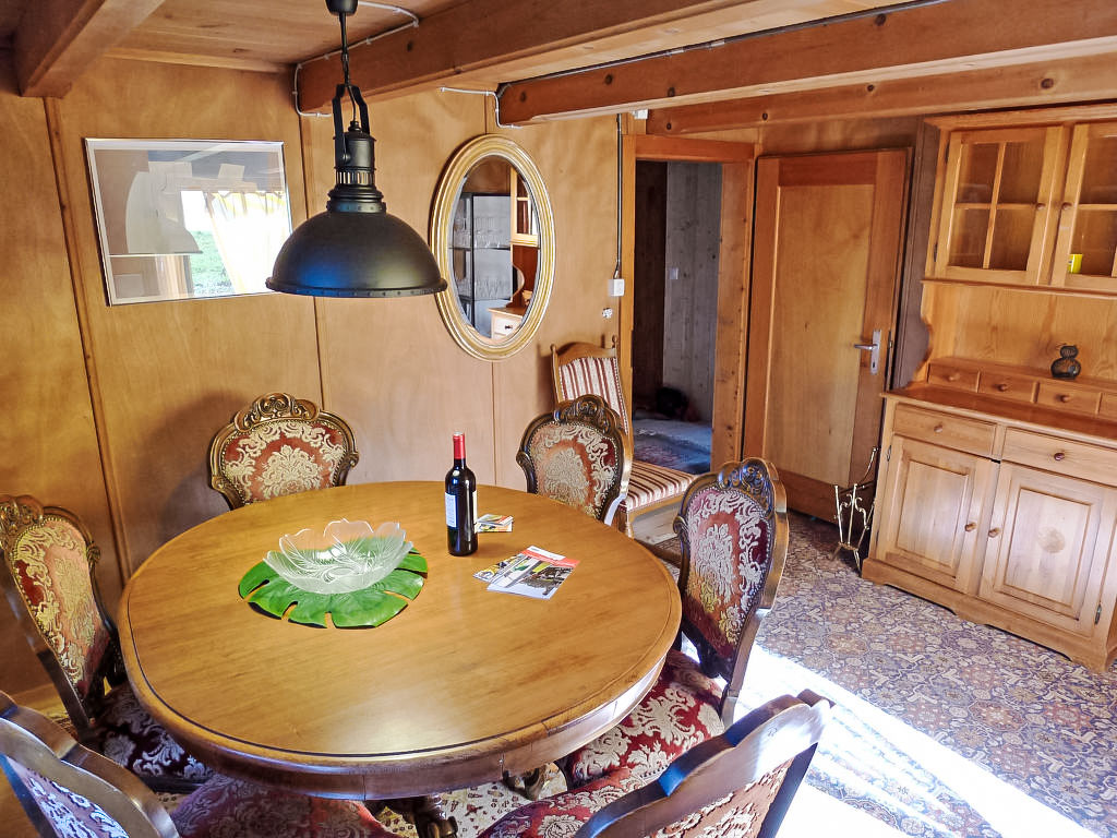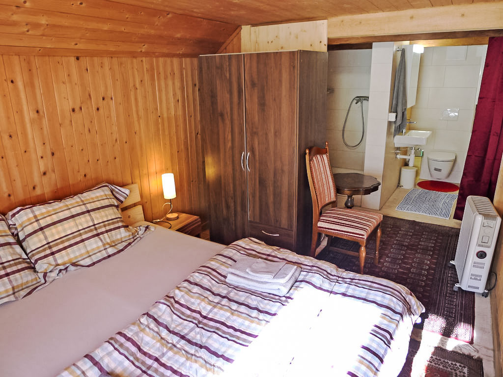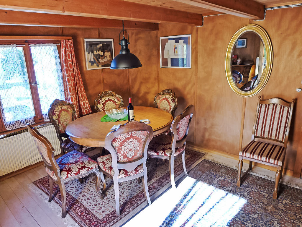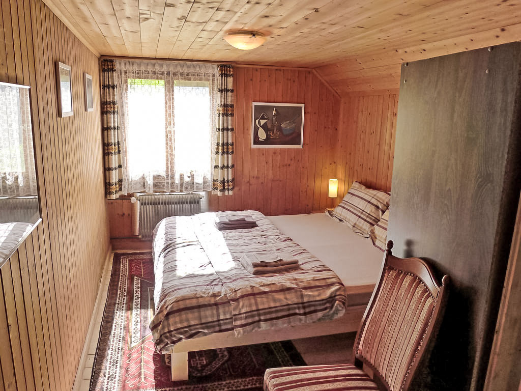 4-Zimmer-Wohnung 100 m2 auf 2 Stockwerken im 1. Stock. Zweckmässig und gemütlich eingerichtet: Wohnzimmer mit 1 Doppeldiwanbett und Kabel-TV (Flachbildschirm). Esszimmer. Ausgang zum Gartensitzplatz. Küche (Backofen, Geschirrspüler, 4 Glaskeramikherd Platten, Mikrowelle, elektrische Kaffeemaschine). Bad/WC. Obergeschoss: 1 Doppelzimmer mit Dusche/WC. 1 Zimmer mit 2 Betten. Grosser Gartensitzplatz. Terrassenmöbel, Gartengrill, Liegestühle (3). Schöne Sicht auf die Berge und die Landschaft. Zur Verfügung: Internet (Wireless LAN, gratis). Parkplatz. Bitte beachten: Nichtraucher-Unterkunft. 1 Haustier/Hund erlaubt.