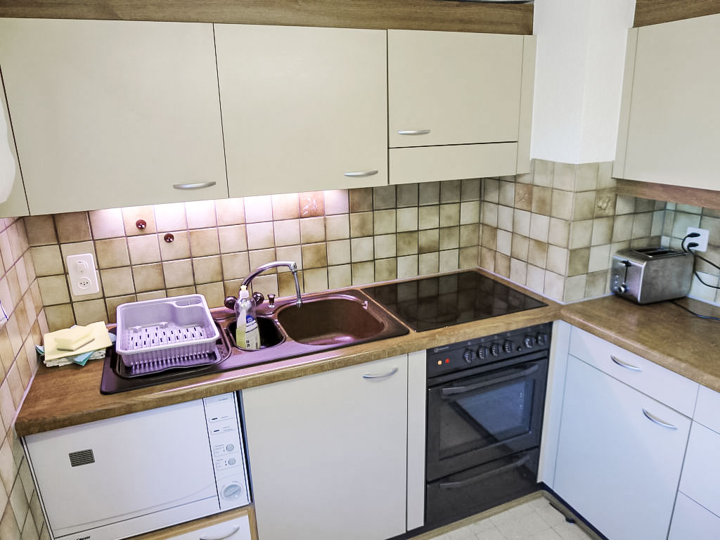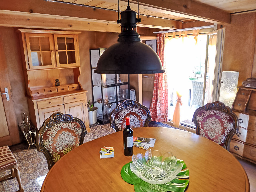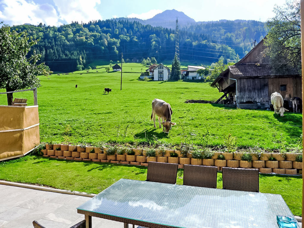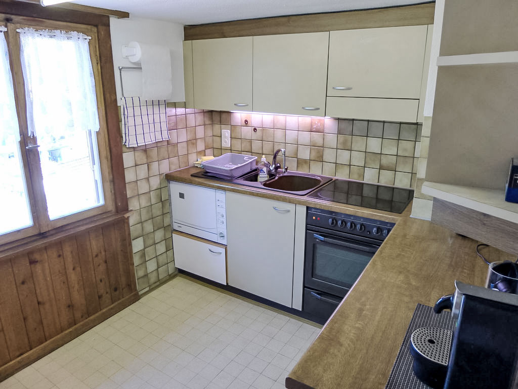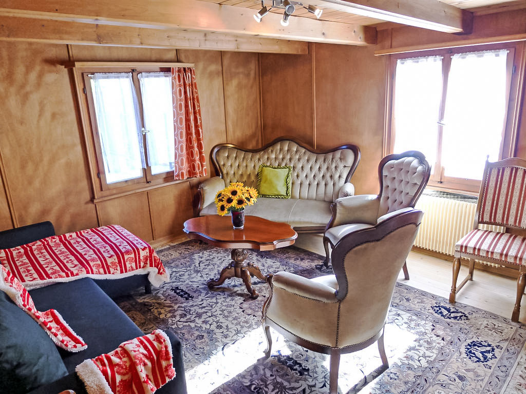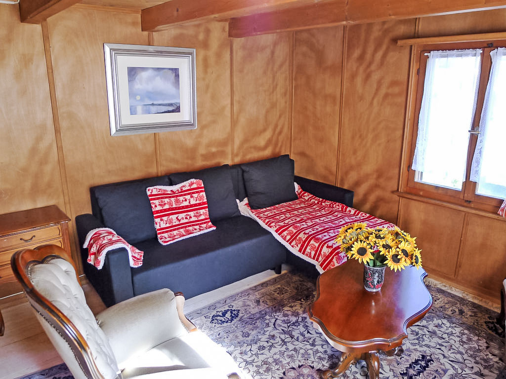 4-Zimmer-Wohnung 100 m2 auf 2 Stockwerken im 1. Stock. Zweckmässig und gemütlich eingerichtet: Wohnzimmer mit 1 Doppeldiwanbett und Kabel-TV (Flachbildschirm). Esszimmer. Ausgang zum Gartensitzplatz. Küche (Backofen, Geschirrspüler, 4 Glaskeramikherd Platten, Mikrowelle, elektrische Kaffeemaschine). Bad/WC. Obergeschoss: 1 Doppelzimmer mit Dusche/WC. 1 Zimmer mit 2 Betten. Grosser Gartensitzplatz. Terrassenmöbel, Gartengrill, Liegestühle (3). Schöne Sicht auf die Berge und die Landschaft. Zur Verfügung: Internet (Wireless LAN, gratis). Parkplatz. Bitte beachten: Nichtraucher-Unterkunft. 1 Haustier/Hund erlaubt.