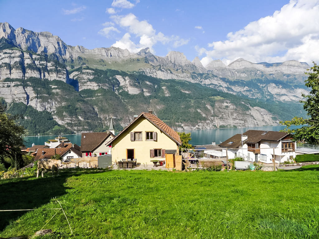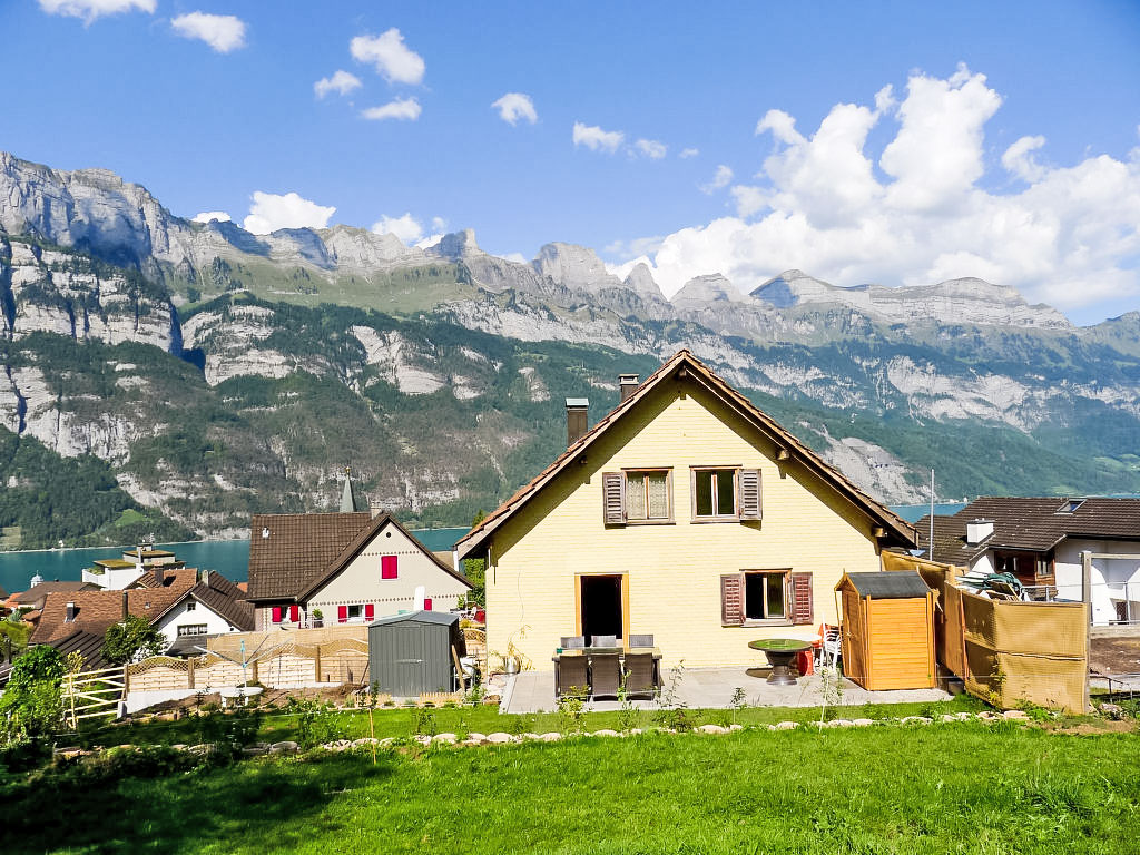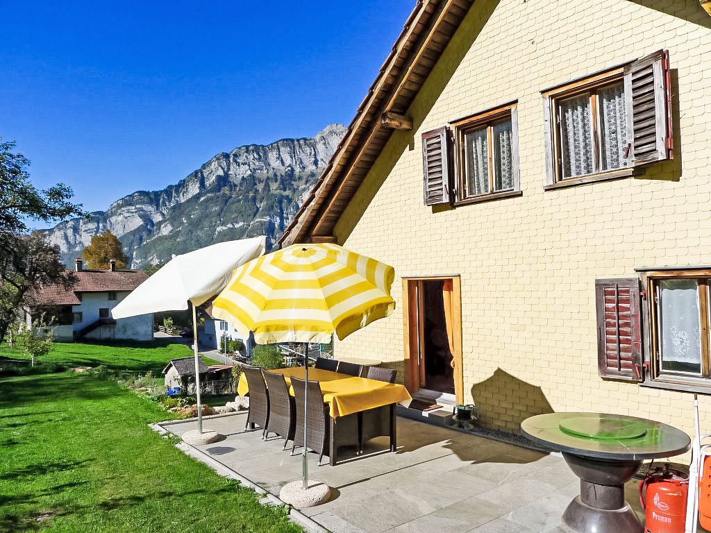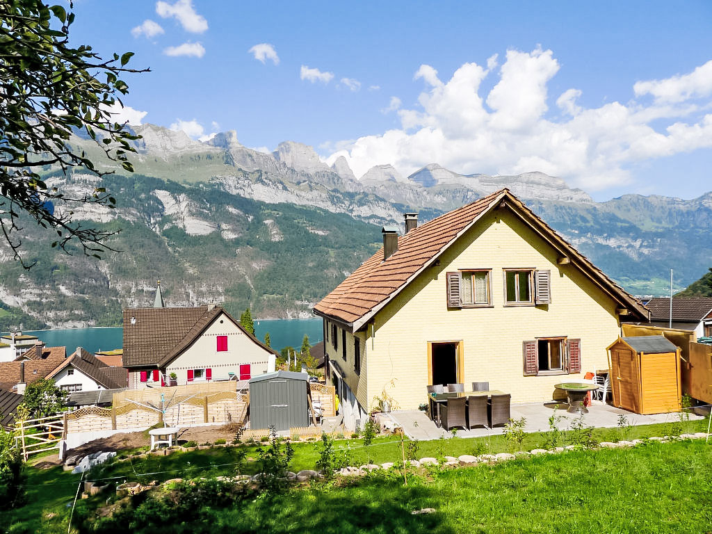 Gemütliches, rustikales Zweifamilienhaus "Im Hof", auf 3 Stockwerken, umgeben von Wiesen. Am Ortsrand, ruhige, sonnige Lage am Hang, 2 km vom Skigebiet. Zur Alleinbenutzung: Naturgarten. Grill. Im Hause: Skiraum, Zentralheizung, Waschmaschine, Wäschetrockner (zur Mitbenutzung). Zufahrt bis zum Haus. Parkplatz beim Haus. Lebensmittelgeschäft 2 km, Restaurant 2 km, Bahnstation "Unterterzen" 2 km, Steinstrand 2 km, See Walensee 2 km. Gondelbahn 2 km, Skisportanlagen 2 km, Skipisten 2 km, Skiverleih 2 km, Skischule 2 km, Kinderspielplatz 200 m. Bekannte Skigebiete sind gut erreichbar: Flumserberg 2 km. Bekannte Seen in der Umgebung sind gut erreichbar: Walensee 2 km. Bitte beachten: Tiere in der Umgebung.
