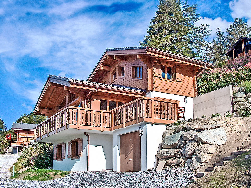 Les Djettes: Sehr Chalet "Marella", auf 3 Stockwerken, Baujahr 2005. Ausserhalb des Ortes, 2 km vom Zentrum, ruhige Lage am Hang, 100 m vom Waldrand. Zur Alleinbenutzung: Garten mit Rasen. Sehr steile Zufahrt. Im Winter bitte Schneeketten mitbringen. Parkplatz, Einzelgarage. Maße: Höhe 190 cm Breite 230 cm. Einkaufsgeschäft 1.5 km, Restaurant 1.5 km. Golfplatz 15 km, Gondelbahn 1.7 km, Skibushaltestelle 200 m. Bitte beachten: Gratis Skibus.