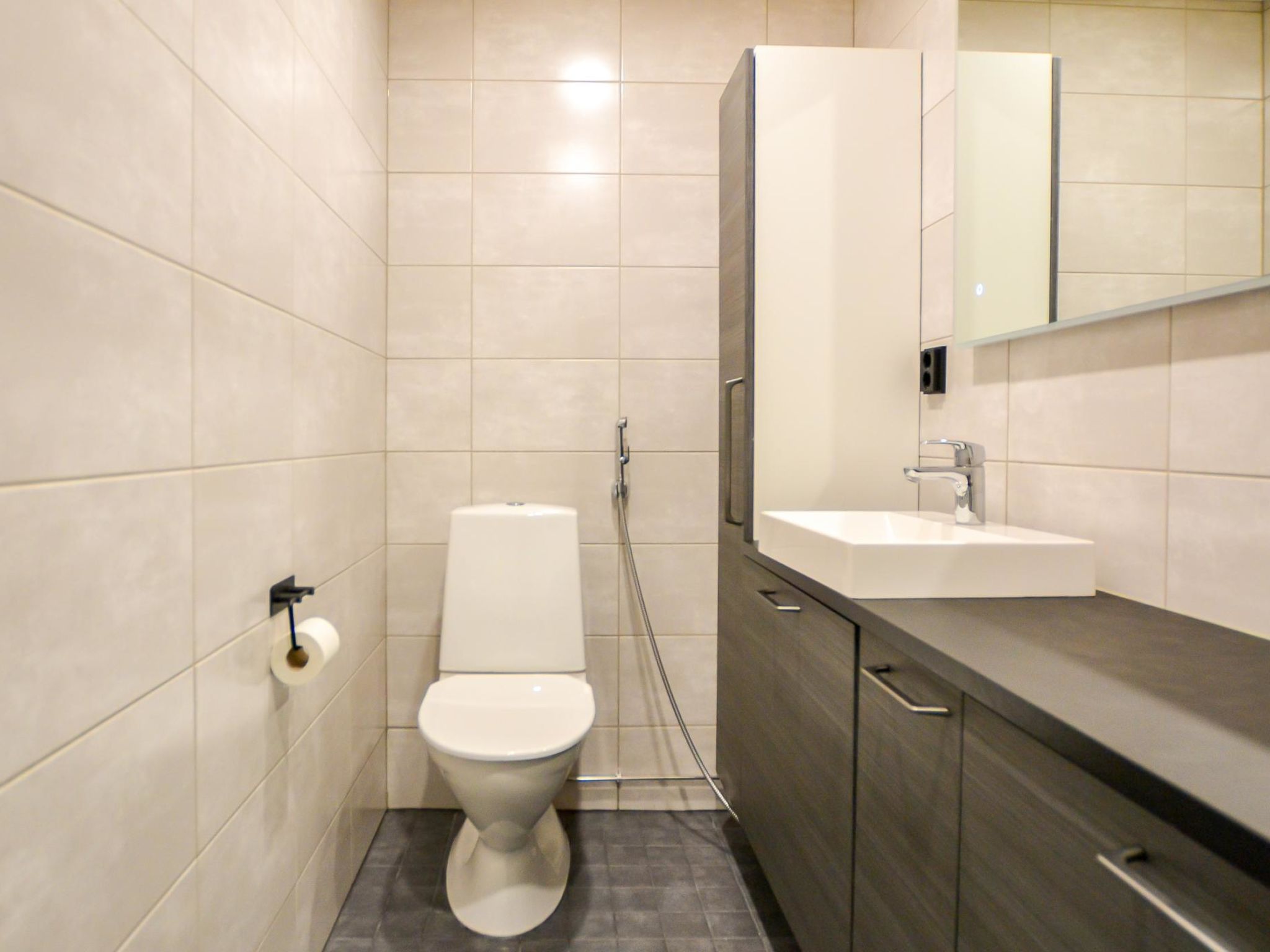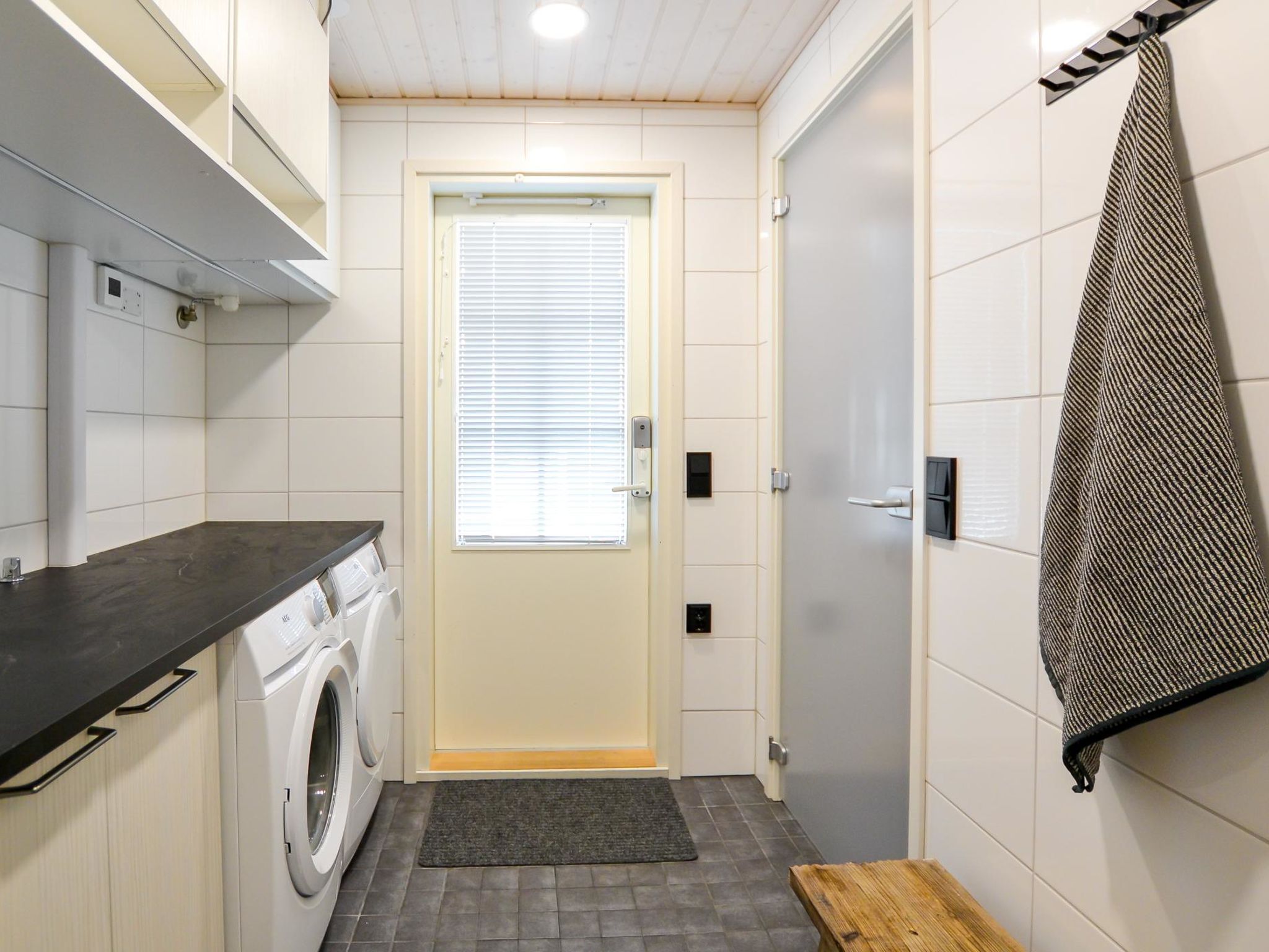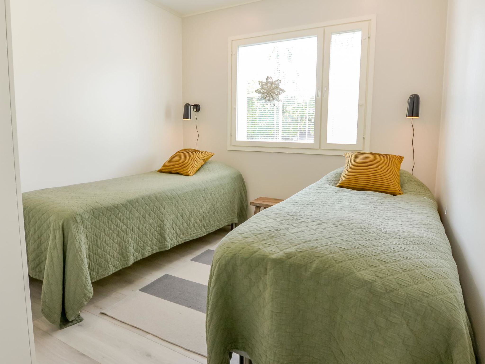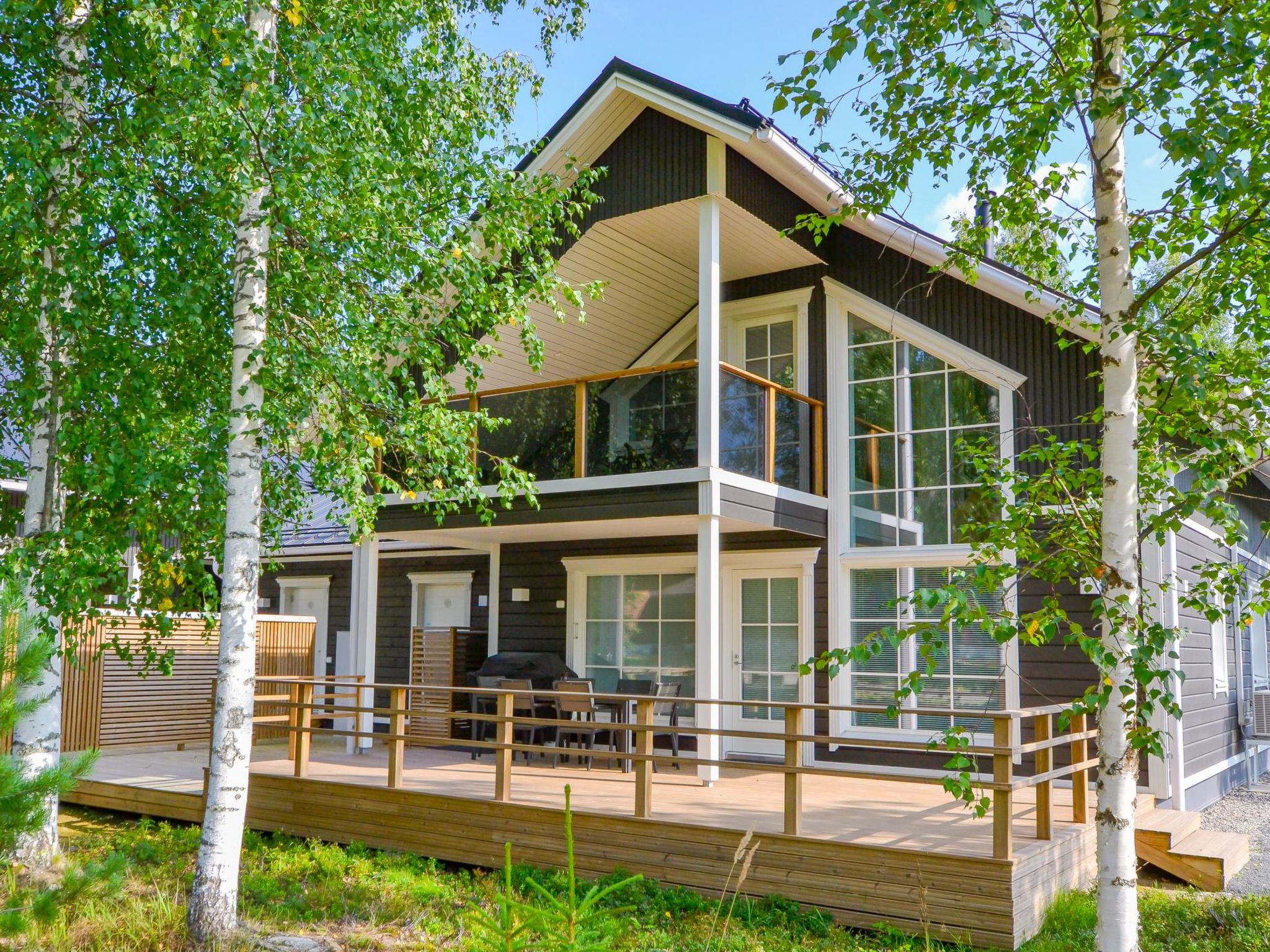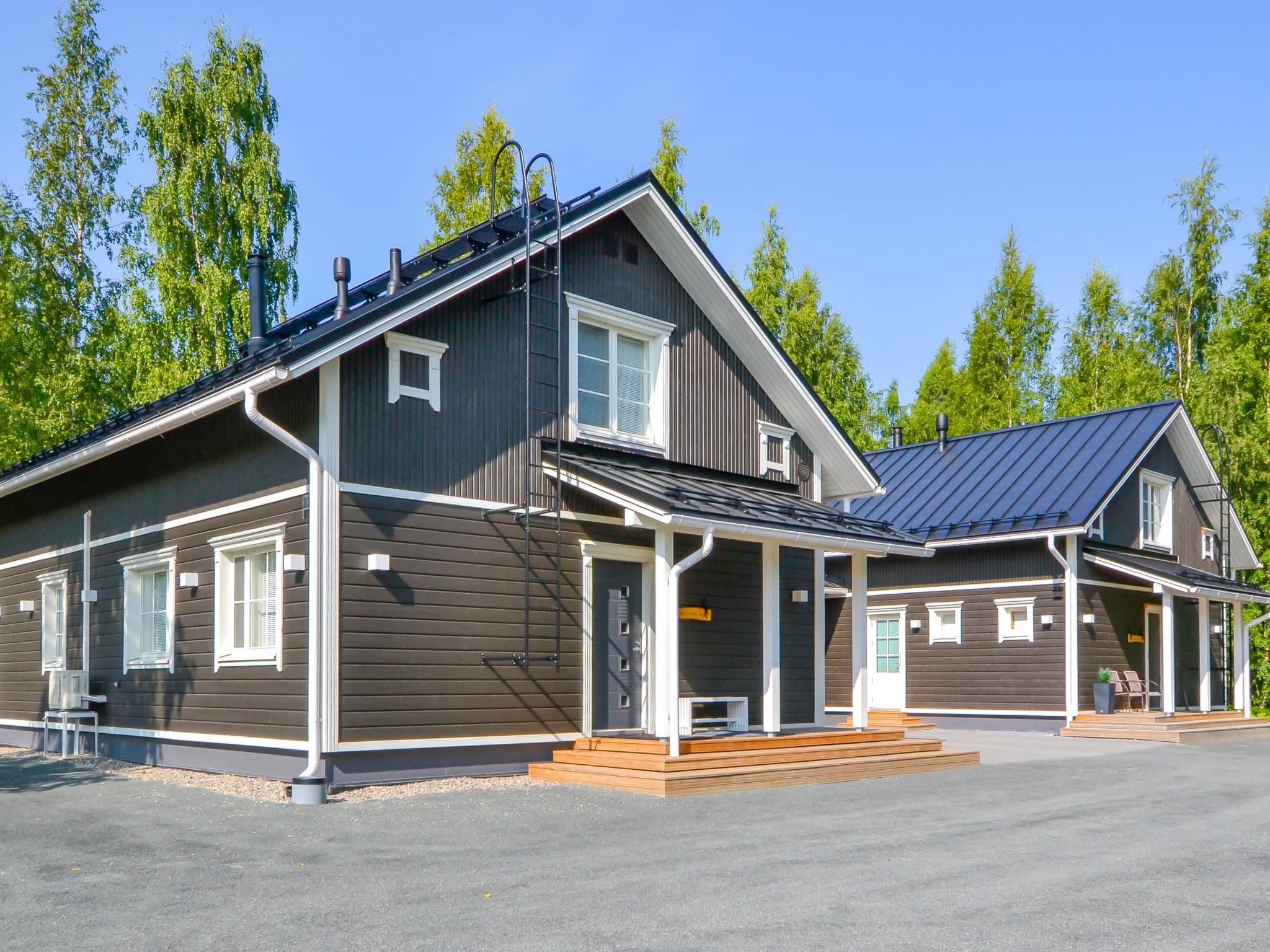 Elegante und hochwertige Ferienwohnung (Doppelhaushälfte), in der Nähe des Skizentrums Tahko. Zwischen beiden Wohnungen befinden sich Lagerhallen, so dass die Wohnungen nicht direkt nebeneinander liegen. Alle Materialien, Möbel und Technik sind von hoher Qualität. Diese Unterkunft eignet sich am besten für Familien, Firmen und Paare. Die Übergabe der Unterkungt an den Kunden erfolgt jedoch nicht, wenn alle anreisenden Personen das 25. Lebensjahr noch nicht vollendet haben. Die zweistöckige Ferienwohnung wurde im Jahr 2021 gebaut. Im Erdgeschoss: geräumige Wohnküche, 2 Schlafzimmer mit je 2 Betten, Hauswirtschaftsraum, Waschraum, Sauna (Elektroherd), 2x WC, Flur und Terrasse. Im Obergeschoss: Schlafzimmer mit 2 Betten + Balkon und Schlafzimmer mit 2 Betten, Waschraum mit Dusche %26 WC. Die eigentlichen TV-Kanäle werden nur über Yle Areena und Ruutu+ gezeigt. Netflix, Cmore Total und Disney + Kanäle/Filme sind ebenfalls verfügbar. 5G-Internetverbindung (Geschwindigkeit 600 MB) und Stecker zum Aufladen von Elektroautos (11 kwh) nur für Anwohner. Unter den Saunabänken befinden sich Lautsprecher mit Bluetooth-Verbindung. Die Wohnung befindet sich in einem ruhigen Ferienhausgebiet, jedoch nur wenige Gehminuten von allen Diensten in Tahko entfernt. Der Hund des Vermieters hat die Wohnung gelegentlich besucht, daher ist die Wohnung nicht für Allergiker geeignet. Die Nachbarwohnung befindet sich im Bau, die Außenarbeiten sind bereits abgeschlossen, die Arbeiten werden in den Innenräumen und hauptsächlich an Wochentagen fortgesetzt. Pisten und Restaurants 1,2 km, gemeinsamer Strand von Tahkonlahti 1,2 km, Tahko Spa 1,5 km, Tahko Golf 2 km, Nilsiä 13 km, Kuopio 65 km, Matkus Einkaufszentrum 70 km. Buchungen beginnen um 16:00 Uhr und enden am Abreisetag spätestens um 12:00 Uhr (einschließlich Wochenendbuchungen).