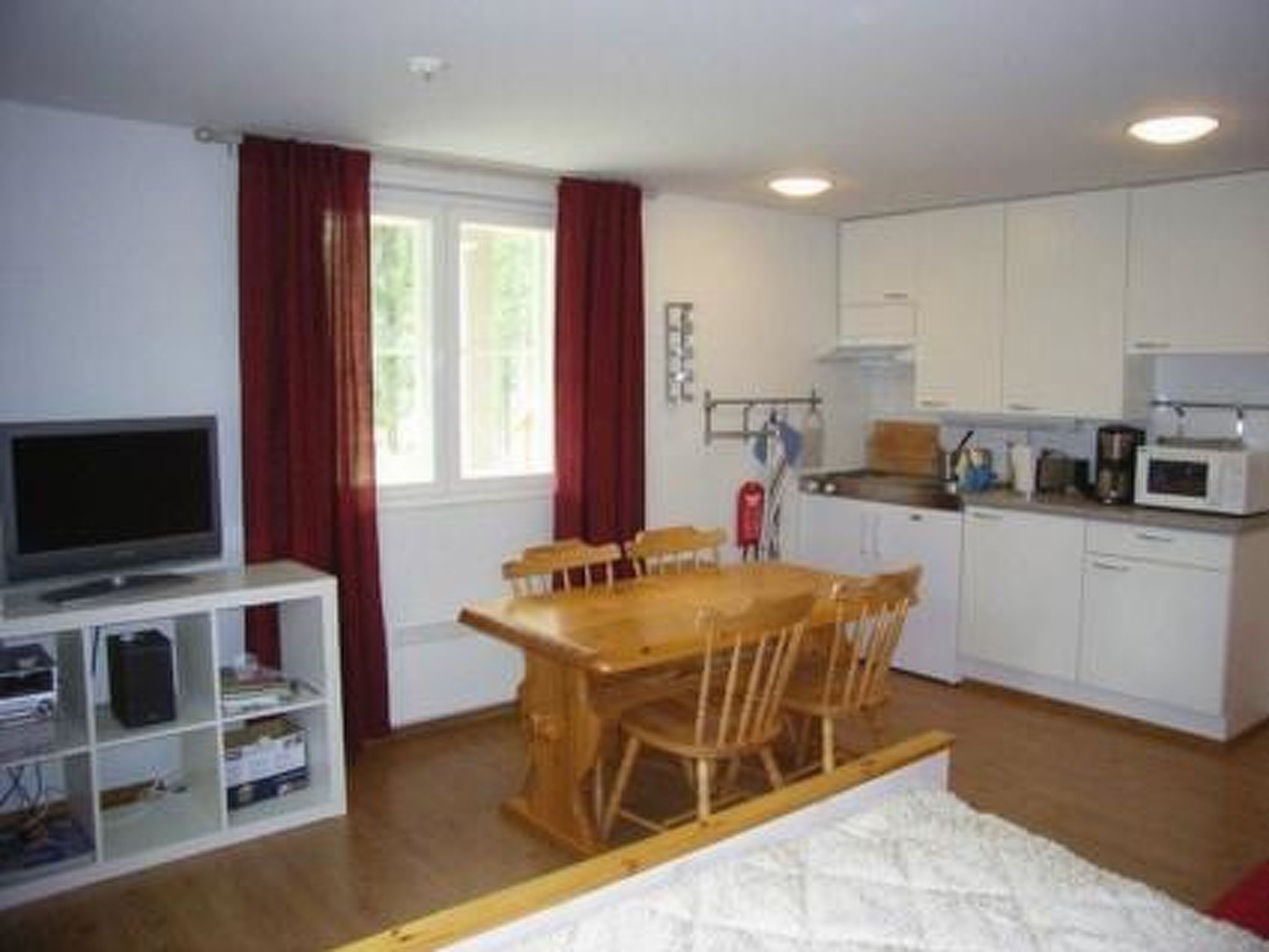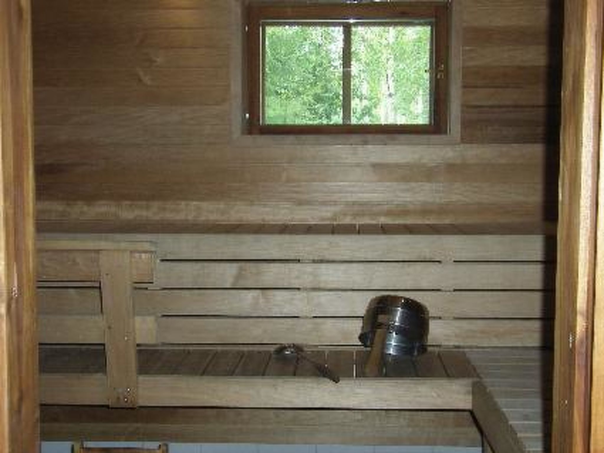 65 km nordöstlich von Kuopio, See Syväri 50 m, am Ufer der Petäjälahti-Bucht gelegen, flaches und hartes Sandbodenufer, eigenes Boot. Dreistöckiges Blockhaus, Baujahr 2007, mit 7 separaten Räumen und Gemeinschaftsraum. Obergeschoss: 2 Ferienwohnungen mit je 1 Schlafzimmer 2+1 Betten (eins mit 1 Doppelbett), Wohnzimmer mit Miniküche, Waschraum, WC, Mikrowelle, TV, CD-Spieler. Zwischen den 2 Ferienwohnungen befindet sich Wohnbereich/Bibliothek mit Sofa und Sesseln für 10 Personen, sowie 2 Zustellbetten. Mittlere Etage: drei Ferienwohnungen, davon 2 mit einem Schlafzimmer mit 2 Betten, Miniküche im Wohnbereich, Waschraum, WC, Mikrowelle, TV, CD-Spieler. Die dritte Ferienwohnung ist eine Einzimmerwohnung mit Etagenbett (1+1 Betten) und Behindertentoilette. In der mittleren Etage befindet sich der Salon des Chalets, der entweder als Konferenzraum oder als Esszimmer dient. Es gibt eine gute Küche, die an Salon angeschlossen ist. Erdgeschoss: 2 Ferienwohnungen mit je 2 Betten (eins mit 1 Doppelbett), Miniküche, Waschraum, WC, Mikrowelle, TV, CD-Spieler. Im Erdgeschoss gibt es auch ein Zimmer mit Kamin, Flachbildfernseher, Billardtisch, DVD- und CD-Spieler. Sauna mit E-Herd, Waschraum (5 Duschen). Auf der Seeseite des Chalets befindet sich eine grosse Terrasse. Ufersauna (50 m²) mit Kaminzimmer / Küche, Sauna (Holzofen), Waschraum, Ankleideraum und grosse Terrasse. Das Gebäude verfügt über elektrische Kochplatte, elektrischen Kühlschrank, Wärmespeicherkamin, warmes und kaltes Wasser, sowie 2 Duschen. Dieses Chalet, im Stadtteil Nipanen, in Tahkovuori, eignet sich ideal für Konferenzen oder als Veranstaltungsort für Partys und Feiern für mehrere Familien. Das Chalet verfügt über alle für Konferenzen erforderlichen AB-Geräte. Das Gebäude befindet sich am Ende einer Strasse, am eigenen Seeufer und das ruhige Grundstück ist in einem natürlichen Zustand. Kein Durchgangsverkehr. Hinweis: Haustiere sind im Erdgeschoss gestattet, ABER NICHT im Kaminzimmer und in der Saunaabteilung. Buchungen sind ab 16:00 Uhr am Anreisetag bis 12:00 Uhr (Mittag) am Abreisetag gültig. (Dies gilt auch für Wochenendbuchungen). Das Haus wird nicht an junge Leute vermietet.