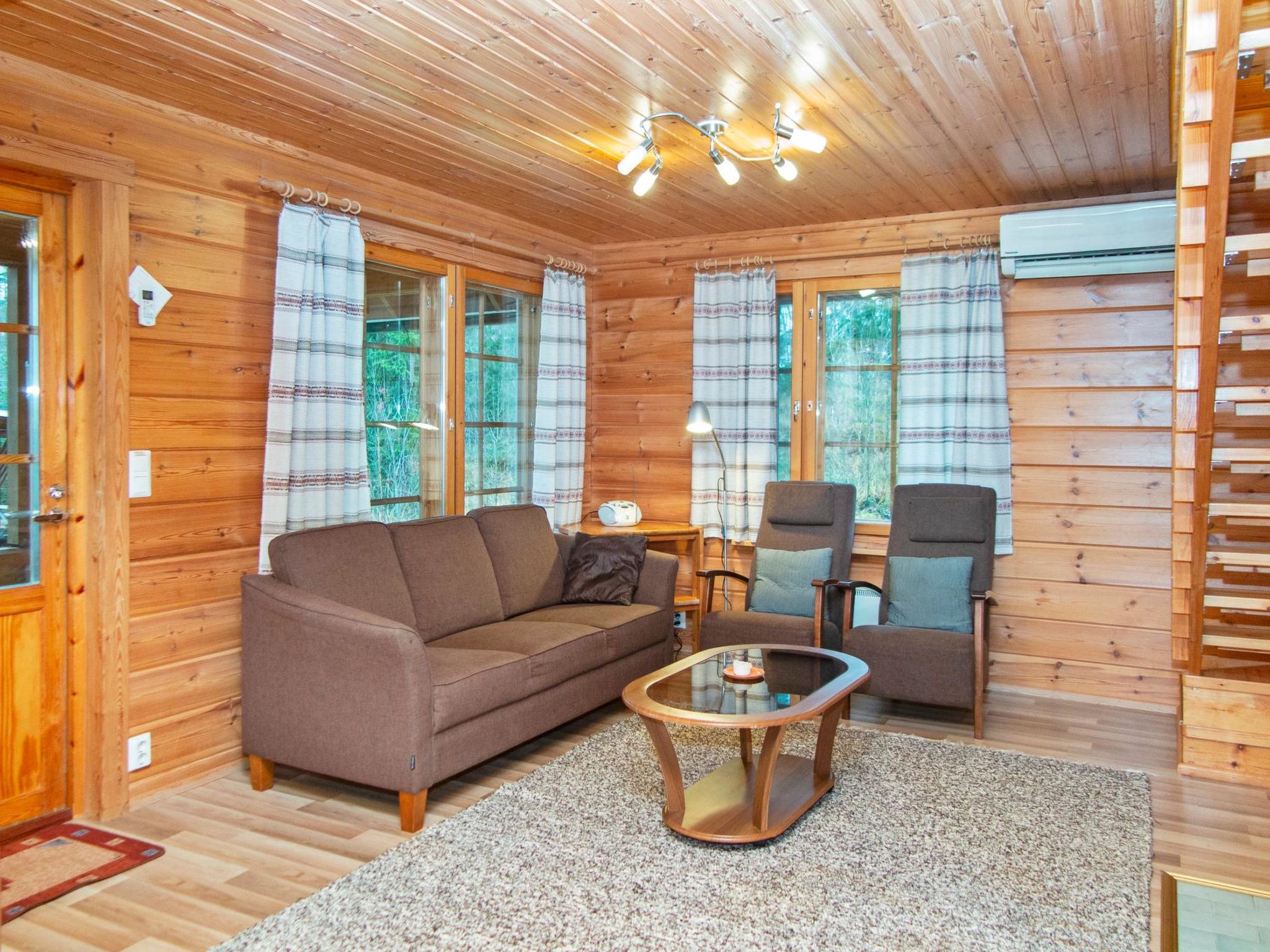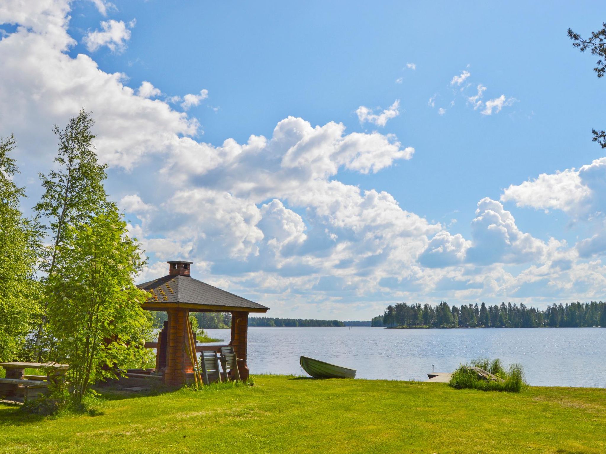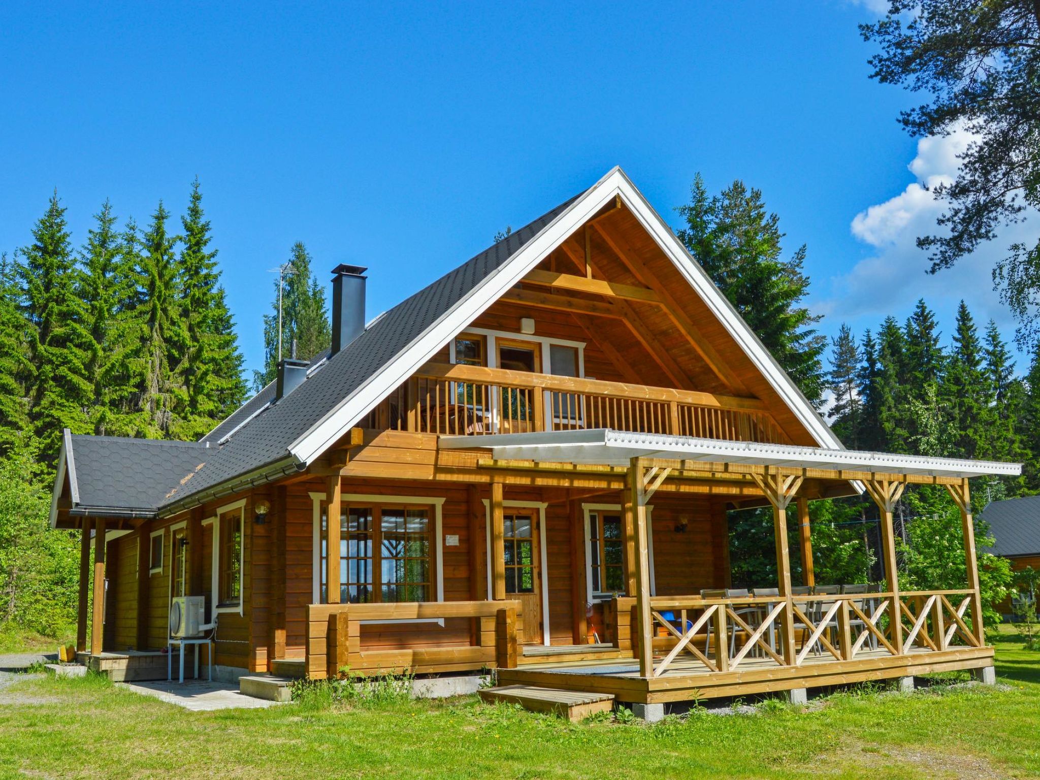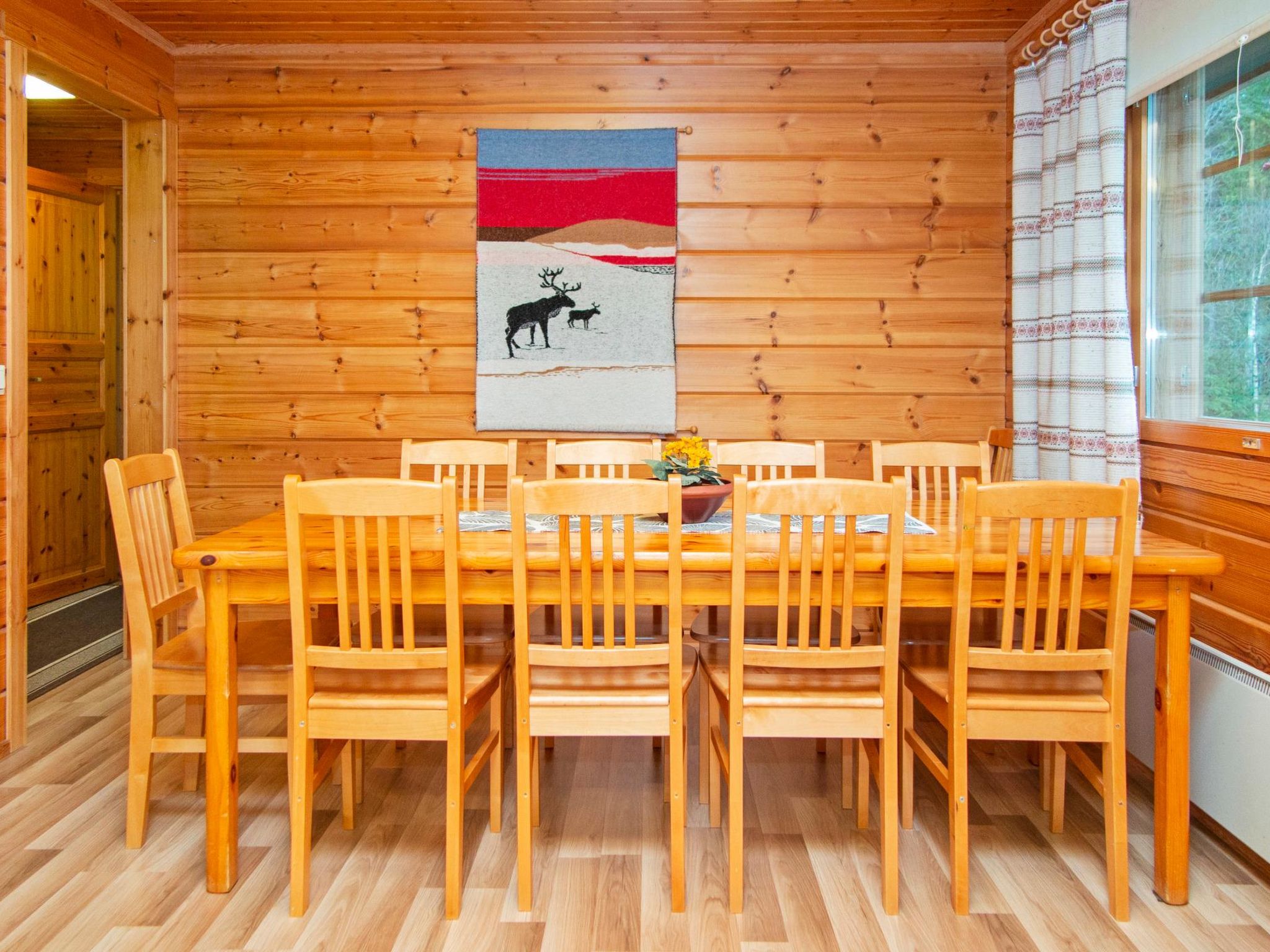 60 km nordöstlich von Kuopio, See Syväri 50 m (Länge 30 km, Breite 5 km), flaches Wasser, harter Sandboden, eigenes Boot, Anlegestelle. Blockhaus, Baujahr 1999, Wohnküche (Erdgeschoss und Wohnküche sind 2014 komplett renoviert worden), 1 Schlafzimmer mit 2 Betten. Im Obergeschoss 2 Schlafzimmer mit je 2 Betten, Schlafzimmer mit 3 Betten, Ankleideraum, Waschraum, Sauna (elektrischer Saunaofen), Terrasse. Für Kinder Schutzgitter an den Treppen. Ferienhäuser: 810, 811, 812, 4660, 4661, 6078, 6079, 6827, 6828, 6829, 7024 und 7025. Die Blockhäuser sind mit allen Einrichtungen ausgestattet und befinden sich in Simunaniemi, am Ufer des wunderschönen Sees Syväri. Jedes Haus hat eigenes Ufer und Boot. Eigenes Spielhaus. Motorboot- und Fahrradverleih, Babybett und Hochstuhl sind gegen Gebühr (auf Vorbestellung) verfügbar, gutes Gelände zum Beeren- und Pilzsammeln, markierte Routen für Mountainbikes, Tennisplätze 7 km und 3 km, Golf 4 km, Tahko Spa 4 km (auch Bowling), Zentrum von Nilsiä 8 km entfernt.