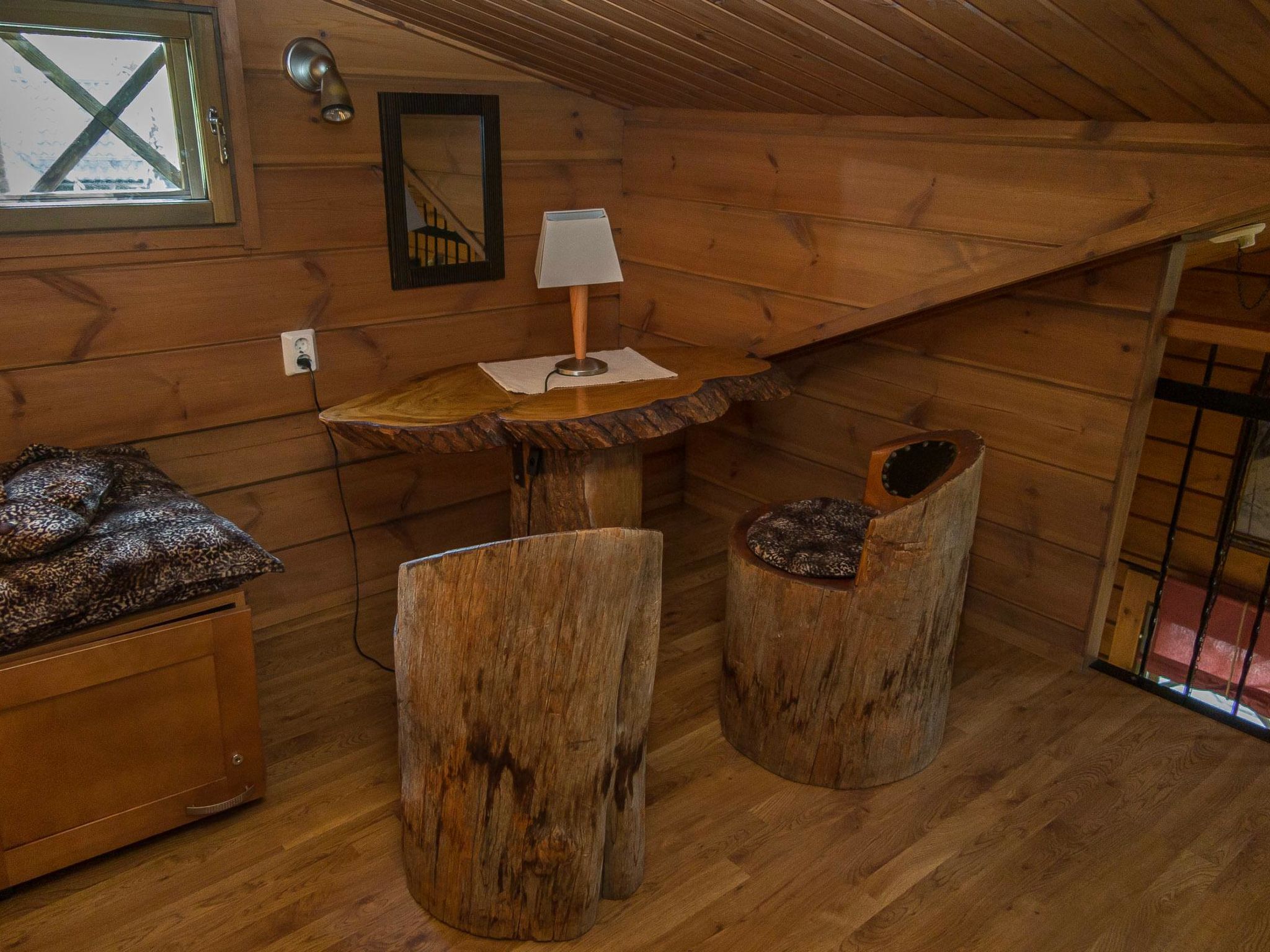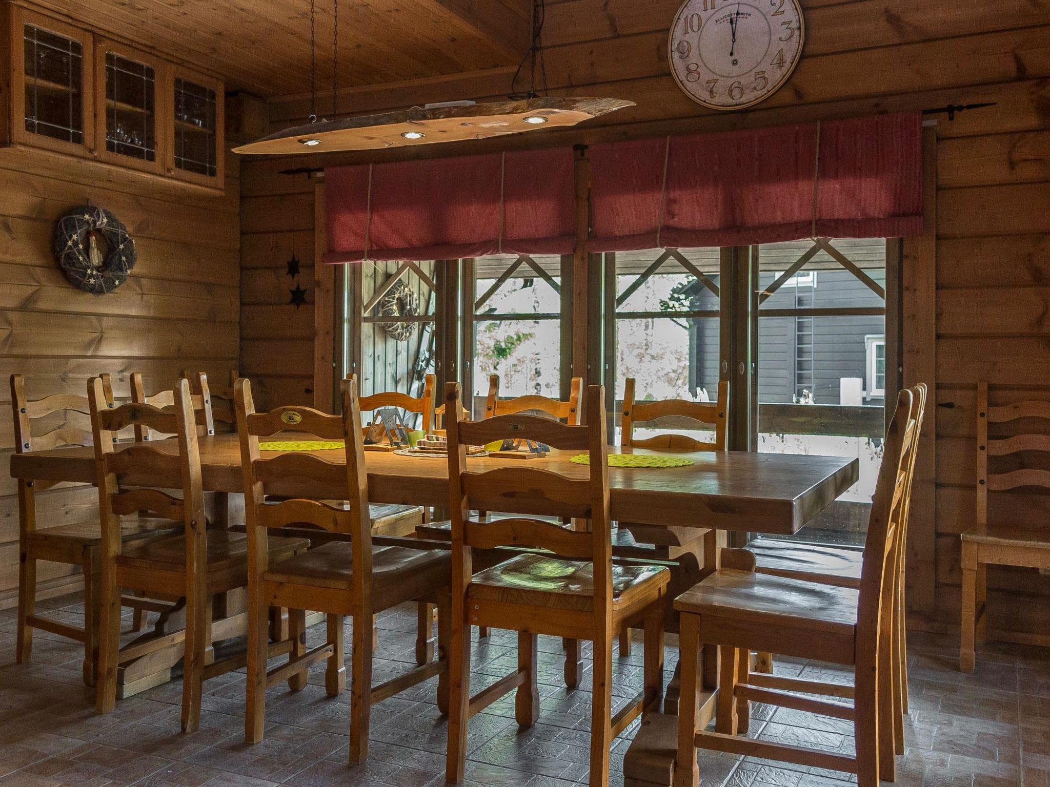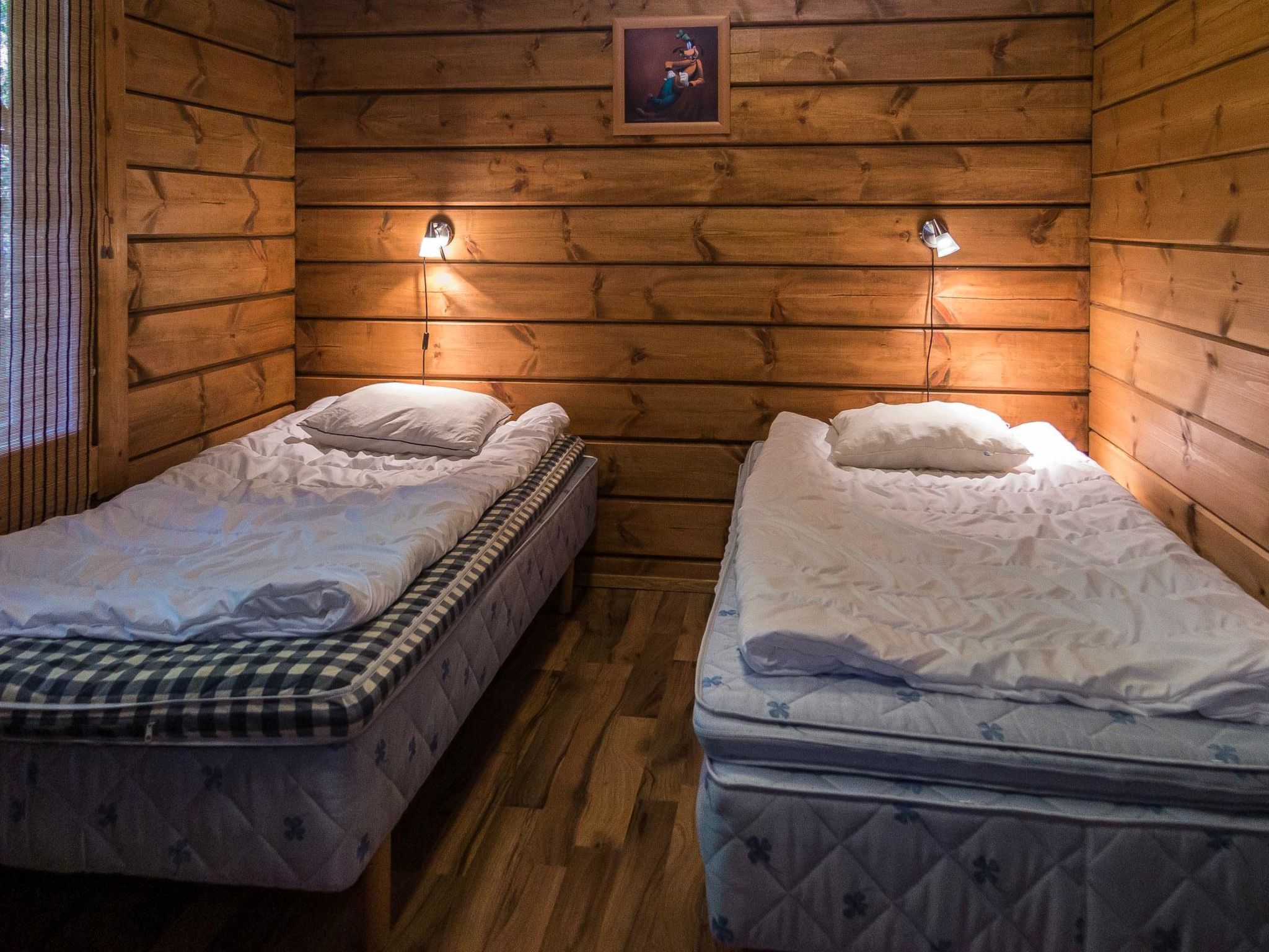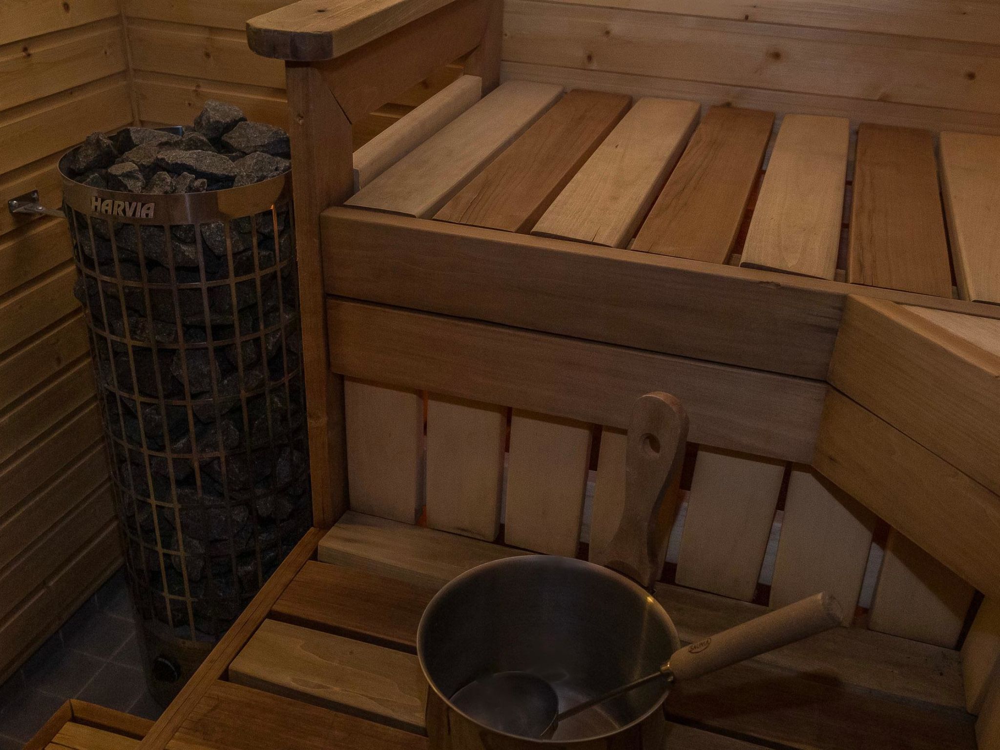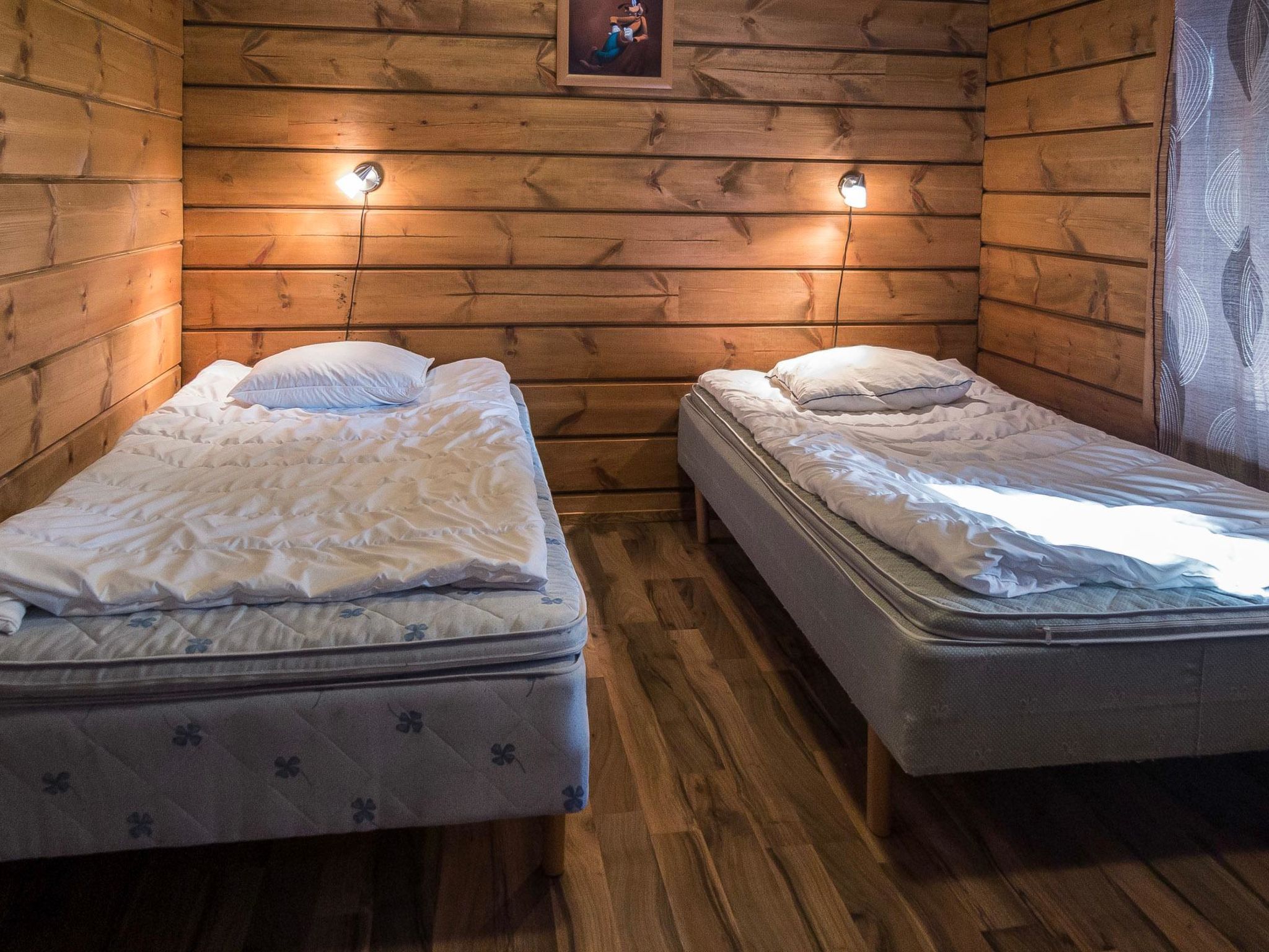 65 km nordöstlich von Kuopio, See Syvärijärvi 300 m, öffentliches Badeufer 1.2 km, kein Boot inbegriffen. Herrliches, isoliertes Chalet im Herzen des Skizentrums Tahkovuori. Tahkonbalju Hauptchalet (170 m²) wurde im Jahr 2005 und der Saunabereich (85 m²) im Jahr 2008 gebaut. Erdgeschoss: Wohnküche, 2 Schlafzimmer mit je 2 Betten (Doppelbetten mit Matratzenauflage), Waschraum, WC, Sauna (Elektroherd). Obergeschoss: 3 Einzelzimmer, Nische mit 2 Betten, Flur mit 2 Betten, WC. Steile Wendeltreppe nach oben. Zwei separate Schlafzimmer mit je 2 Betten, diese Schlafzimmer befinden sich in einem separaten Teil des Chalets und sind über die Veranda zugänglich. Luftwärmepumpe. Separater Saunabereich mit Kaminzimmer (Gasherd), Waschraum (4 Duschen) und grosse Sauna (E-Herd). Ausserhalb des Saunabereichs befindet sich grosser Whirlpool, der im Mietpreis enthalten ist. Es gibt eine Veranda rund um das gesamte Chalet und alle separaten Gebäude befinden sich unter dem gleichen Dach. Vor der Villa befindet sich auch Glaspavillon mit Infrarot-Heizung. Hochwertige Tankonbalju-Ferienvilla, mit einem wunderschönen, waldreichen und flachen Grundstück, im Skigebiet Tahkovuori, in der Nähe eines Golfplatzes. Die Villa verfügt über zwei Saunen, sechs Duschen, "Hot Pot" (heisser Topf), drei Toiletten, zwei Kamine und einen Skiraum. 3 Fernseher, ADSL-Internetverbindung (Geschwindigkeit 1 MB) und Musikanlage in der Hauptvilla, sowie in der Saunaabteilung. Miete der Villa beinhaltet Brennholz, Toilettenpapier, Waschmittel, Gewürze, Sitzbezüge, Folien, Kunststofffolien, Backen, Bratfett und Gasgrill. Nachbarn auf beiden Seiten, die Lage ist trotzdem noch ruhig. Alle Annehmlichkeiten sind zu Fuss erreichbar, Spa 1.1 km, Skipisten, Geschäfte und Restaurants 1.1 km. Golfplatz und Club 600 m. Die Buchungen beginnen am selben Tag um 16:00 Uhr und enden um 16:00 Uhr. Buchungen können nicht am selben Tag beginnen und enden.