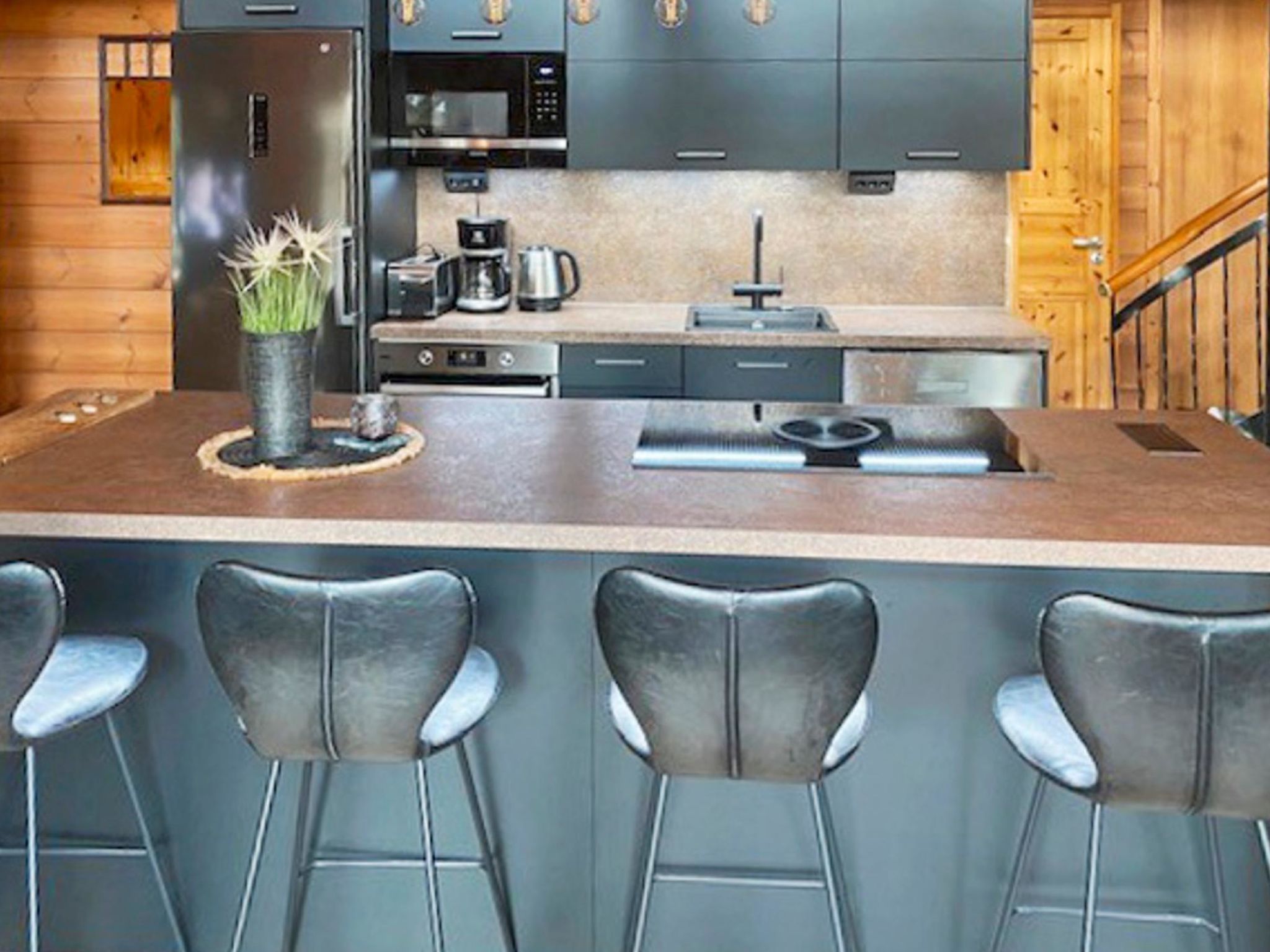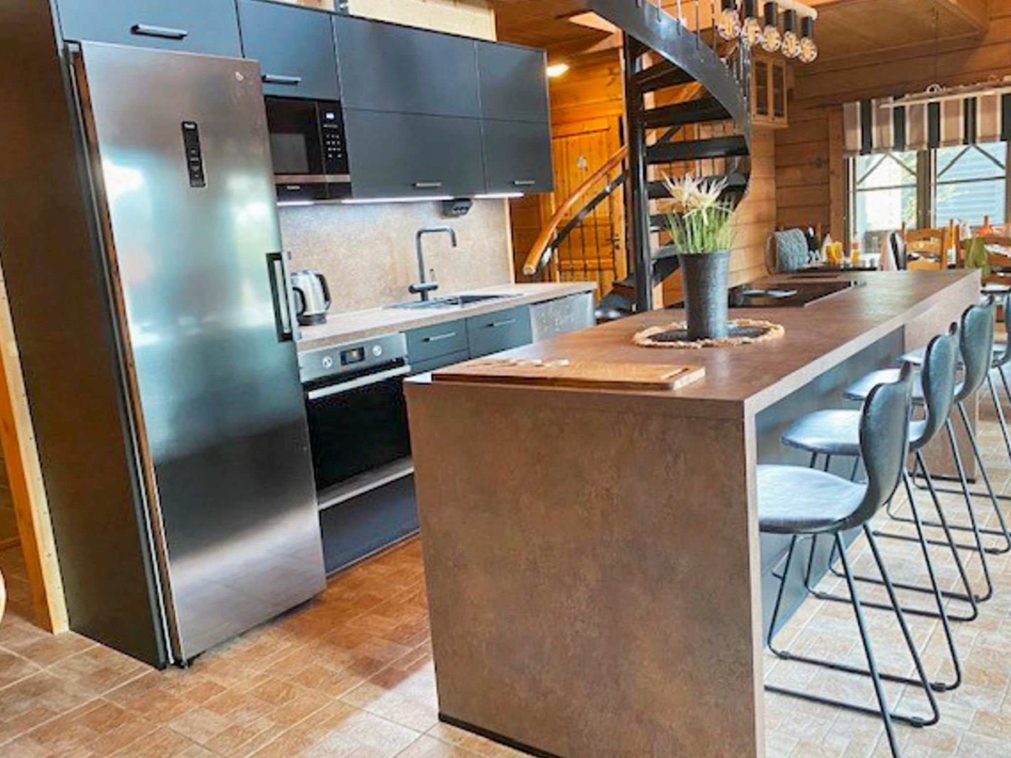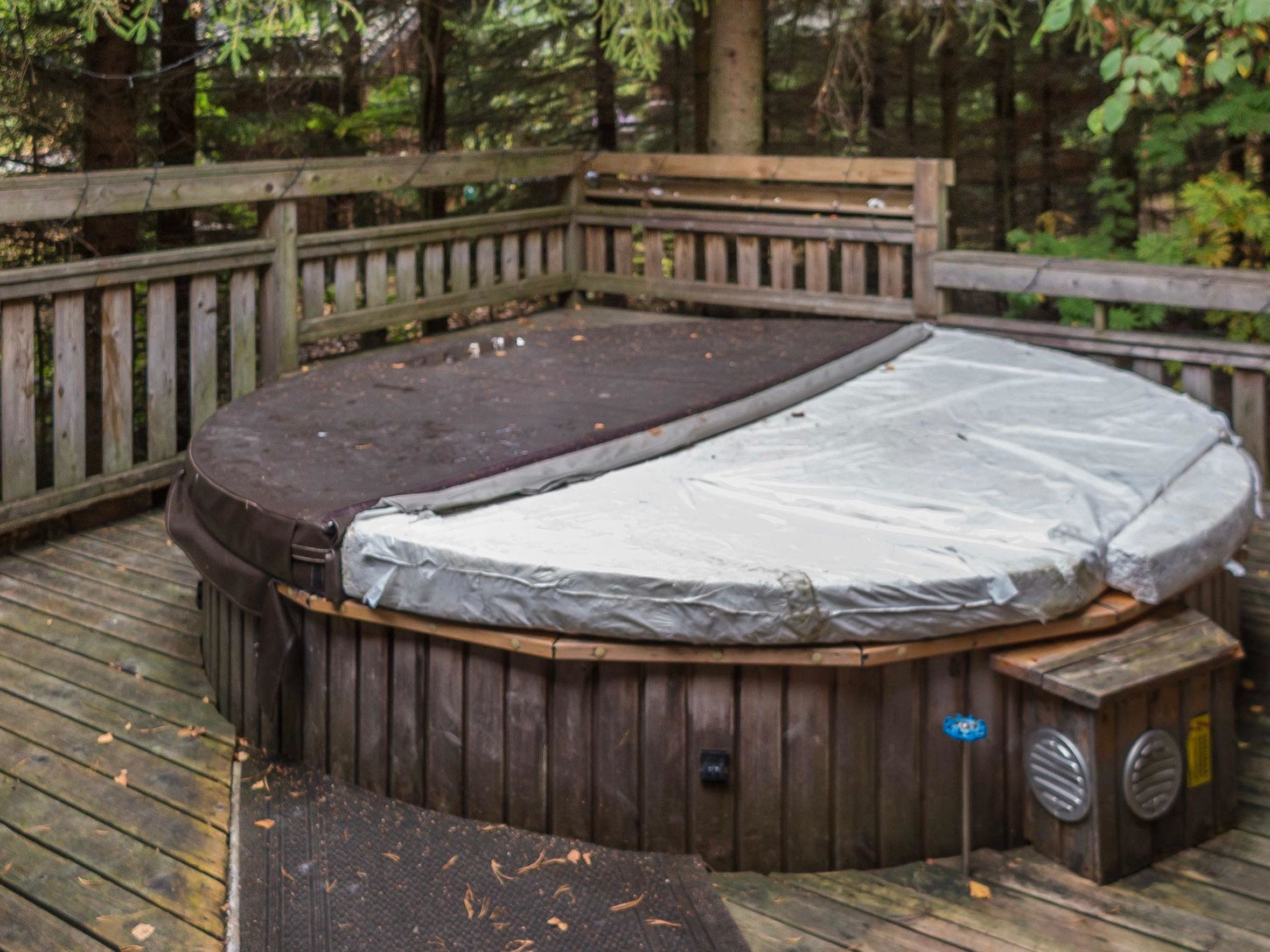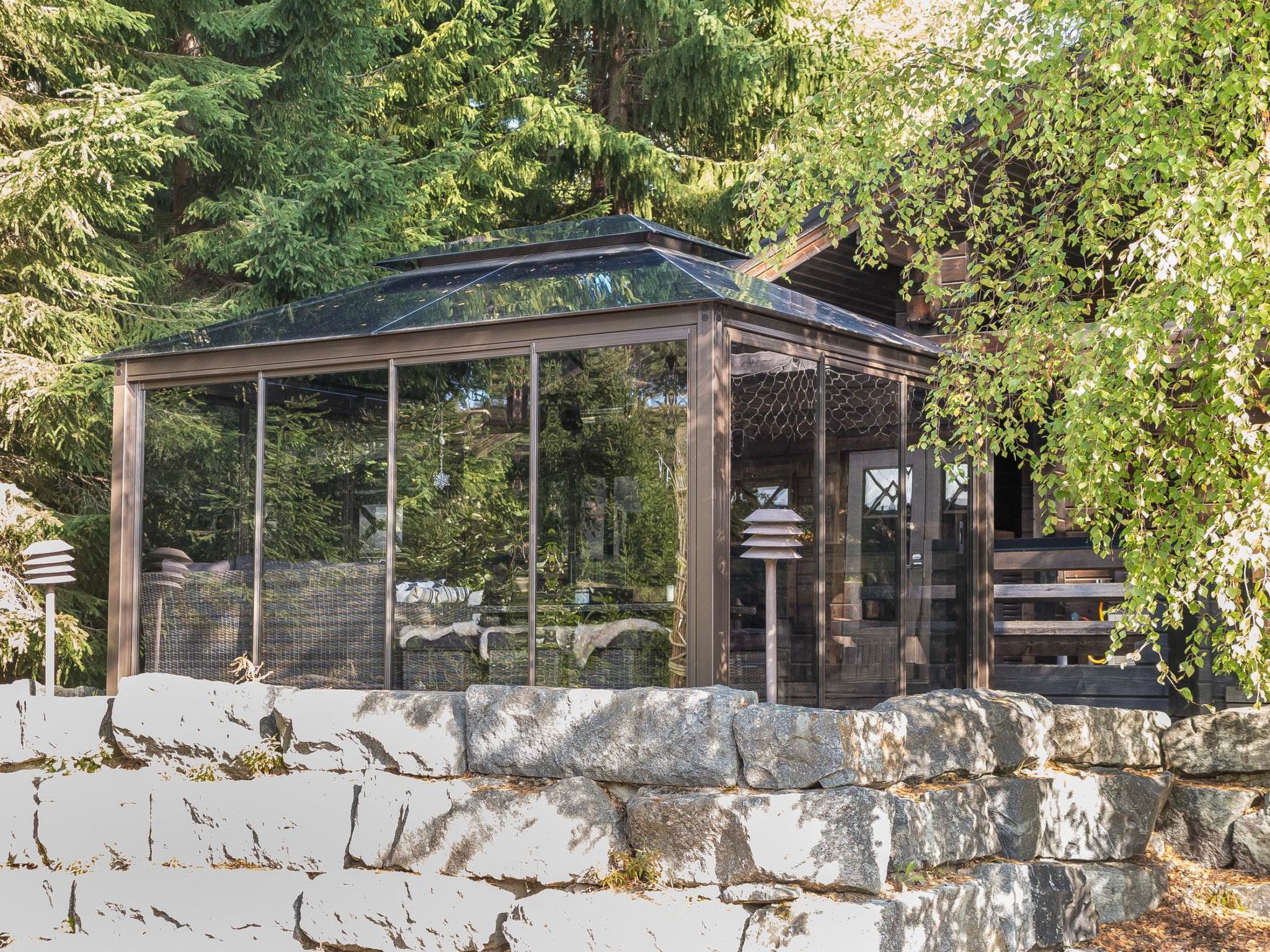 65 km nordöstlich von Kuopio, See Syvärijärvi 300 m, öffentliches Badeufer 1.2 km, kein Boot inbegriffen. Herrliches, isoliertes Chalet im Herzen des Skizentrums Tahkovuori. Tahkonbalju Hauptchalet (170 m²) wurde im Jahr 2005 und der Saunabereich (85 m²) im Jahr 2008 gebaut. Erdgeschoss: Wohnküche, 2 Schlafzimmer mit je 2 Betten (Doppelbetten mit Matratzenauflage), Waschraum, WC, Sauna (Elektroherd). Obergeschoss: 3 Einzelzimmer, Nische mit 2 Betten, Flur mit 2 Betten, WC. Steile Wendeltreppe nach oben. Zwei separate Schlafzimmer mit je 2 Betten, diese Schlafzimmer befinden sich in einem separaten Teil des Chalets und sind über die Veranda zugänglich. Luftwärmepumpe. Separater Saunabereich mit Kaminzimmer (Gasherd), Waschraum (4 Duschen) und grosse Sauna (E-Herd). Ausserhalb des Saunabereichs befindet sich grosser Whirlpool, der im Mietpreis enthalten ist. Es gibt eine Veranda rund um das gesamte Chalet und alle separaten Gebäude befinden sich unter dem gleichen Dach. Vor der Villa befindet sich auch Glaspavillon mit Infrarot-Heizung. Hochwertige Tankonbalju-Ferienvilla, mit einem wunderschönen, waldreichen und flachen Grundstück, im Skigebiet Tahkovuori, in der Nähe eines Golfplatzes. Die Villa verfügt über zwei Saunen, sechs Duschen, "Hot Pot" (heisser Topf), drei Toiletten, zwei Kamine und einen Skiraum. 3 Fernseher, ADSL-Internetverbindung (Geschwindigkeit 1 MB) und Musikanlage in der Hauptvilla, sowie in der Saunaabteilung. Miete der Villa beinhaltet Brennholz, Toilettenpapier, Waschmittel, Gewürze, Sitzbezüge, Folien, Kunststofffolien, Backen, Bratfett und Gasgrill. Nachbarn auf beiden Seiten, die Lage ist trotzdem noch ruhig. Alle Annehmlichkeiten sind zu Fuss erreichbar, Spa 1.1 km, Skipisten, Geschäfte und Restaurants 1.1 km. Golfplatz und Club 600 m. Die Buchungen beginnen am selben Tag um 16:00 Uhr und enden um 16:00 Uhr. Buchungen können nicht am selben Tag beginnen und enden.