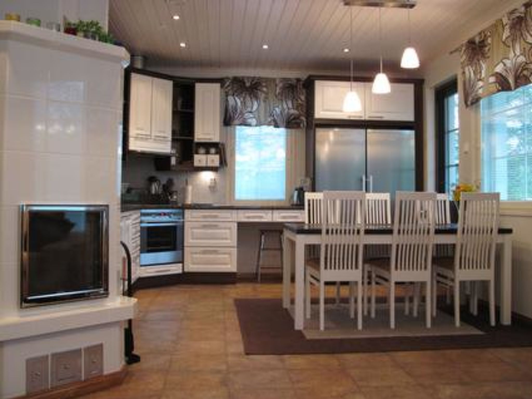 30 km nordwestlich von Pieksämäki, See Mehtiö 35 m (Länge 4 km, Breite 700 m), harter und flacher Sandboden, eigenes Boot. Holzchalet, Baujahr 2010, Wohnküche mit Schlafsofa/Doppelbett, 2 Schlafzimmer mit je 2 Betten, Sauna, Hauswirtschafts-/Ankleideraum, Waschraum, 2 Terrassen und Veranda. Carport, Abstellraum. Stilvolles und hochwertiges Chalet mit moderner Technologie ausgestattet. Mechanische Lüftung, Zentralstaubsauger, Satellitenfernsehen und russische Kanäle, 3 Fernseher, Heimkino. Geothermische Heizung. Elektrische Feuermelder, Einbruchmelder. Automatische Dusche, Saunalandschaft mit Radio. Babystuhl und Babynahrungsstuhl. Internetverbindung (WLAN, Geschwindigkeit 21 MB). Grundstück am Hang 0.6 ha, bepflanzte Sträucher, Baumrinde, Pflastersteine, Kies, kein Rasen. Die Landschaft ist, wie ein Miniatur-Lappland. Stufen und Laufstege zum Ufer. Viele Aussenleuchten am Seeufer und im Hof. Fahnenstange. Häkärinteet Skigebiet 18 km, Anola Golf 18 km, Rautalampi 20 km, Suonenjoki 25 km, Jyväskylä 75 km, Kuopio 75 km, Mikkeli 100 km. Verschiedene Aktivitäten und Verpflegung können nach Vereinbarung durch lokale Unternehmer organisiert werden.