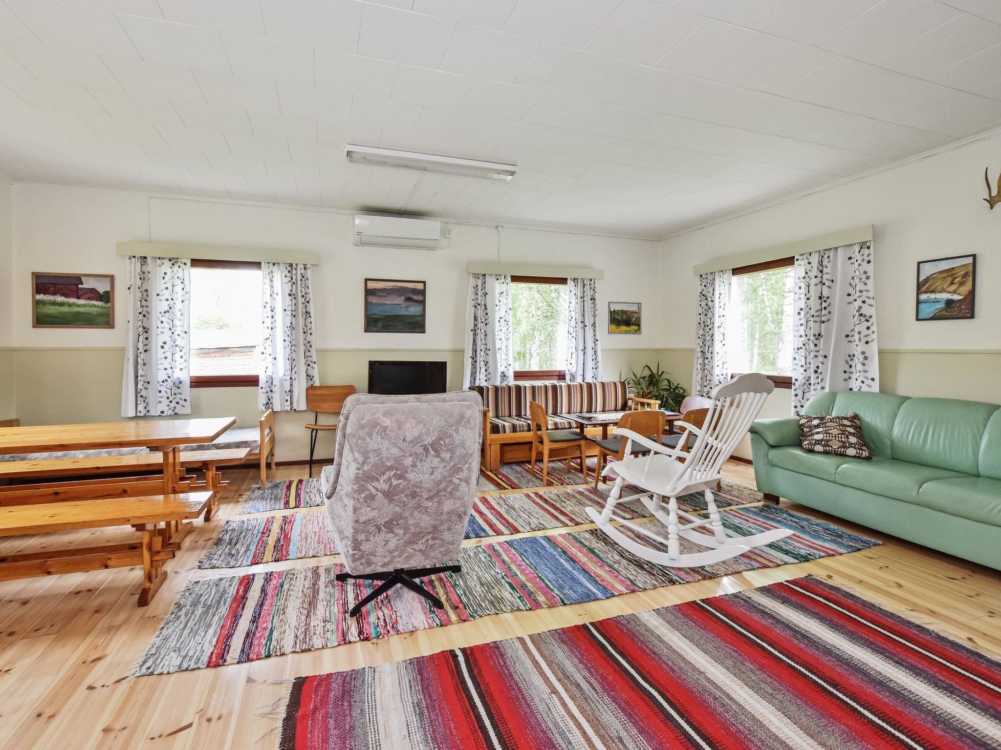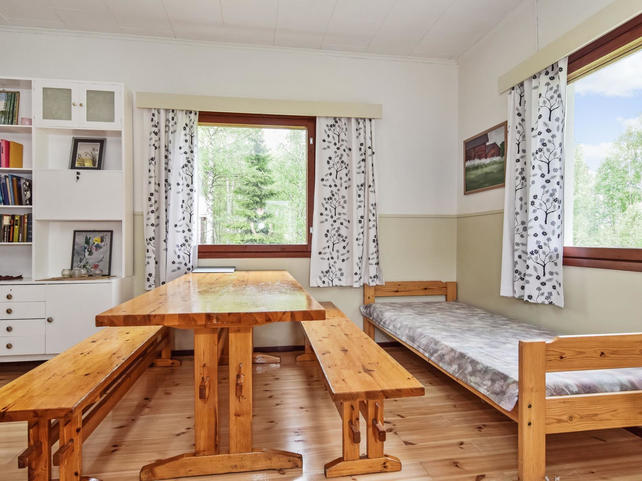 45 km nordöstlich von Iisalmi, See Haapajärvi 50 m (Länge 4.5 km, Breite 1.5 km), flacher Kiesboden, Ruderboot, Sauna am See, kein Steg. Holzhaus, Baujahr 1947, Küche, Wohnzimmer (Bett 80x200 cm, ausziehbares Schlafsofa 140x290 cm), Schlafzimmer (Doppelbett 160x200 cm), Backofen, zwei Kamine, Luftwärmepumpe, Sauna (elektrischer Saunaofen), Waschraum mit WC. Es gibt einen geschützten Bereich im Hof, geeignet zum Beispiel zum Grillen. Separate Seesauna (Holzofen, Wasser muss mit einem Eimer gebracht werden), Lagerfeuerplatz am Strand. Grosse flache Rasenfläche auf dem sonnigen Grundstück. Der Hof ist ideal zum Spielen von Hofspielen. Im Hof befinden sich zwei Discgolfkörbe (bringen Sie bitte Ihre eigenen Discs mit). Der malerische Jyrkänkoski Eisenhütte-Bereich ist 4 km entfernt. Es gibt Sommerrestaurant / Sommercafé (beide vom 1. Mai bis Ende September geöffnet), Museum und Sommertheater. Der Eigentümer organisiert einige zusätzliche geführte Dienstleistungen, wie Jagd-, Angeln und Trekking. Der Eigentümer vermietet auch Ausrüstung für diese Aktivitäten. Darüber hinaus kann ein mobiler Whirlpool-Anhänger gemietet werden.