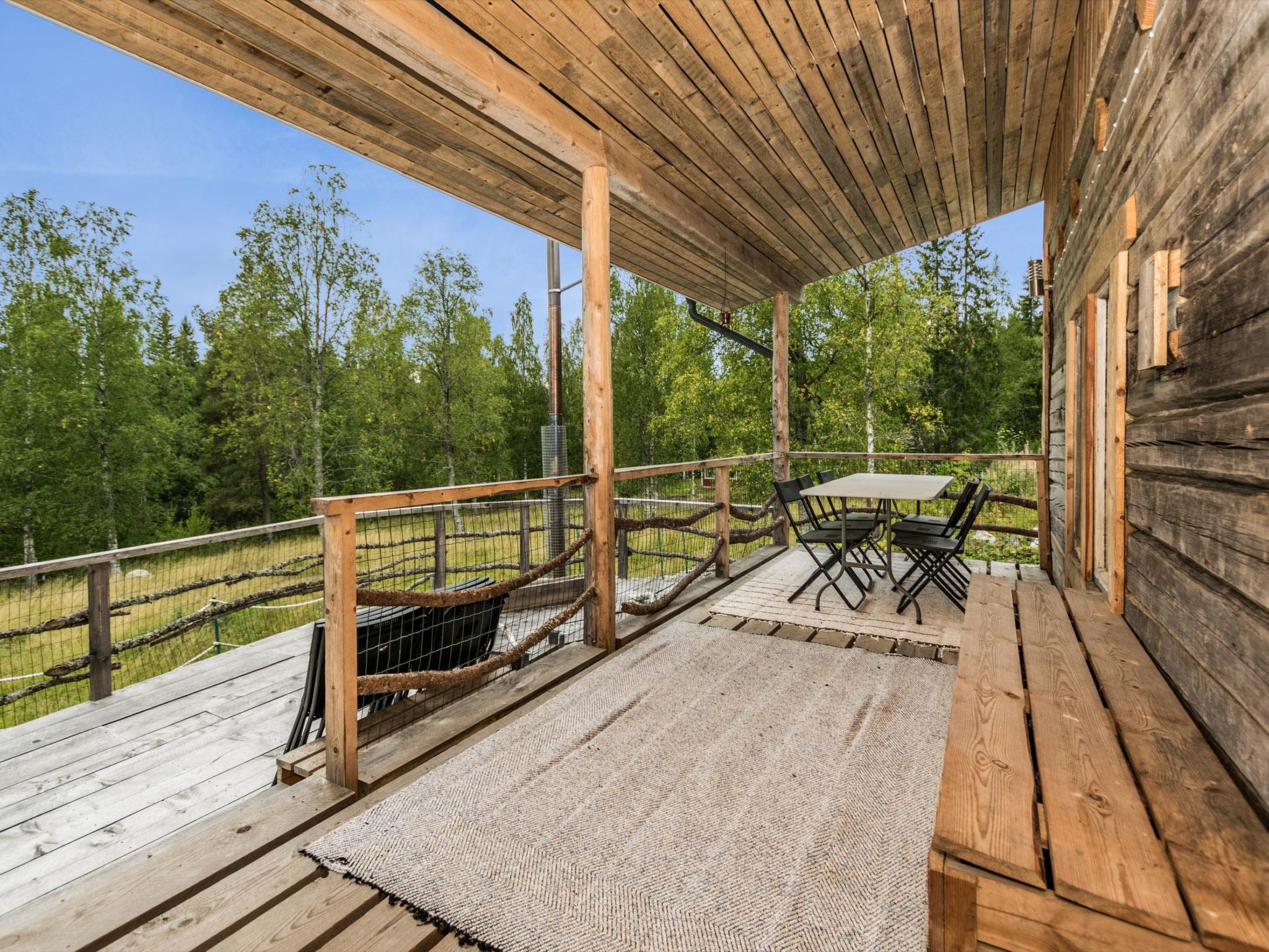 22 km nordöstlich von Iisalmi, Fluss Matkusjoki 40 m, flacher und felsiger Grasstrand, kein Pier. Öffentlicher Sandstrand mit Bademöglichkeit in der Nähe. Blockhaus, Baujahr 2012, Wohnküche, Wohnzimmer mit Wärmespeicher-Kamin, Schlafzimmer 1: ein Doppelbett, Schlafzimer 2: zwei Betten, WC mit Dusche. Sauna, Waschraum und separates Ankleidezimmer mit eigenem Eingang. Auf der grossen Terrasse ist holzbeheizter Whirlpool, im Preis inbegriffen, falls der Kunde die Heizung selbst durchführt (das Heizen des Whirlpools dauert drei Stunden). Die Heizung des Whirlpools und der Sauna kann gegen Aufpreis/Vorbestellung beim Eigentümer bestellt werden. Die Zahlung der Heizung muss in bar direkt an den Eigentümer erfolgen. Das Haus befindet sich am Ufer von Matkusjoki, in der Nähe der Brücke von Aittoskoski und des Campings- und Traningszentrums Hombu. Das Grundstück ist leicht abfallend und der Hof ist mit Kies bedeckt. Von der Terrasse führt grasbewachsener Hang zum Ufer, Lagerfeuer neben dem Haus. Die Innenausstattung des Hauses ist modern. Im Haus befindet sich Videoprojektor. Die geräumige Sauna wurde mit dem Vorbild der traditionellen Sauna gebaut. Zugang zur Sauna von der Terasse aus. Es gibt keinen eigenen Pier beim Haus. Öffentlicher, kommunaler Strand neben dem Grundstück. Am öffentlichen Strand gibt es einen guten Badestrand und einen Pier. Es stehen drei Kanus zur Verfügung. Schwimmwesten in verschiedenen Grössen erhältlich. Es gibt gute Kajakrouten und Angelmöglichkeiten mit einem staatlichen Angelschein für die Region. Entfernungen: Iisalmi 25 km, Kajaani 75 km, Kuopio 105 km, Tahko 71 km. Orte zum Besuchen: Eisenwerk von Jyrkkä 32 km, Wanderweg, Volokinpolku.