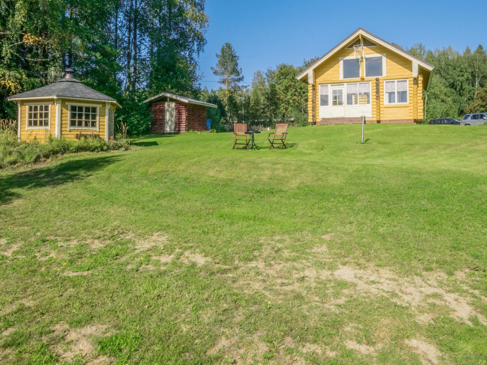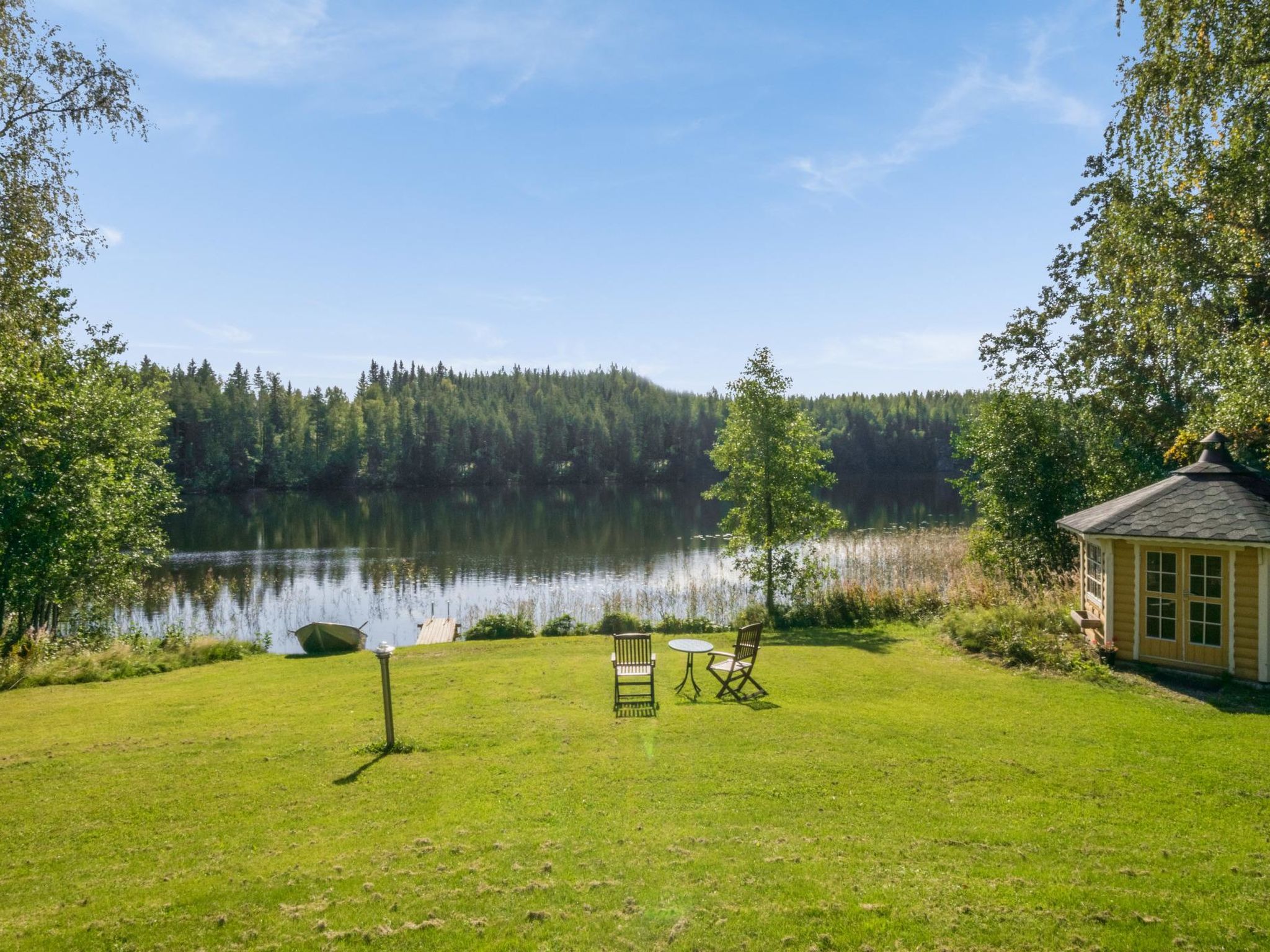 75 km südöstlich von Kuopio, See Savenkaita 15 m (Länge 1.6 km, Breite 500 m), flacher Sandboden, sanft vertiefend, Ruderboot. Rundholz-Blockhaus, Baujahr 2011, Wohnküche, Schlafboden mit 3 Betten, Badezimmer mit Duschkabine, Sauna mit Holzofen, Glasterrasse. Zugang zur Sauna über die Terrasse. Trittleiter zum Dachboden, kein Blick vom Dachboden nach unten. Grosszügiger Rasengarten, Grillhütte am Ufer. Savenkaita ist ein wunderschöner See mit Schwänen und Blumen am Ufer. Im Winter ein ausgezeichneter Eisfischersee. Jagdmöglichkeiten (weitere Informationen vom Eigentümer). Der Eigentümer berechtet € 25/Haustier (nicht mehr als 2 Haustiere erlaubt). Kaution in Höhe von € 150, muss in bar, bei der Ankunft, dem Eigentümer bezahlt werden. Karvio Stromschnellen 30 km, Valamo Kloster 35 km, Lintula Nonnenkloster 15 km, Schlucht Seinävuori 35 km, Tuusniemi 30 km, Maarianvaara 60 km, Kuopio Flughafen 63 km.