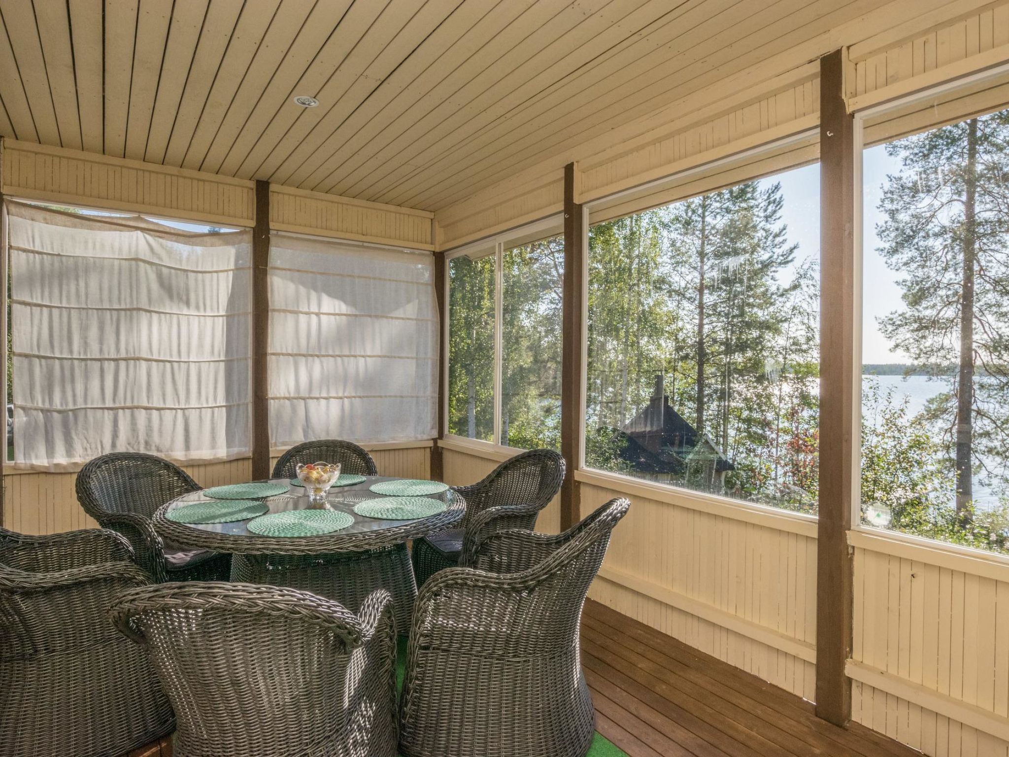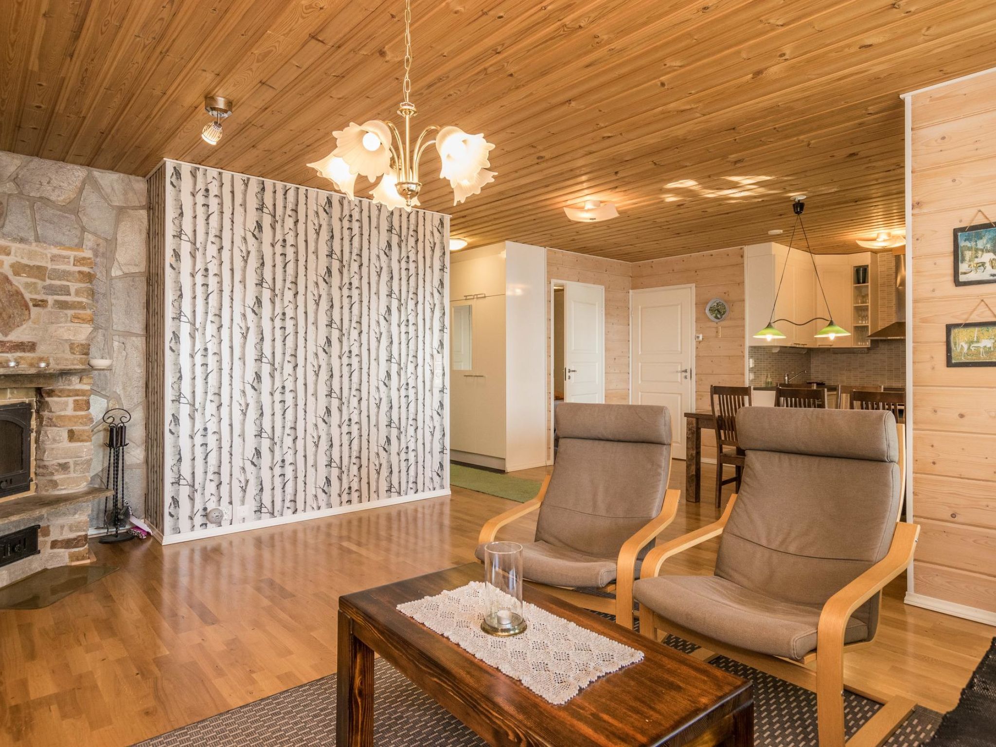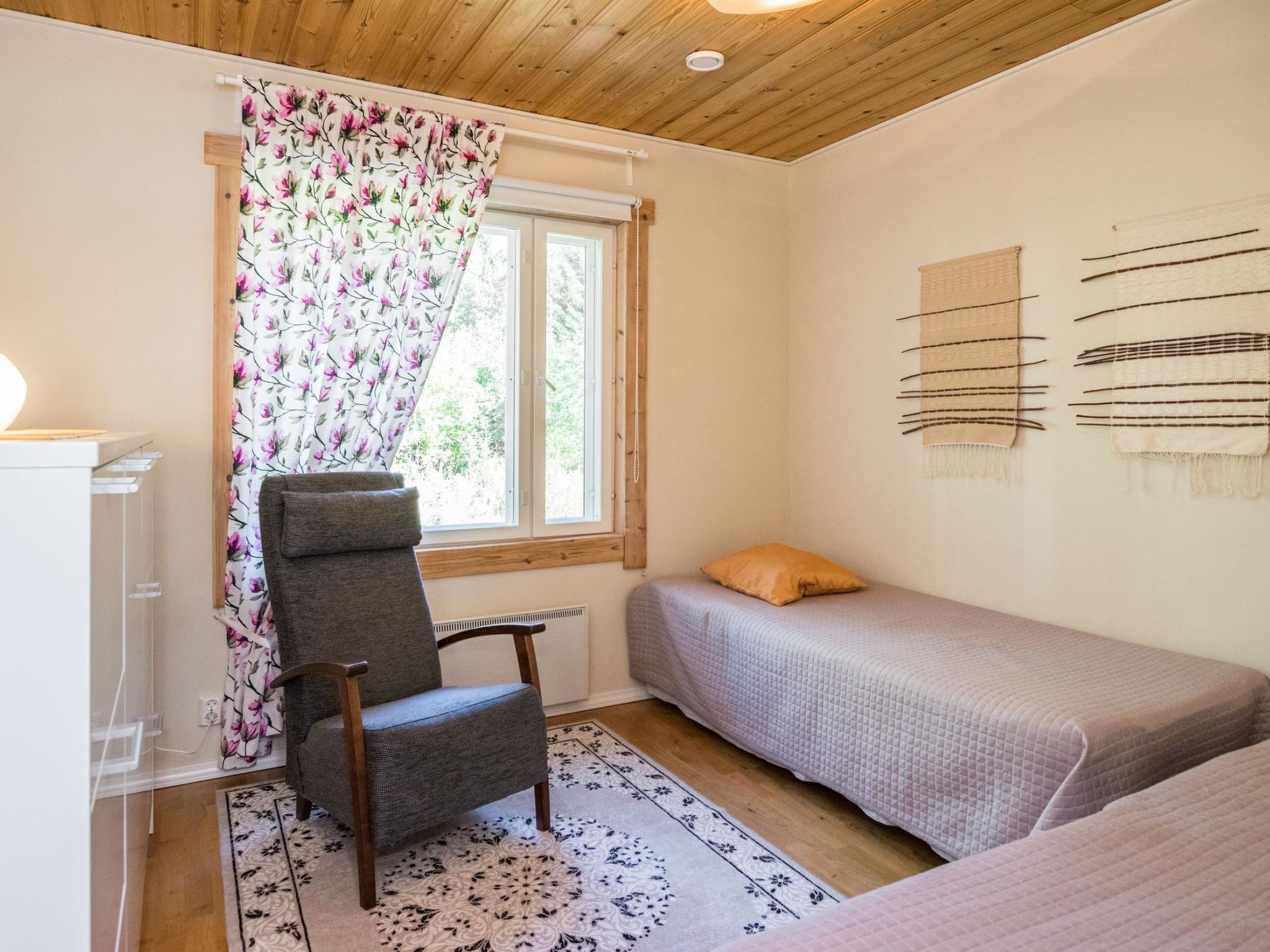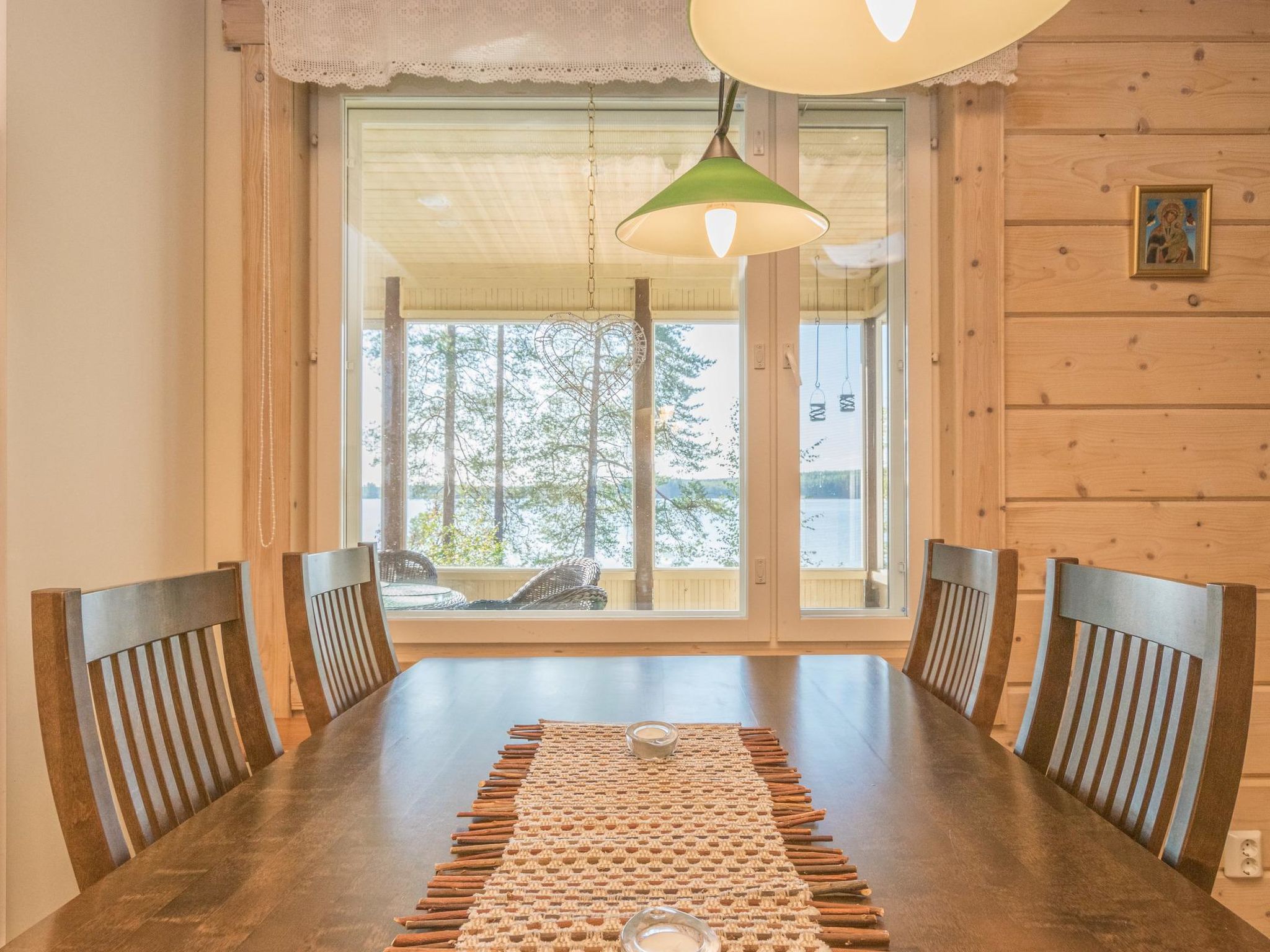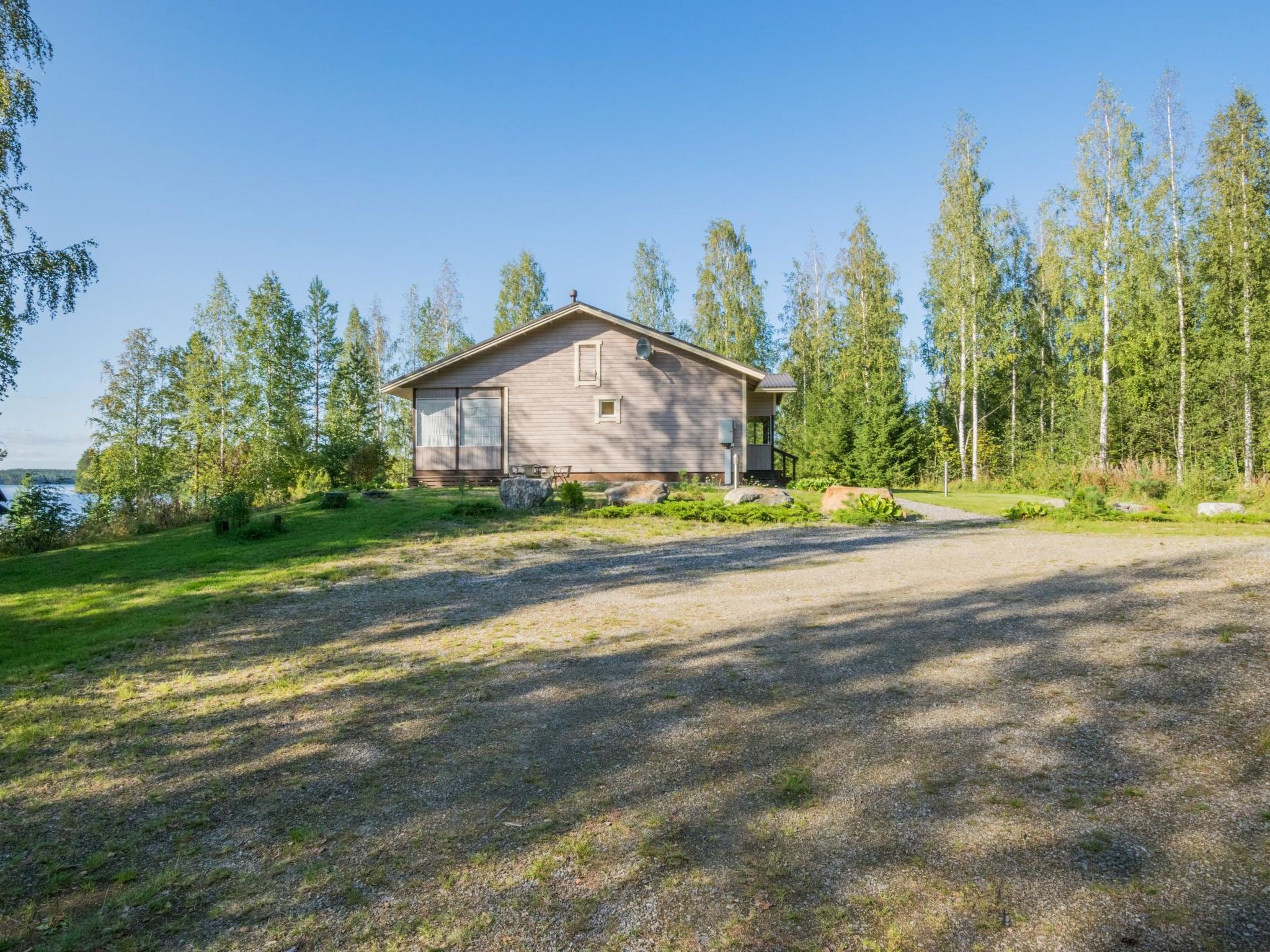 82 km südöstlich von Kuopio, See Juojärvi 20 m, sanft vertieft, harter Sandboden, eigenes Boot. Holzhaus, innen getäfelt, Baujahr 2013, Wohnküche mit Schlafsofa für zwei Personen, Vorraum, Schlafzimmer mit Doppelbett und Zusatzbett, Schlafzimmer mit 2 Betten, Waschraum mit begehbarer Dusche und Toilette, holzbeheizte Sauna, Hauswirtschafts-/Ankleidezimmer, geräumige Glasterrasse mit zwei Sitzgruppen. Luftwärmepumpe und Parkettboden im Wohnzimmer. Das Ferienhaus befindet sich auf einer Halbinsel, ruhige Lage am Hügel, schöner Seeblick nach Süden. Juojärvi ist ein klarer See. Grillhütte und Carport im Hof. Etwa 5 km nördlich liegt die Insel Kangassaari mit Unterstand und Lagerfeuerplatz. Kleinwildjagd auf dem Land des Eigentümers. Der Eigentümer berechnet für Haustiere € 25 (nicht mehr als 2 Haustiere erlaubt). Kaution von € 150 in bar muss bei der Anreise beim Eigentümer hinterlegt werden. Karvio Stromschnellen 32 km, Valamo Kloster 40 km, Lintula Kloster 20 km, Seinävouri Schlucht 36 km, Tuusniemi 35 km, Maarianvaara 68 km, Kuopio Flughafen 70 km.