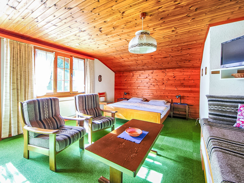 Schönes, gemütliches Mehrfamilienhaus "Chalet Marie Rosa". Im Ortsteil Schwendi, 2.4 km vom Zentrum, sonnige Lage, Richtung Süden. Zur Mitbenutzung: Garten, Liegewiese. Grill. Im Hause: Sauna (extra). Solarium (extra). Skiraum, Zentralheizung, Waschmaschine (zur Mitbenutzung, extra), Trockenraum. Wäschewechsel (zusätzlich extra). Handtuchwechsel (zusätzlich extra). Im Winter bitte Schneeketten mitbringen. Parkplatz beim Haus. Einkaufszentrum 2.4 km, Restaurant 2.4 km, Fahrradverleih 2.6 km, Bahnstation "Schwendi" 300 m, Freibad 2 km, Hallenbad 2.6 km. Golfplatz (9 Loch) 4 km, Tennis 3.5 km, Minigolf 2.8 km, Sportzentrum 2.6 km, Bergbahn 2 km, Gondelbahn 1.8 km, Skiverleih 2 km, Langlaufloipe 300 m, Kinderspielplatz 2.6 km. Bekannte Skigebiete sind gut erreichbar: First 2.8 km, kl. Scheidegg/Männlichen 2 km. Bekannte Seen in der Umgebung sind gut erreichbar: Thuner-/Brienzersee 15 km. Bitte beachten: Der Besitzer wohnt im selben Haus. In diesem Haus sind weitere Ferienwohnungen mietbar.