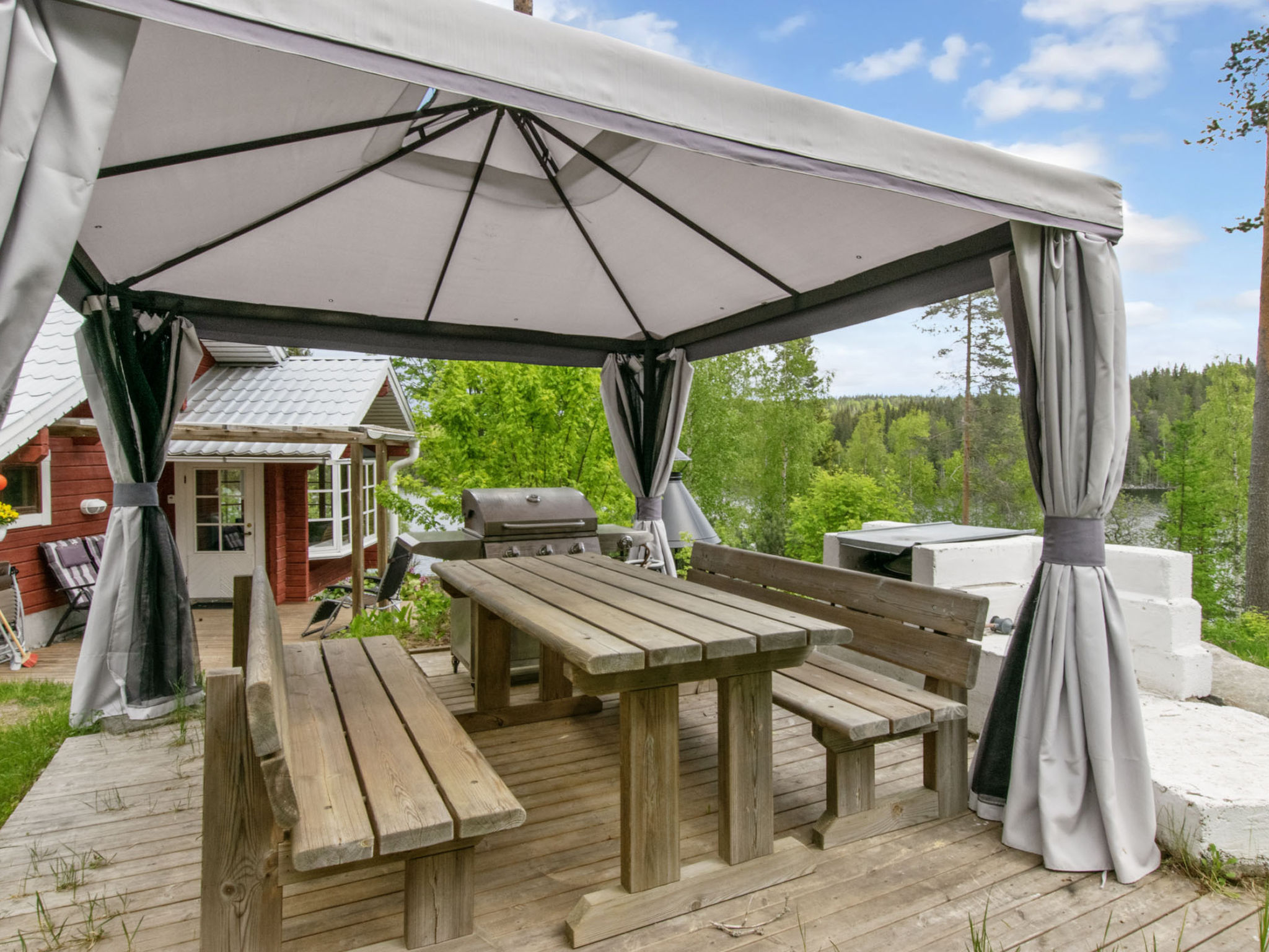 80 km südwestlich von Joensuu, See Pölläkkäjärvi 35 m (1.9 km²), flacher Sandschlamm und teilweise felsiger Grund, eigener Strand, Ruderboot und Anlegestelle. Block-Ferienhaus, Baujahr 1991, Wohnzimmer, Küche, Schlafzimmer mit Doppelbett, Schlafgalerie (9 m²) mit 2 Betten, Schlafgalerie (4 m²) mit 2 Betten, Badezimmer, Sauna (Elektroherd), Terrasse. Eigenes separates Saunagebäude (10 m²) mit Holzofen in der Sauna und einem Zimmer mit 2 Betten, Strom- und Wasserversorgung. Gemütliches Block-Ferienhaus am See Pölläkkäjärvi in Heinävesi, in der Nähe des Nationalparks Kolovesi, 4 km vom Strand, bei der Kirche gelegen. Hang zum Strand. Der Strand ist nach Osten ausgerichtet. Gute Grillmöglichkeiten, sowohl Gasgrill als auch Holzkohlegrill. Es gibt eine Satellitenantenne mit ca. 500 Kanälen (20 russische Kanäle), sowie Blue-ray und WLAN-Verbindung. Guten Angelmöglichkeiten, eigenes Boot. Schnelles Angeln an den Stromschnellen von Kerma, 16 km vom Ferienhaus entfernt. 4 km zum Kolovesi Nationalpark (Kirkkoranta). Die Buchungen beginnen um 16:00 Uhr und enden um 12:00 Uhr (auch bei Wochenendbuchungen). Während der Zeit vom 27.12. bis 12.1. sind die Endreinigungskosten zum Preis hinzugerechnet.