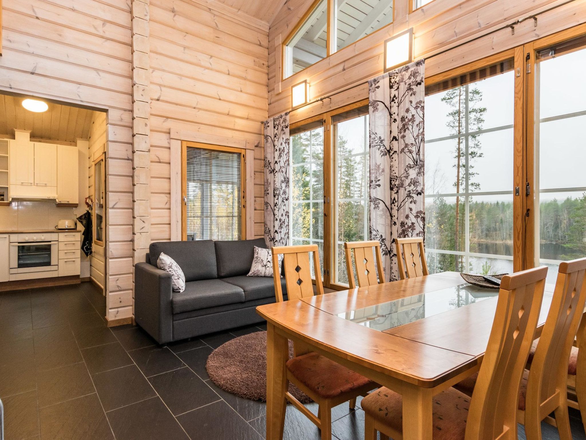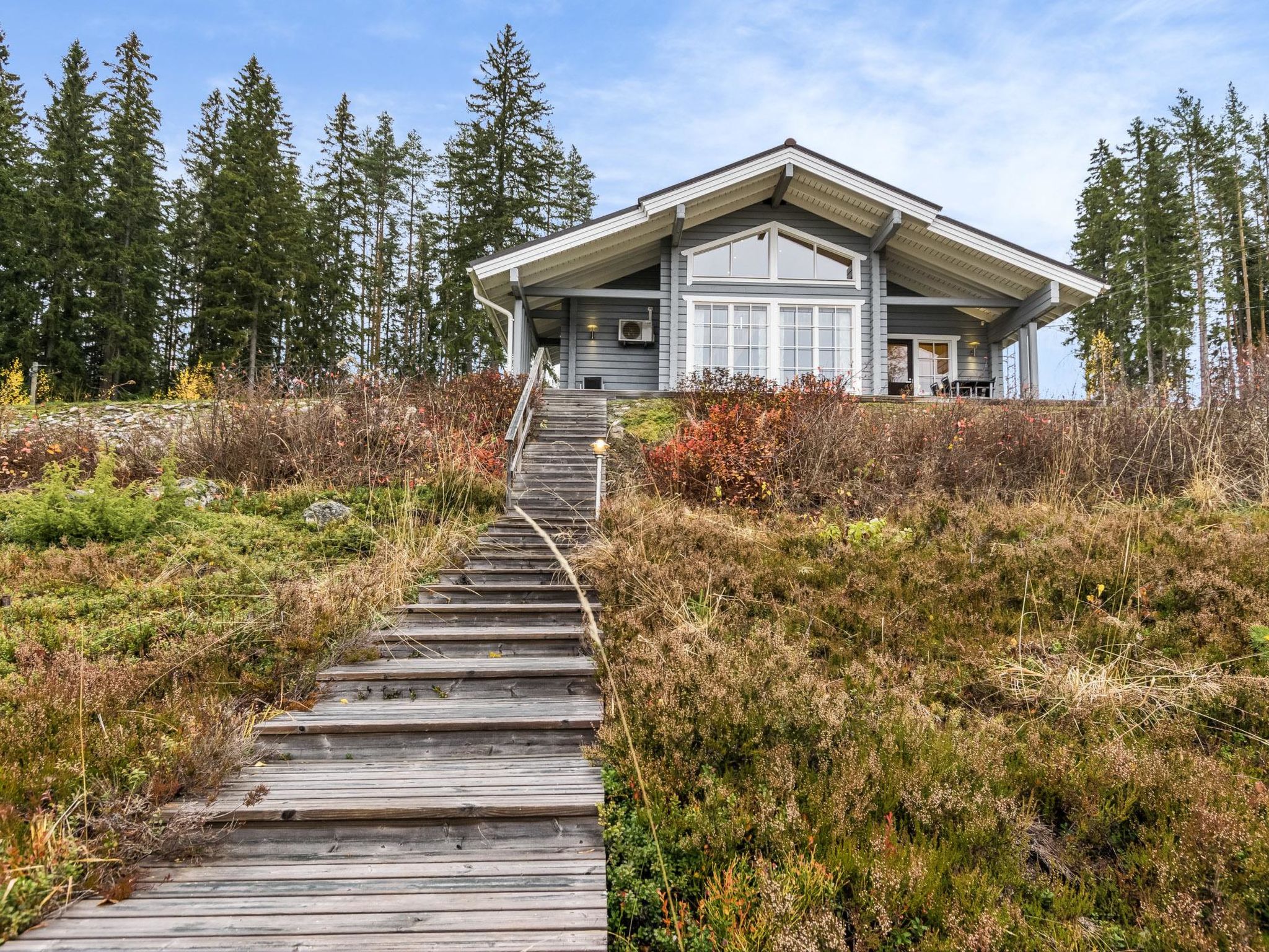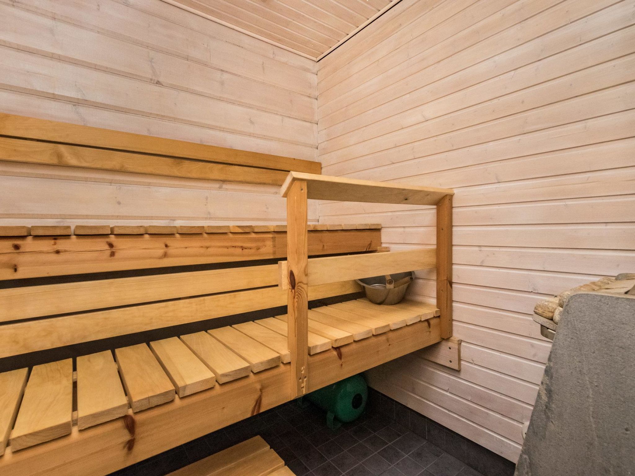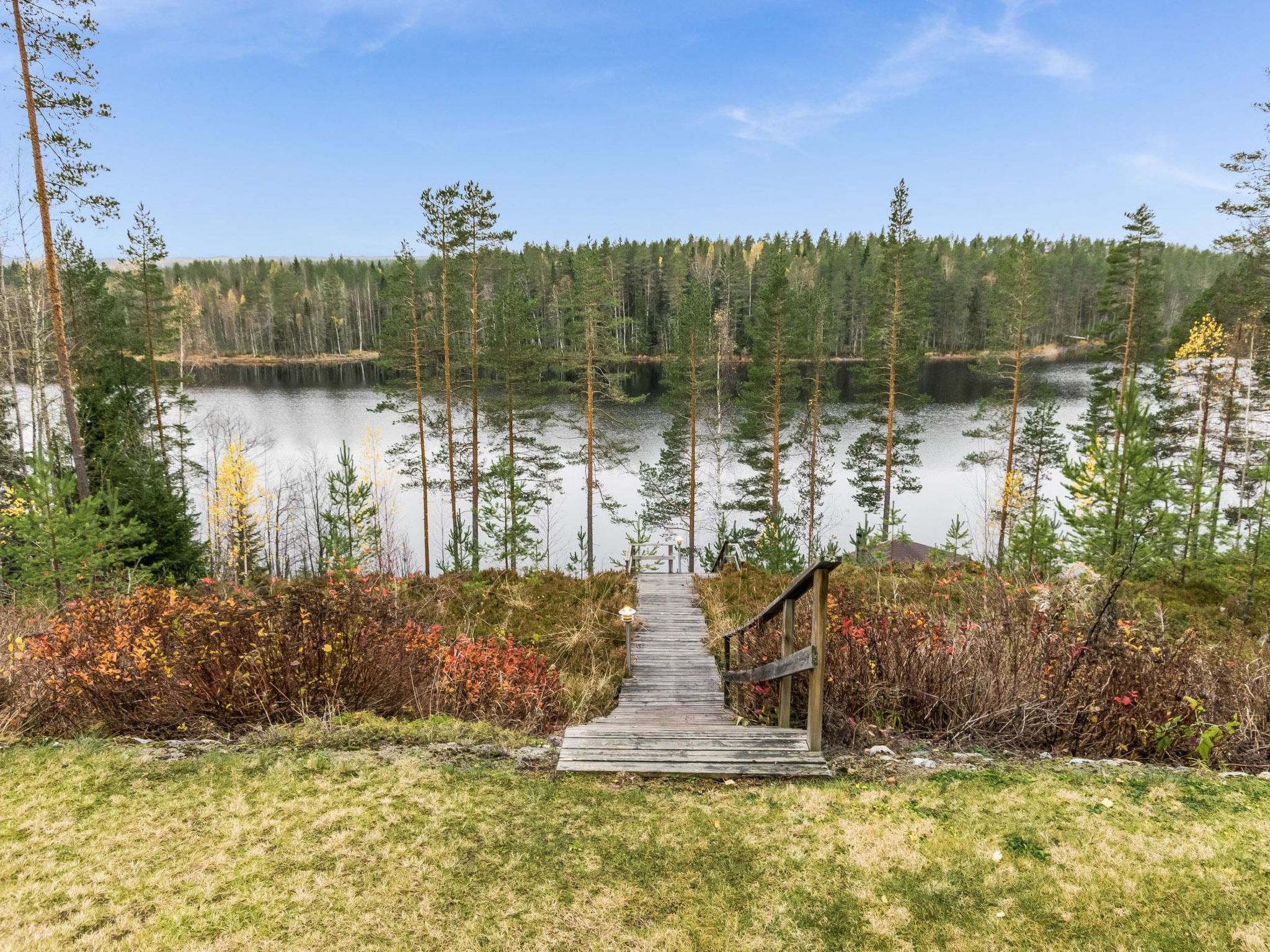 60 km südwestlich von Joensuu. Kermajärvi 50 m (Länge 30 km, Breite 3 km), tiefer und harter Sand-/Moräne-/Lehmboden, eigenes Boot, Anlegestelle. Laminiertes Block-Ferienhaus, Baujahr 2008, im Erdgeschoss Küche (Zugang zur Terrasse), Wohnzimmer (Kamin), Schlafzimmer mit Doppelbett, Schlafzimmer mit Etagenbett, separates WC. Sauna (E-Herd), Waschraum mit 2 Duschen, Hauswirtschaftsraum, Waschmaschine mit Trockenfunktion und Zugang zur Terrasse. Luftwärmepumpe. Dachboden (niedrige Decke) mit Schlafsofa/Doppelbett, 2 Stühle und anderer Fernseher, Treppe zum Dachboden sind steil und schmal. Ufersauna nur im Sommer (1.5.-30.9.) verfügbar. Ufersauna verfügt über Holzofen, Warmwasserspeicher auf dem Herd, Pumpe für kaltes Wasser aus dem See, Akleideraum, Terrasse und elektrisches Licht. Steiler Hang zur Ufersauna und zum Strand, Stufen auf dem Weg. Hochwertiges und gut ausgestattetes Ferienhaus, sonnige Lage. Herrlicher Blick über den See! Hofbereich offen und hell. Die Nachbarn auf beiden Seiten sind 50 m tiefer, keine direkte Sichtlinie. Nicht für gehbehinderte Personen geeignet. Aussenborder und Gasgrill können vom Eigentümer, gegen Aufpreis, gemietet werden (bitte vorbestellen). Der helle und klare See Kermajärvi eignet sich gut zum Angeln. Vielen Fische zum Beispiel Zander, Barsch, Hecht, Felchen, Maräne und Rotauge. Gute Plätze zum Beeren- und Pilzsammeln. "Kerman keidas", Lachsangeln, Sommerrestaurant, Hafendienstleistungen 10 km. Valamo-Kloster und Lintula Kloster 55 km, Karvio Kanal 46 km. "Tulenliekki", Tanzfläche, Restaurant 40 km. Heinävesi 20 km, Joensuu 65 km, Varkaus 50 km, Savonlinna 75 km. Kolovesi Nationalpark 45 km.