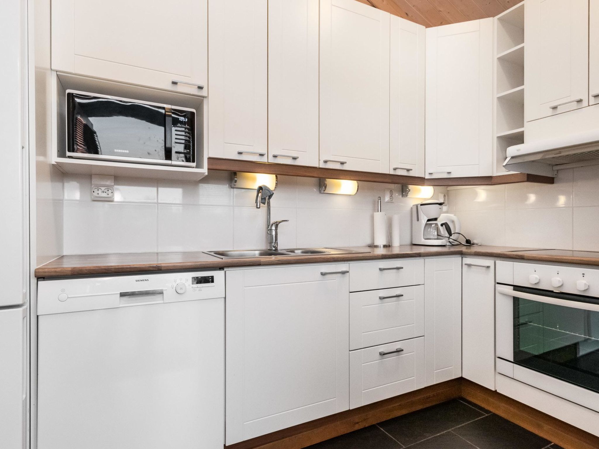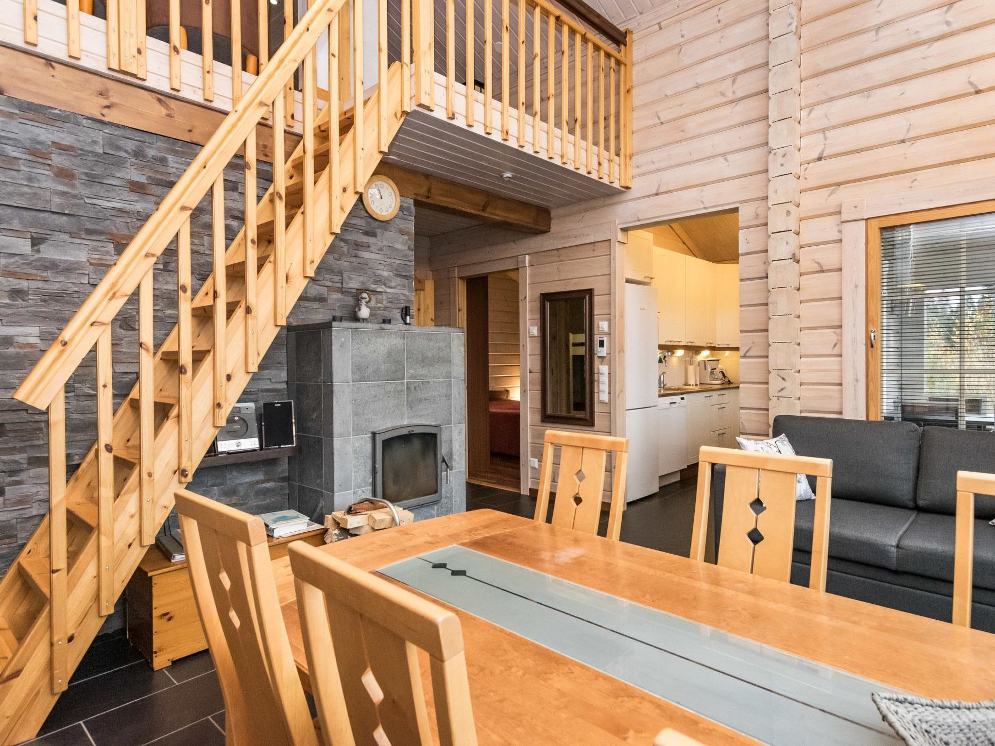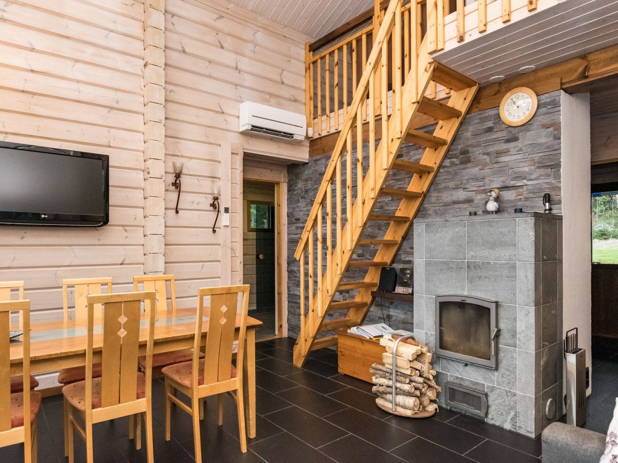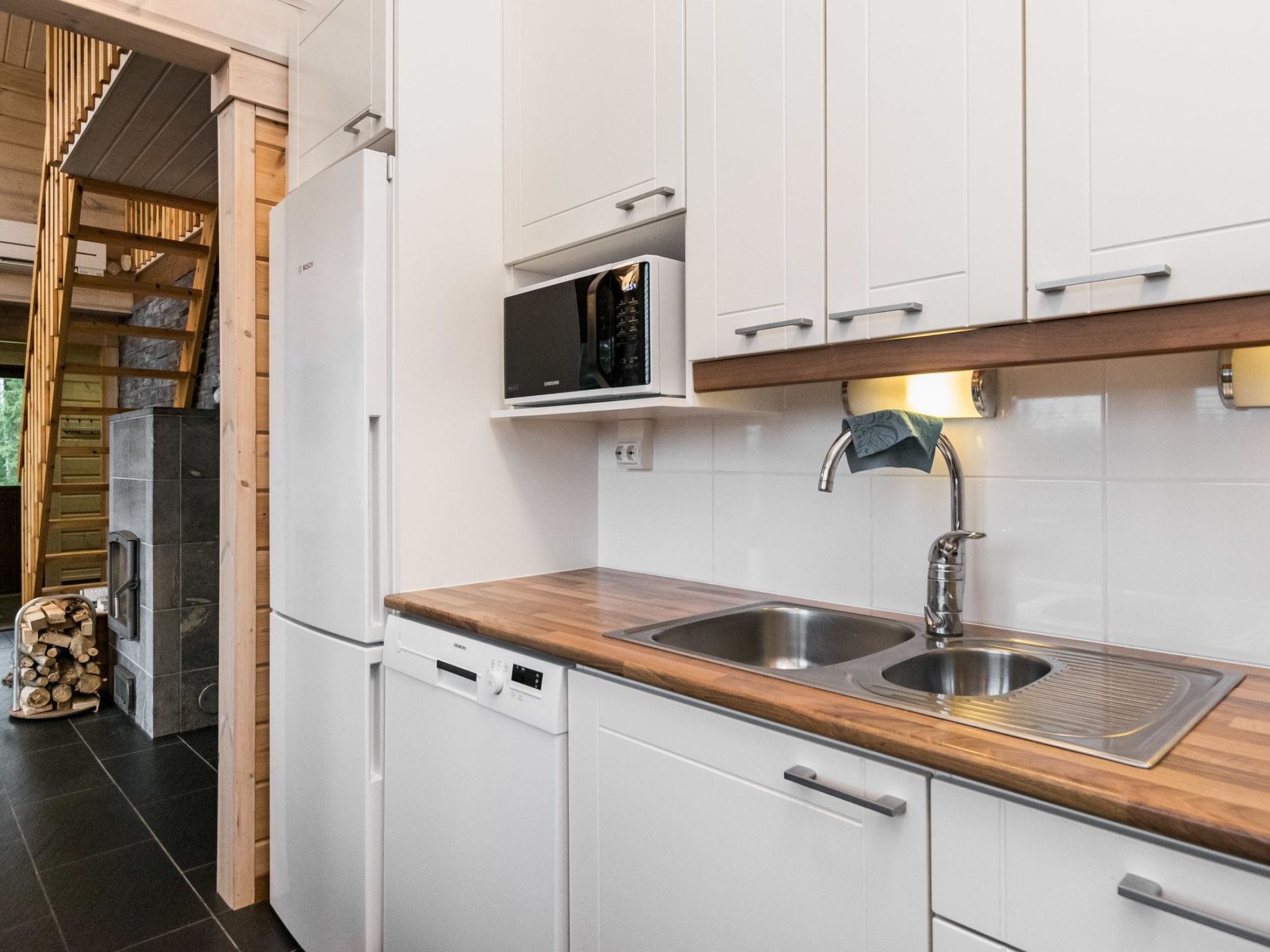 60 km südwestlich von Joensuu. Kermajärvi 50 m (Länge 30 km, Breite 3 km), tiefer und harter Sand-/Moräne-/Lehmboden, eigenes Boot, Anlegestelle. Laminiertes Block-Ferienhaus, Baujahr 2008, im Erdgeschoss Küche (Zugang zur Terrasse), Wohnzimmer (Kamin), Schlafzimmer mit Doppelbett, Schlafzimmer mit Etagenbett, separates WC. Sauna (E-Herd), Waschraum mit 2 Duschen, Hauswirtschaftsraum, Waschmaschine mit Trockenfunktion und Zugang zur Terrasse. Luftwärmepumpe. Dachboden (niedrige Decke) mit Schlafsofa/Doppelbett, 2 Stühle und anderer Fernseher, Treppe zum Dachboden sind steil und schmal. Ufersauna nur im Sommer (1.5.-30.9.) verfügbar. Ufersauna verfügt über Holzofen, Warmwasserspeicher auf dem Herd, Pumpe für kaltes Wasser aus dem See, Akleideraum, Terrasse und elektrisches Licht. Steiler Hang zur Ufersauna und zum Strand, Stufen auf dem Weg. Hochwertiges und gut ausgestattetes Ferienhaus, sonnige Lage. Herrlicher Blick über den See! Hofbereich offen und hell. Die Nachbarn auf beiden Seiten sind 50 m tiefer, keine direkte Sichtlinie. Nicht für gehbehinderte Personen geeignet. Aussenborder und Gasgrill können vom Eigentümer, gegen Aufpreis, gemietet werden (bitte vorbestellen). Der helle und klare See Kermajärvi eignet sich gut zum Angeln. Vielen Fische zum Beispiel Zander, Barsch, Hecht, Felchen, Maräne und Rotauge. Gute Plätze zum Beeren- und Pilzsammeln. "Kerman keidas", Lachsangeln, Sommerrestaurant, Hafendienstleistungen 10 km. Valamo-Kloster und Lintula Kloster 55 km, Karvio Kanal 46 km. "Tulenliekki", Tanzfläche, Restaurant 40 km. Heinävesi 20 km, Joensuu 65 km, Varkaus 50 km, Savonlinna 75 km. Kolovesi Nationalpark 45 km.