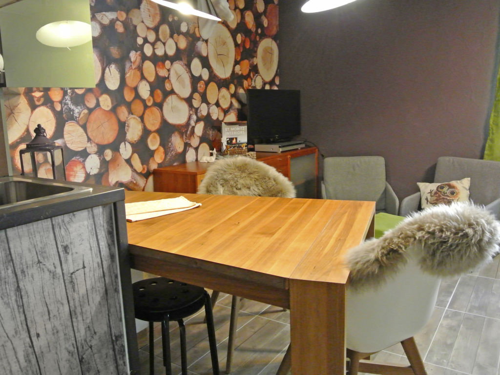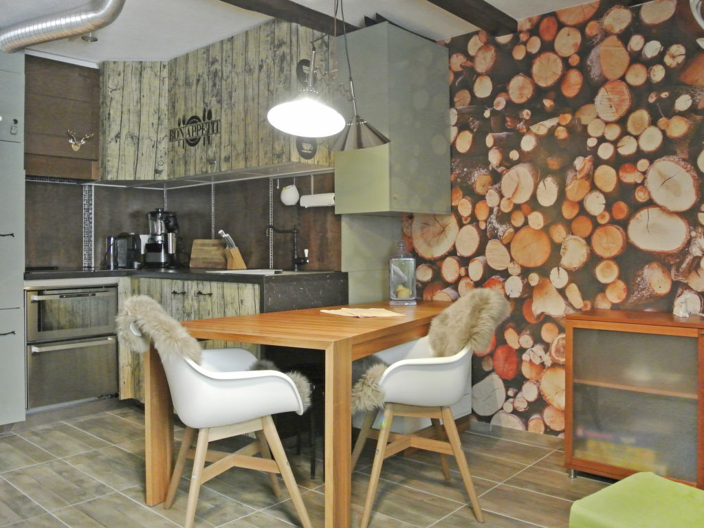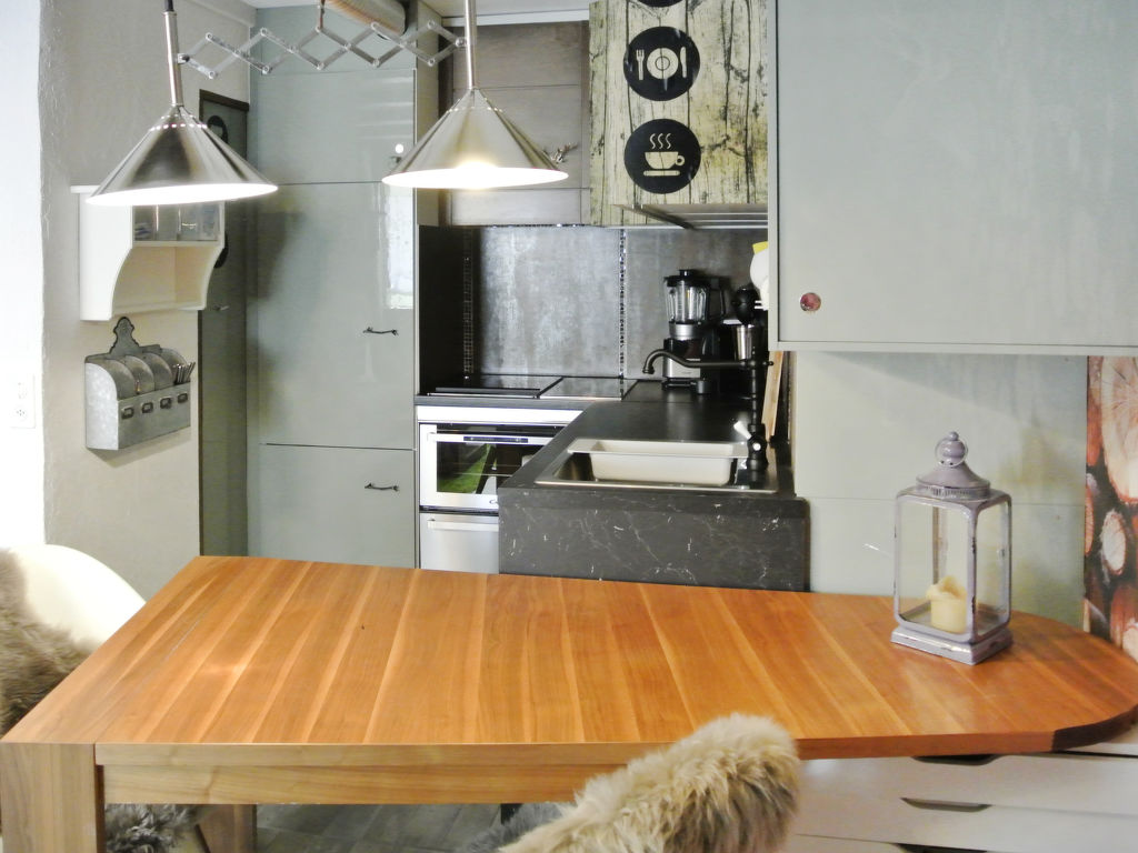 "13-1", 2-Zimmer-Wohnung 50 m2, Nordlage. Renoviert im Jahre 2018, komfortabel und geschmackvoll eingerichtet: offenes Wohn-/Esszimmer mit TV und Radio. Wohn-/Esszimmer mit Esstisch und Digital-TV. Offene Küche (Backofen, Geschirrspüler, 3 Glaskeramikherd Platten, Tiefkühler, elektrische Kaffeemaschine, Kapseln für die Kaffeemaschine (Nespresso) extra). Dusche/WC. Heizung. Zur Verfügung: Internet (Wireless LAN, extra). Garage (extra) (1 Auto). Bitte beachten: Wohnung auf Hofseite. Die Wohnung befindet sich oberhalb der Reception. Zusätzliche Küchenaussattung: Froth Mixer, Turmix Suppen-Automat und eingebaute Tepan-Yaki Grillplatte.