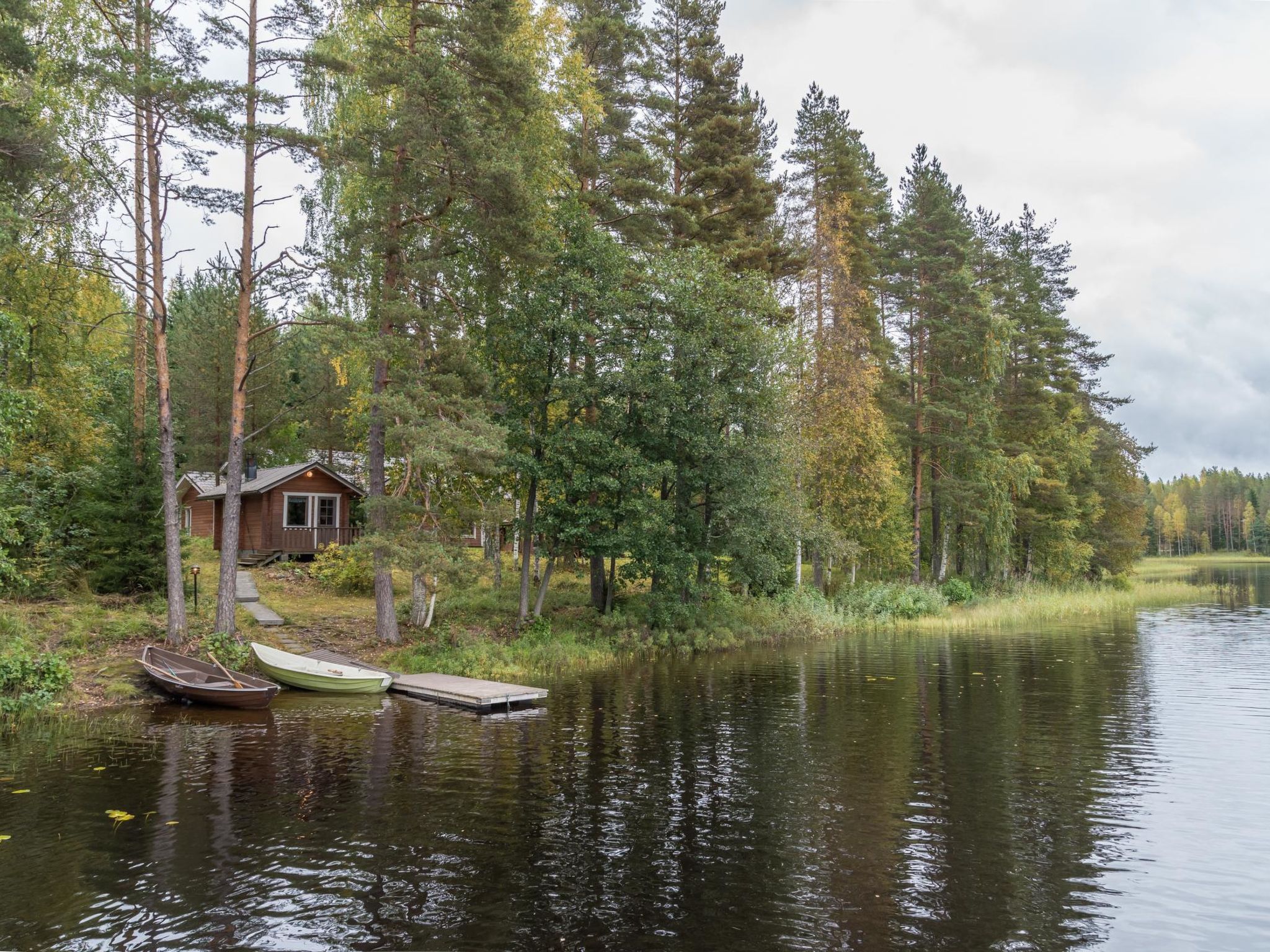 70 km nördlich von Mikkeli, Siikajärvi 25 m (Länge 10 km, Breite 1 km), flacher und fester Sandboden, eigenes Boot. Holzgebäude, Baujahr 2000, Wohnküche, 3 Schlafzimmer mit je 2 Betten, Schlafboden mit 2 Betten, Anleidezimmer, Waschraum, Sauna (elektrischer Saunaofen), Vorraum, offene Veranda. Zusätzlich eigene Seesauna (13 m²) und überdachter Grill. Einige Bäume wurden auf dem Hof gefällt. Auf den Bildern Nr. 4 und 5 sehen Sie die aktuelle Anzahl der Bäume. Schönes Ferienhaus und Sauna am See auf einem sonnigen Grundstück. Babybett und Kinderstuhl vorhanden. Juva 26 km, Savonlinna (Olavinlinna) 65 km, HASAMÄKI Skigebiet 17 km. HINWEIS: Die obligatorische Kaution, in Höhe von € 130, muss bei der Ankunft in bar hinterlegt werden.