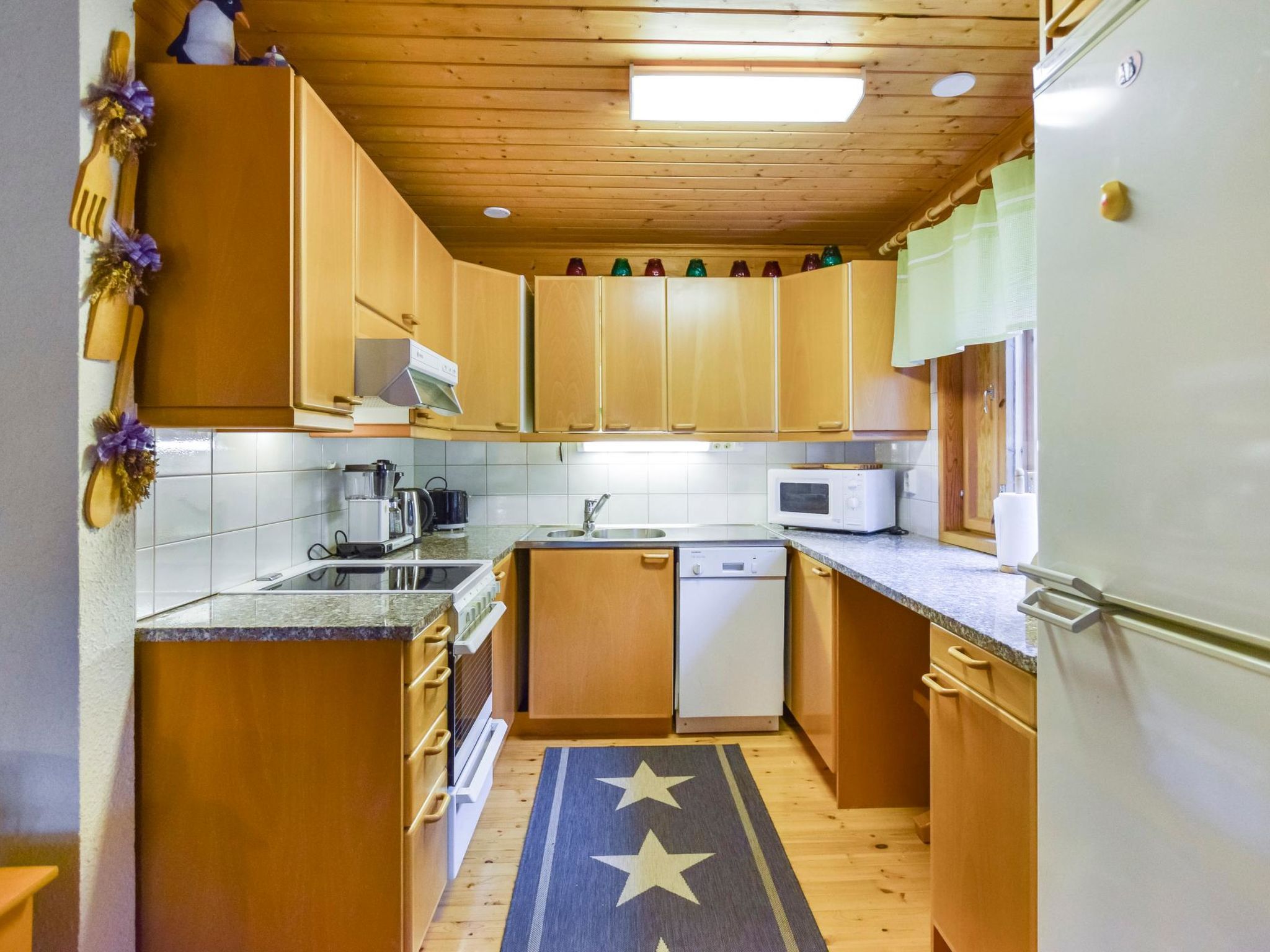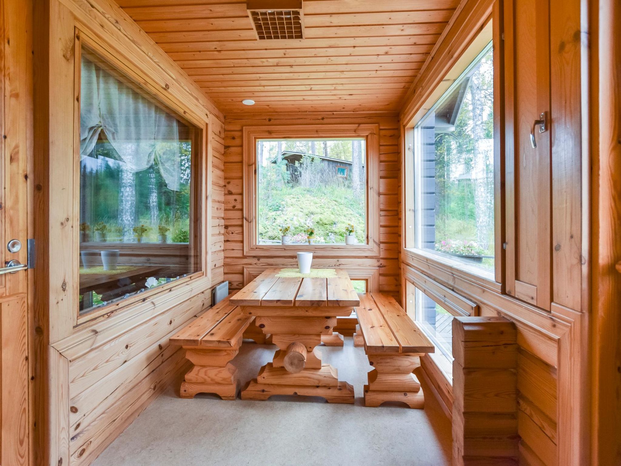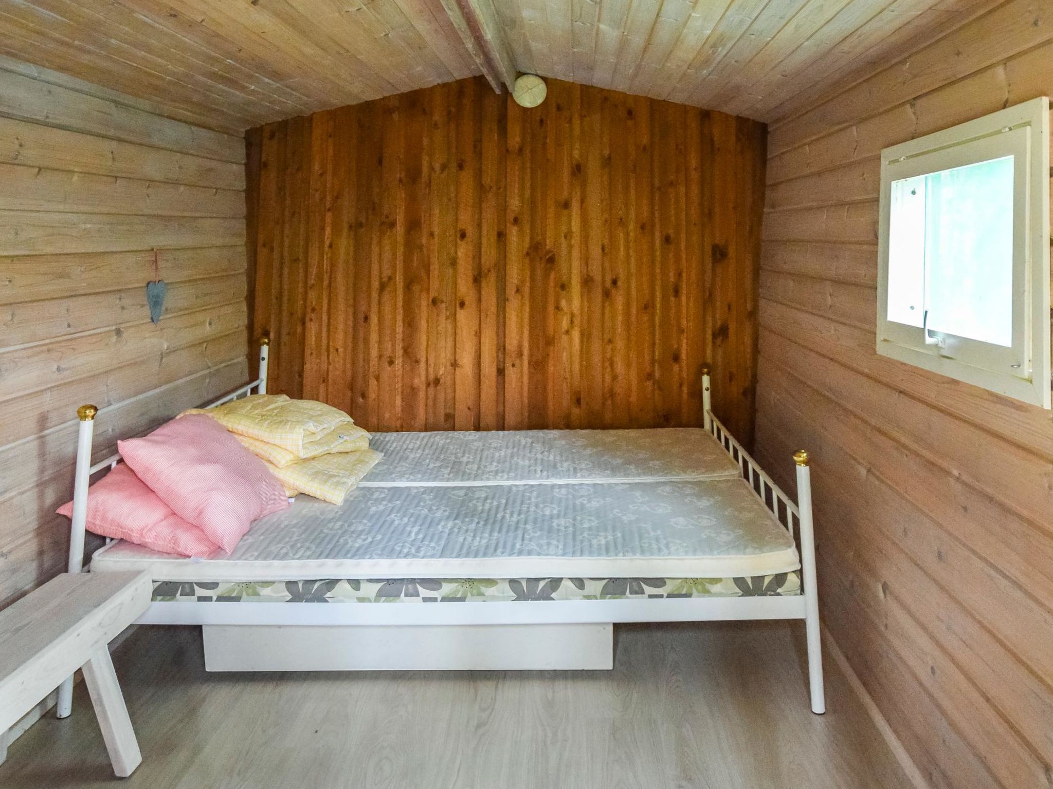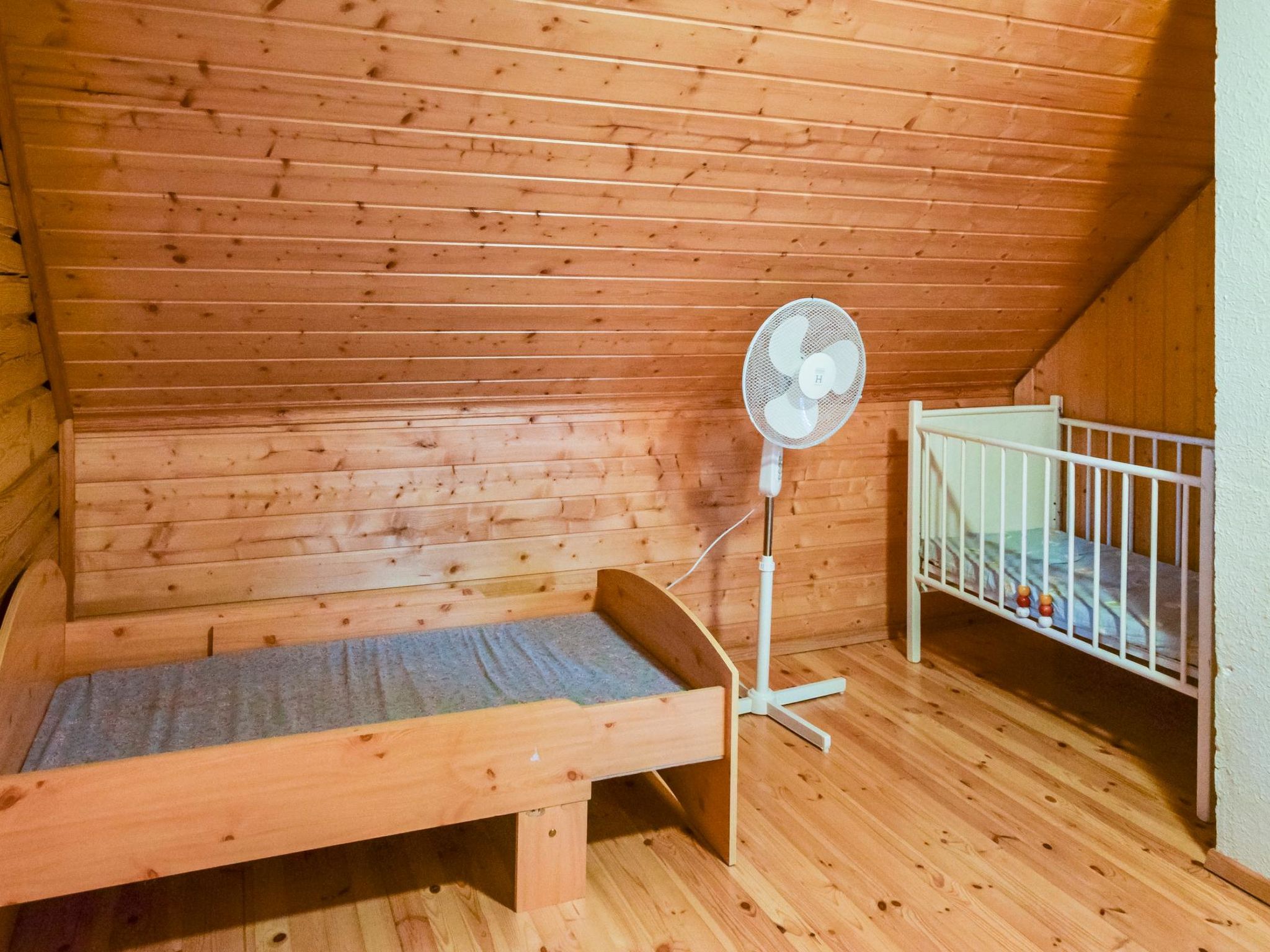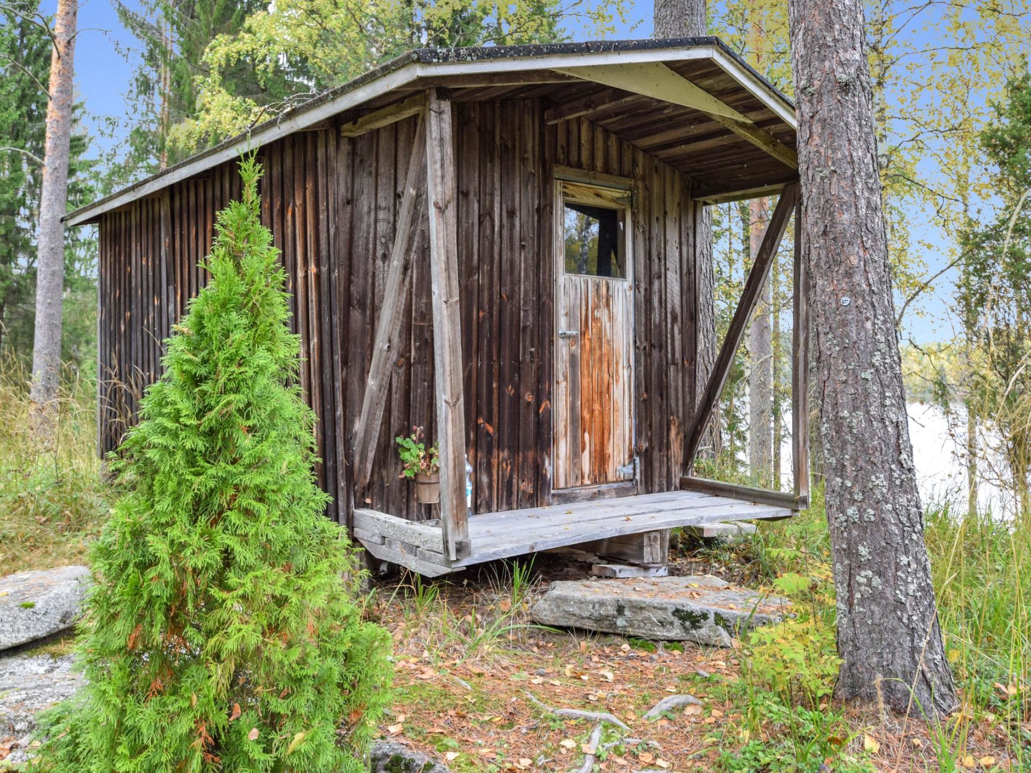 15 km östlich von Mikkeli, Teich Pieni-Huhtilampi 20 m (Länge 500 m, Breite 150 m), weicher und tief geschliffener Schlammgrund, eigenes Boot. Blockgebäude, Baujahr 1997, Wohnküche, Waschraum, Sauna, Terrasse, Veranda, im Obergeschoss (Dachschrägen - mehr als 1.6 m hoch, Grundfläche ca. 20 m²), Schlafzimmer mit Doppelbett, Schlafnische mit 2 Betten (durchgehend zum Schlafzimmer, Falttür dazwischen). W-LAN. Tornimäki Abfahrtsskizentrum 16 km. Möglichkeit zum Reiten 1 km.