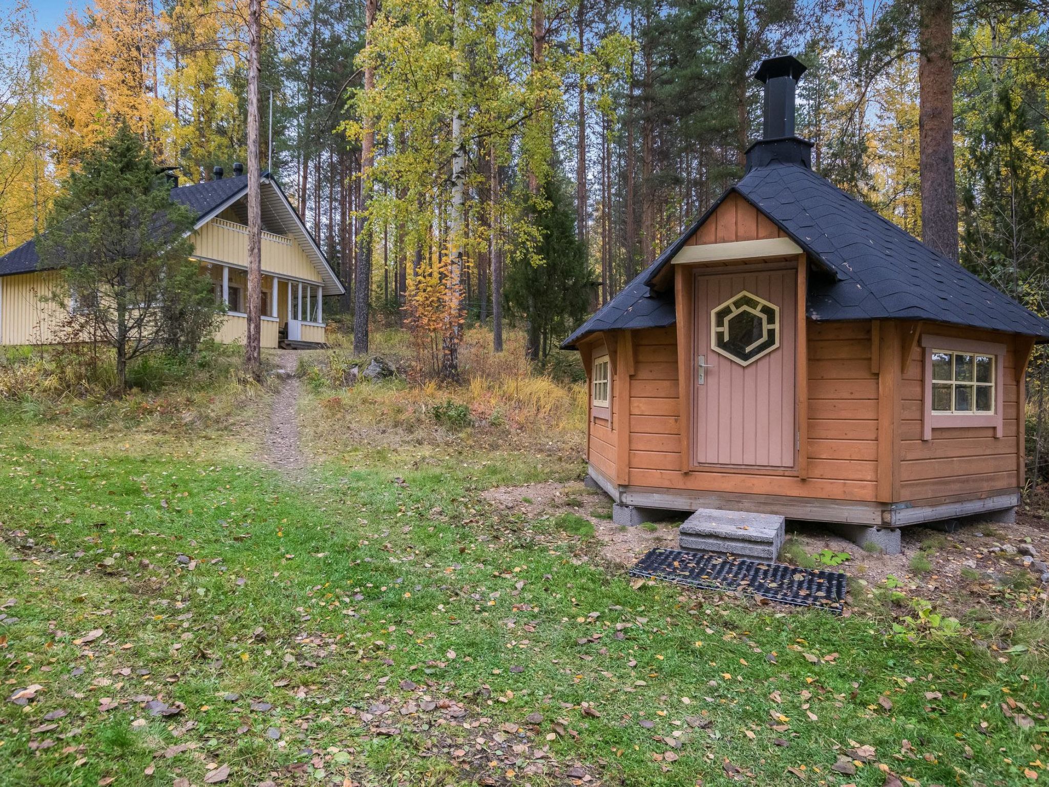 45 km östlich von Mikkeli, See Saimaa / Siikavesi 25 m, harter und flach abfallender Sandboden, Anlegestelle und Ruderboot. Holzferienhaus, Baujahr 2002, renoviert 2013, Wohnküche, Nische mit Doppelbett (140 cm breites Bett, Schiebetür), Dusche und Toilette, verglaste Veranda (10 m²). Im Obergeschoss befindet sich Schlafzimmer (10 m², in voller Höhe) mit 2 Betten, Toilette und Balkon. Separate Sauna, Baujahr 2013 (28 m²), Sauna (Holzofen), Waschraum mit Dusche und Toilette, Wohnzimmer mit voll ausgestatteter Küche, verglaste Veranda, teilverglaste Terrasse. Holzschuppen, Aussentoilette, Keller, Bootshaus. Garage vom Eigentümer besetzt. Gemütliches Ferienhaus, in ruhiger Lage, für Familien geeignet. Steile Treppe ins Obergeschoss. Klimaanlage. Eingang in die Toilette durch die Nische. Sauna im separen Gebäude. Rasen, Wald, Fels, Grundstück (9 ha). Ausflüge, gegen gesonderte Gebühr (Opar-Tiina), möglich. Aussenbordmotor (4 PS) zu mieten. Häuser des Eigentümers (6809, 6808), 200 m entfernt. Neitvuori 1 km, Aussichtspunkt 184 m über dem Meeresspiegel, der höchste Punkt in Südsavo. Hiidenmaa Routen 1 km, 55 km Waldwege. Anttola 28 km, Visulahti 35 km, Ollinmäki Weinberg 30 km, Astuvansalmi Felsmalereien, Ristiina 70 km, Puumala 70 km, Helsinki 267 km.