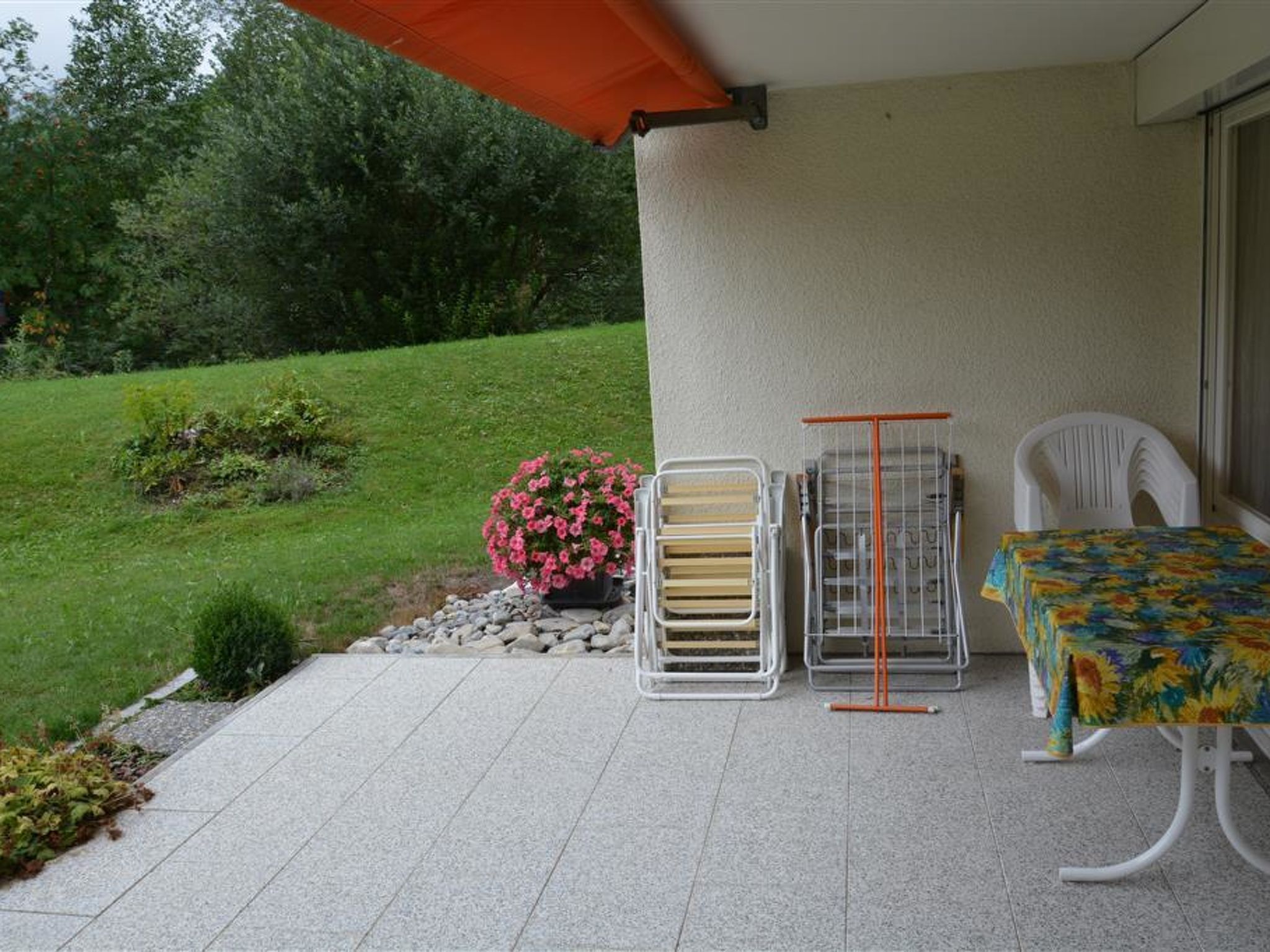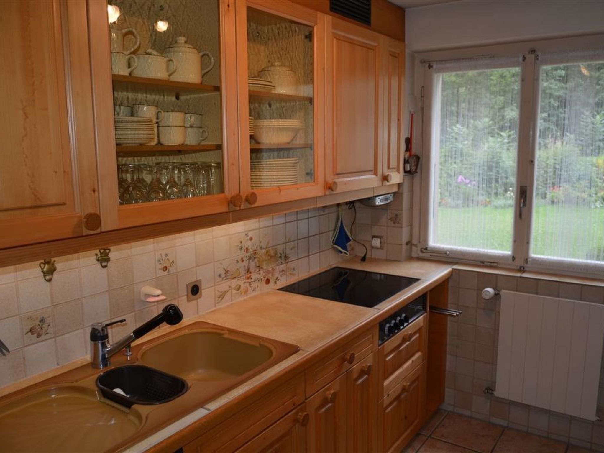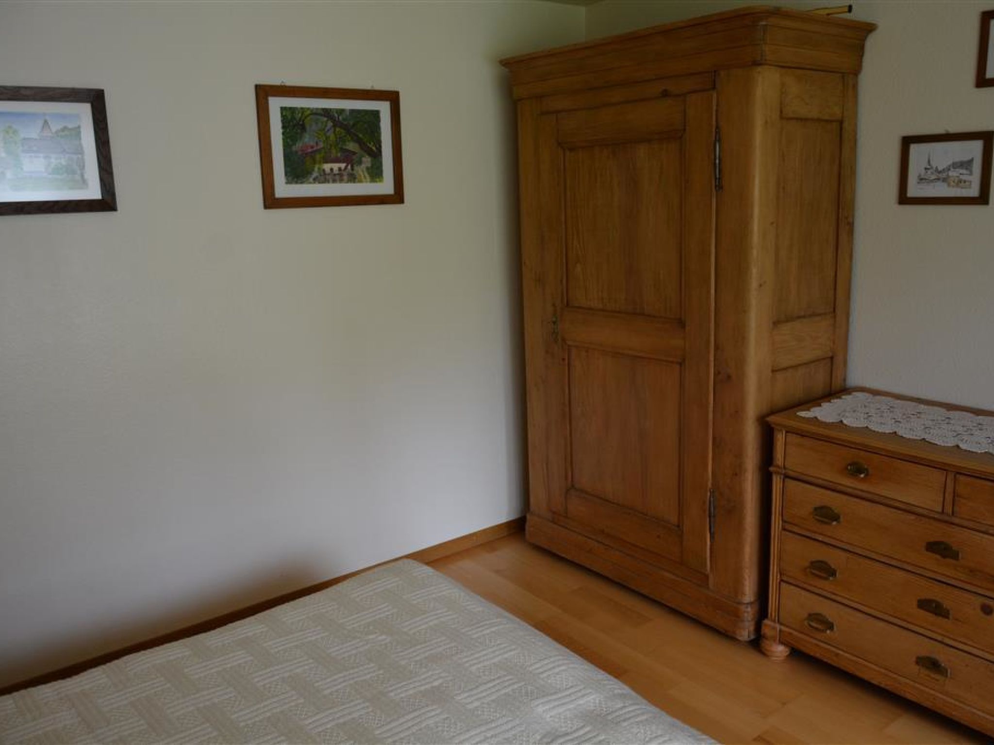 2-Zimmerwohnung. Wohn-/Esszimmer mit Wandschrankbett (2 Betten, 2x85x195cm). 1 Schlafzimmer mit 2 zusammengeschobenen Einzelbetten (2x90x200cm). Kleine separate Küche u.a. ausgestattet mit Kapsel-Kaffeemaschine (Nespresso) sowie mit Fondue- und Raclette-Set. Badezimmer mit Badewanne und WC. WiFi.