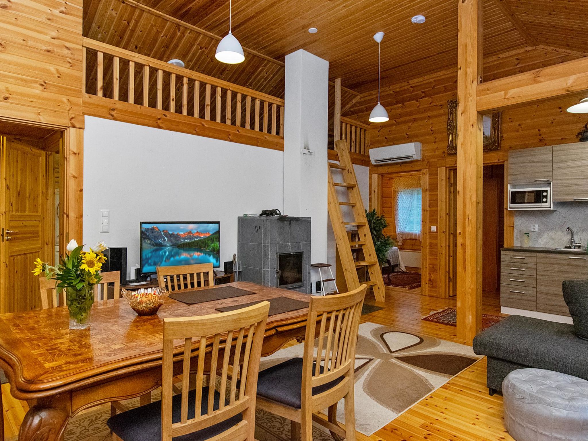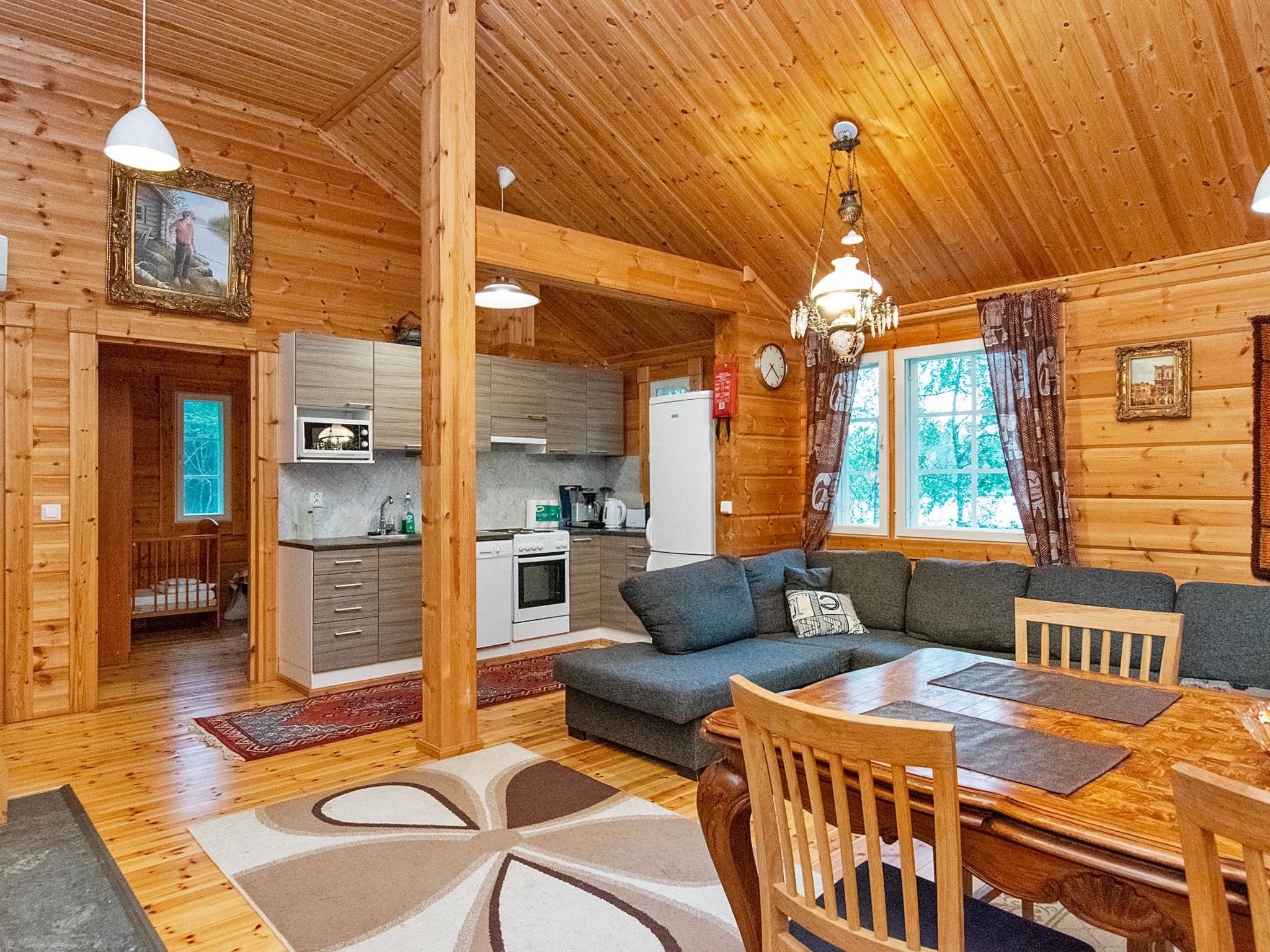 35 km südlich von Mikkeli, See Jänhönen 25 m (Länge 1 km, Breite 500 m), harter und flach abfallender Sand-/Kiesboden, eigenes Boot. Blockferienhaus, Baujahr 2013, Küche, zwei Schlafzimmer, eins mit Doppelbett, eins mit 2 Betten, Sauna, Badezimmer, Terrasse. Endreinigung ist im Preis inbegriffen. Dieses Ferienhaus befindet sich in ruhiger Lage, mitten auf dem Land, umgeben von privatem Naturschutzgebiet, 5.28 ha. Eigene Küste 430 m. Hinweis: Die Verwendung von Boot mit Motor ist verboten. Das Ferienhaus verfügt über eine Wasserleitung, aber Trinkwasser muss mitgebracht werden. Blueray-Heimkinosystem, 50-Zoll-Smart-TV, WLAN. Wäschetrockner, Luftwärmepumpe, Gartenschaukel. Steile und schmale Treppe zum Dachboden. Die Strasse Lappeenrannantie (Nr. 13) verläuft 1 km hinter dem See, der Verkehr kann gesehen und gehört werden. Beleuchtete Pellosniemi-Piste 10 km, Ristiina 15 km, Felsmalereien von Astuvansalmi 38 km, Mikkeli (Kenkävero) 35 km, Visulahti 40 km, Skipiste Tornimäki 35 km, Lappeenranta 80 km, Kouvola 87 km.