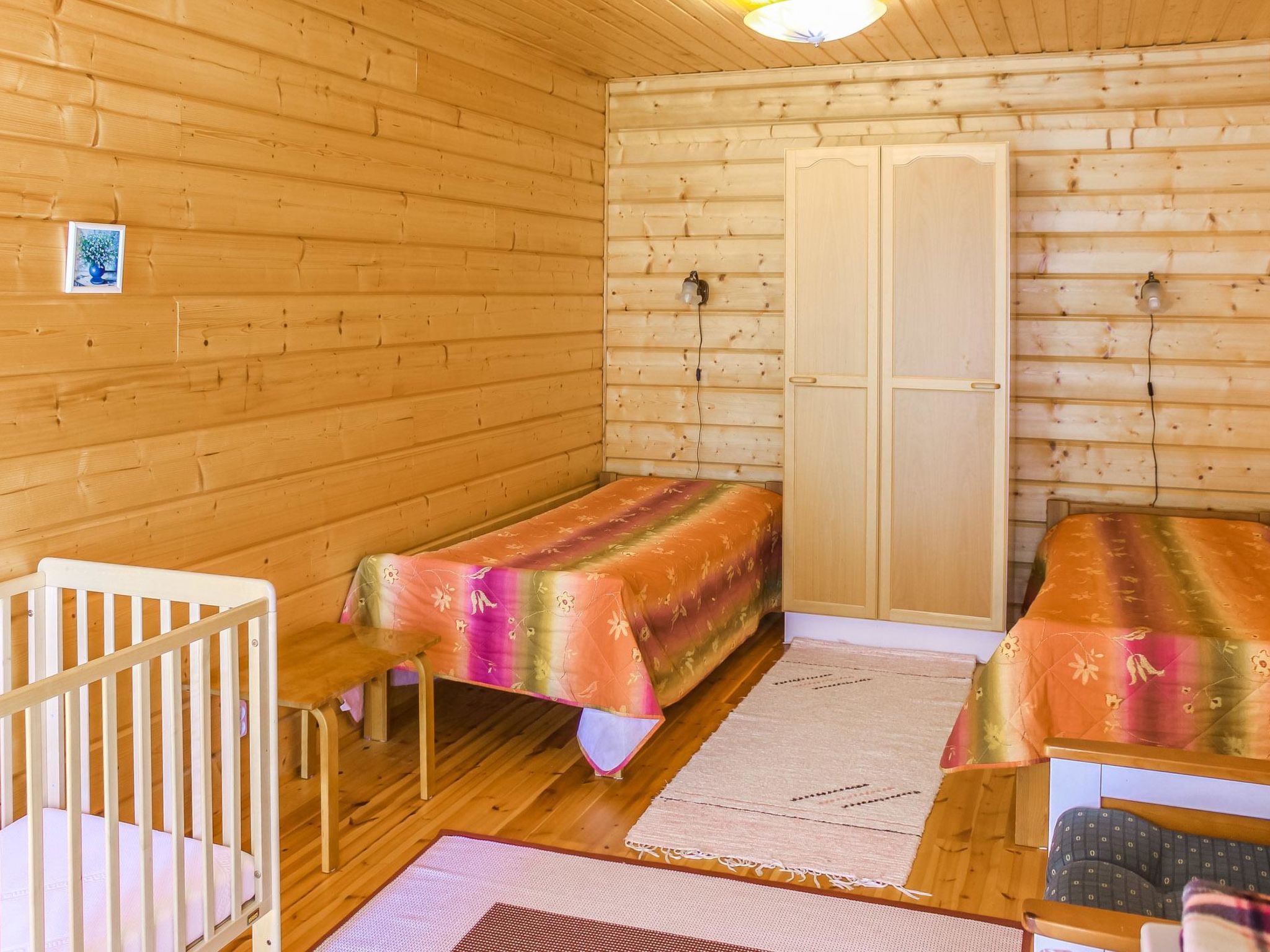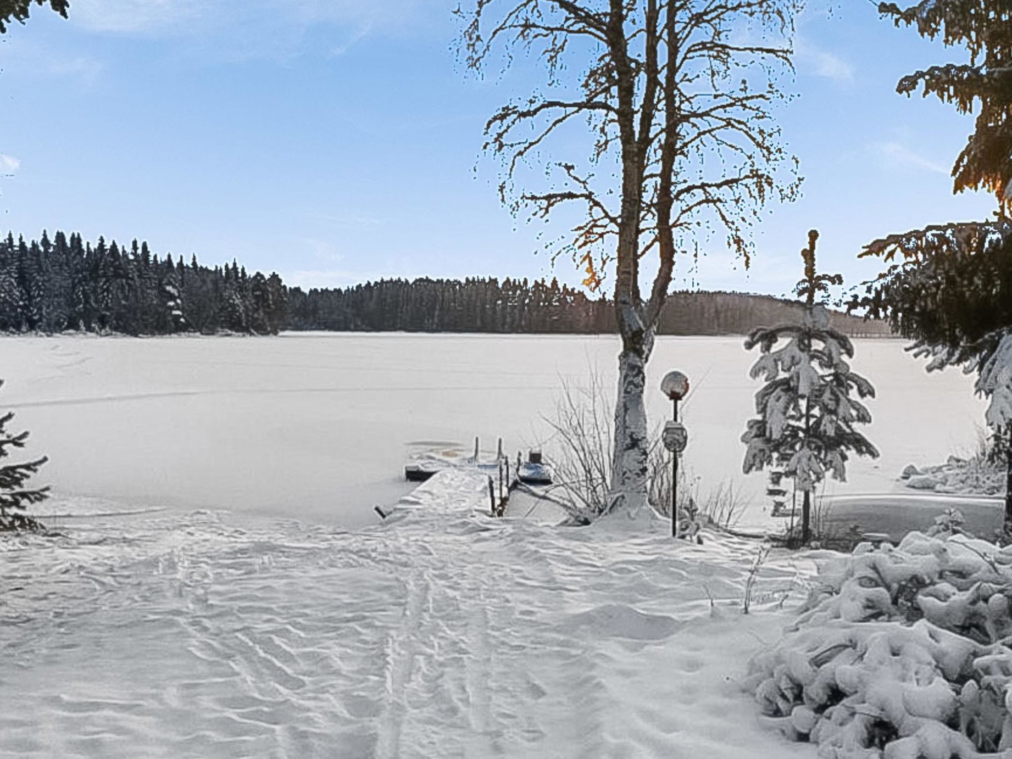 100 km nördlich von Mikkeli, See Suontie 20 m (Länge 19 km, Breite 2 km), flacher und hart geschliffener Moränenboden, 2 eigene Boote. Blockchalet, Baujahr 2003, Küche, Wohnzimmer, im Erdgeschoss 2 Schlafzimmer mit je 1 Doppelbett, im Obergeschoss 2 Schlafzimmer mit je 2 Betten und auf dem Dachboden 2 Betten, Waschraum, Ankleideraum, Sauna (Elektroherd), offene Veranda. Im Sommer sind zwei Nebengebäuden mit je 2 Betten auch verfügbar, Nebengebäude sind mit elektr. Licht und Heizung. Garage für zwei Autos. Geräumiger Grill-Tipi im Hof. Geräumiges Chalet mit allem Komfort. Karaoke-Ausrüstung und Weinschrank. Ideal auch für zwei oder drei Familien. Satelliten-Fernsehen. Das Ufer ist flach und für Kinder geeignet, nach Süden ausgerichtet. Das Grundstück ist eben und geräumig, mit Grasfläche. Der Eigentümer vermietet Aussenborder und Fahrräder. Der nächste Nachbar ist Rauchsauna (40 m), die vom Eigentümer gemietet werden kann. Der nächste Nachbar ist 220 m entfernt. Volleyballplatz und Tischtennisplatte zur Sommerzeit. Mahlzeiten werden vom Eigentümer angeboten. Dieses Objekt kann auch im Sommer ohne vorher festgelegten Umtauschtag gebucht werden. See Tuomiojärvi 8 km (Vogelbeobachtungsturm und Unterstand), Kuivataipale Museumskanal 15 km, Thermalbad Vesileppis 40 km, Skigebiet Häkärinteet 60 km. Entfernung zum nächstgelegenen Restaurant beträgt im Winter 30 km.