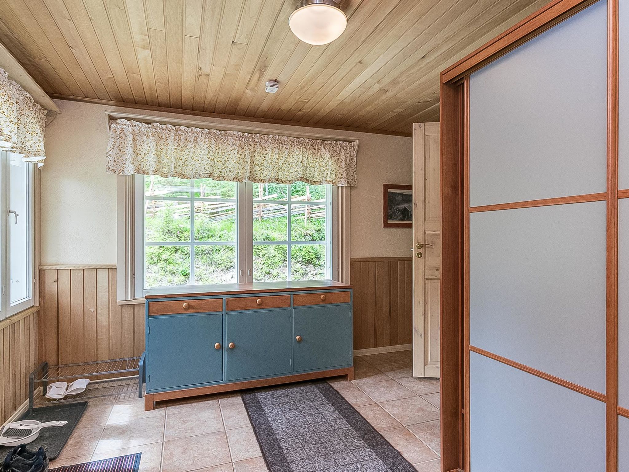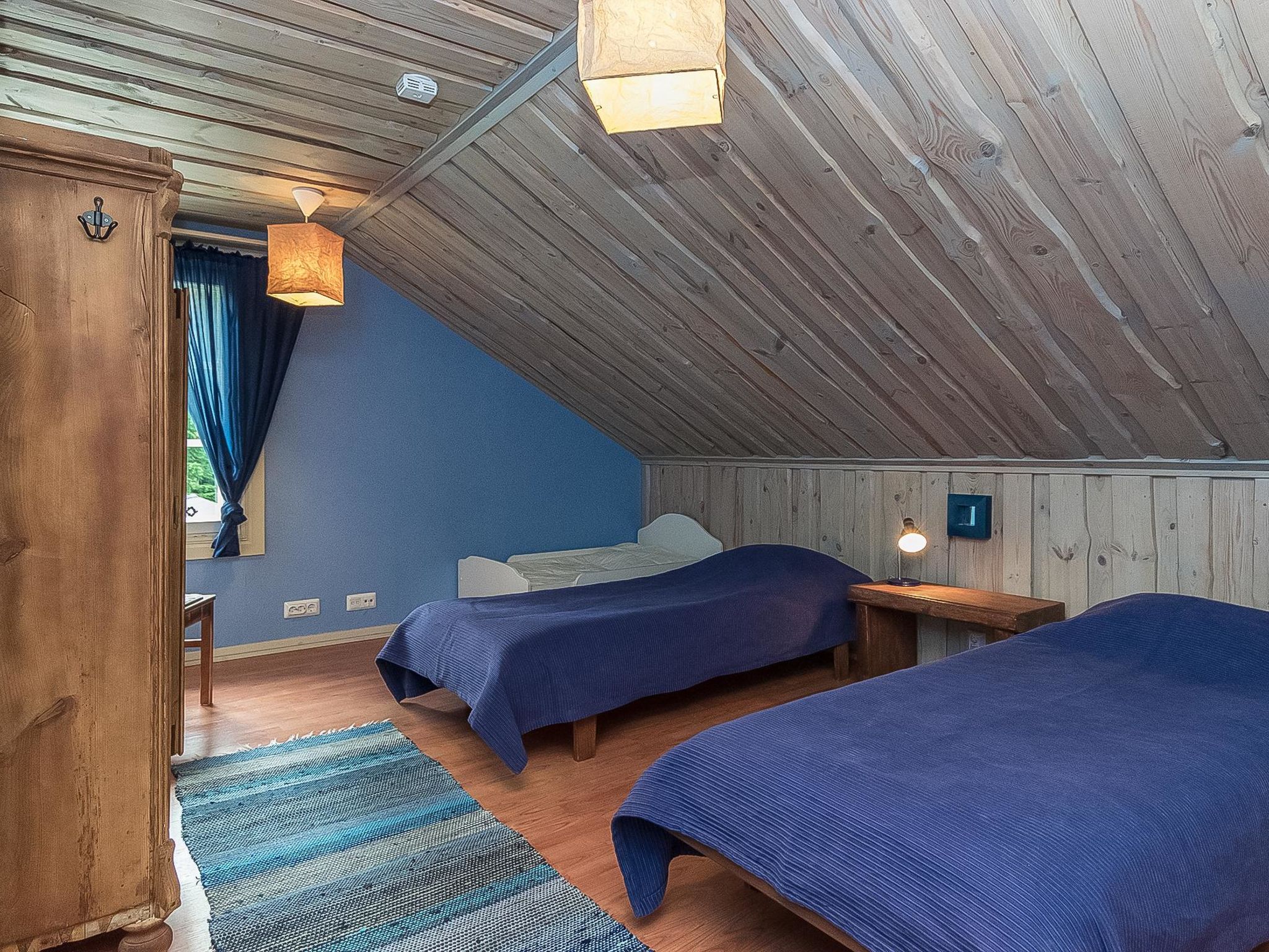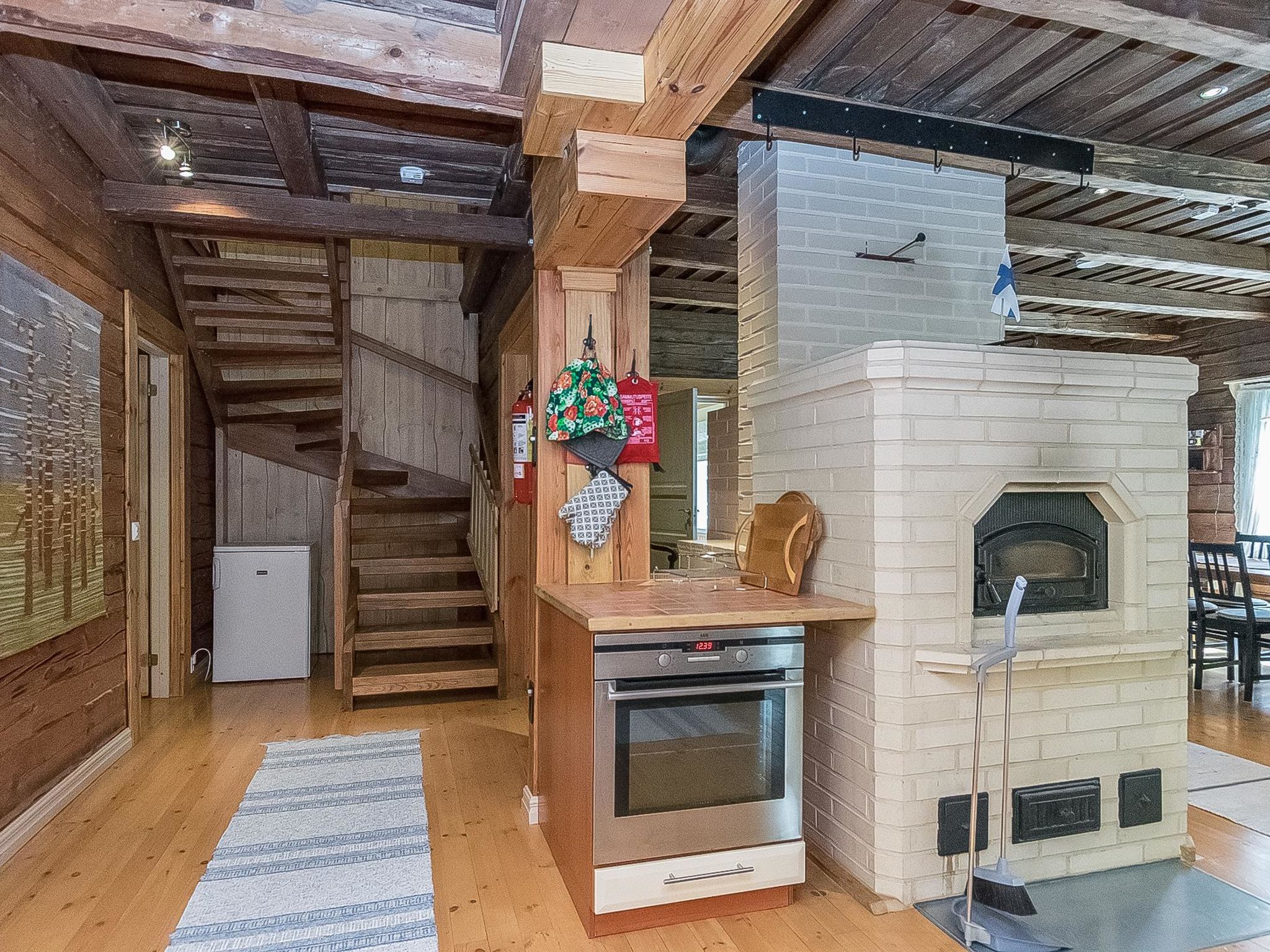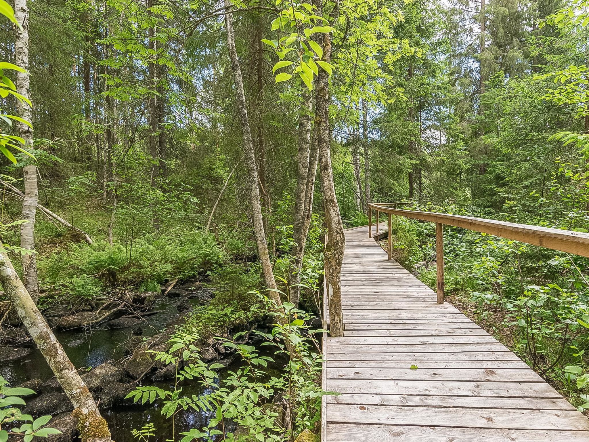 27 km östlich von Pieksämäki, Teich Vääränlampi 15 m (Länge 1 km, Breite 0.07 km), harter und gleichmässig vertiefter Sandboden, Anlegestelle, Ruderboot. Holzvilla, Baujahr 2007, Wohnküche (53 m²) mit Esstisch für 14 Personen, drei Schlafzimmer (12-14 m²) mit je zwei Betten und Schränken, Hauswirtschaftsraum, Ankleideraum, Waschraum (2 Duschen), Sauna (elektrisch), separates WC mit Dusche und WC, Flur, überdachte Terrasse. Vier Schlafzimmer mit jeweils zwei Betten und Schränken, WC und Lobby im Obergeschoss. Die Fussgängerbrücke zum Wald (Länge ca. 100 m) führt vom Hof. Die Strecke führt am Flussufer entlang und endet in der Elfenhütte. Es gibt auch Auto-Unterstand, Grillhütte und grosse Anlegestelle im Hof. Das gesamte Erdgeschoss und der Hofbereich sind so gebaut, dass sie gut zugänglich sind. Menschen mit eingeschränkter Mobilität können sich hier mit Rollstühlen bewegen. Duschen und Toiletten sind für Behinderte ausgestattet, die Sauna verfügt über motorisierte Saunabänke. Myllytupa ist eine geräumige Mietvilla für einen exklusiven und gut zugänglichen Urlaub. Myllytupa ist ein ideales Ziel für den Urlaub von Privatpersonen, sowie für Unternehmen und Gemeinschaften, die sowohl Urlaub als auch Geschäftsreisen unternehmen wollen. Es gibt auch gute Möglichkeiten, kleine Kurse und Partys zu organisieren. Die Rampen und die gebauten Wege zum Strand und zum Flussufer ermöglichen die Bewegung in der Natur mit Rollstühlen und anderen Hilfsmitteln. Der Strand mit flachem und künstlichem Sandboden vertieft sich ziemlich langsam. Angelmöglichkeit von der Anlegestelle aus, sogar mit Rollstuhl. Jäppilä 8 km, Varkaus 22 km, Leppävirta 23 km, Pieksämäki 27 km, Suonenjoki 45 km, Kuopio 74 km, Mikkeli 99 km, Jyväskylä 114 km. Imatra 188 km. Helsinki 324 km.