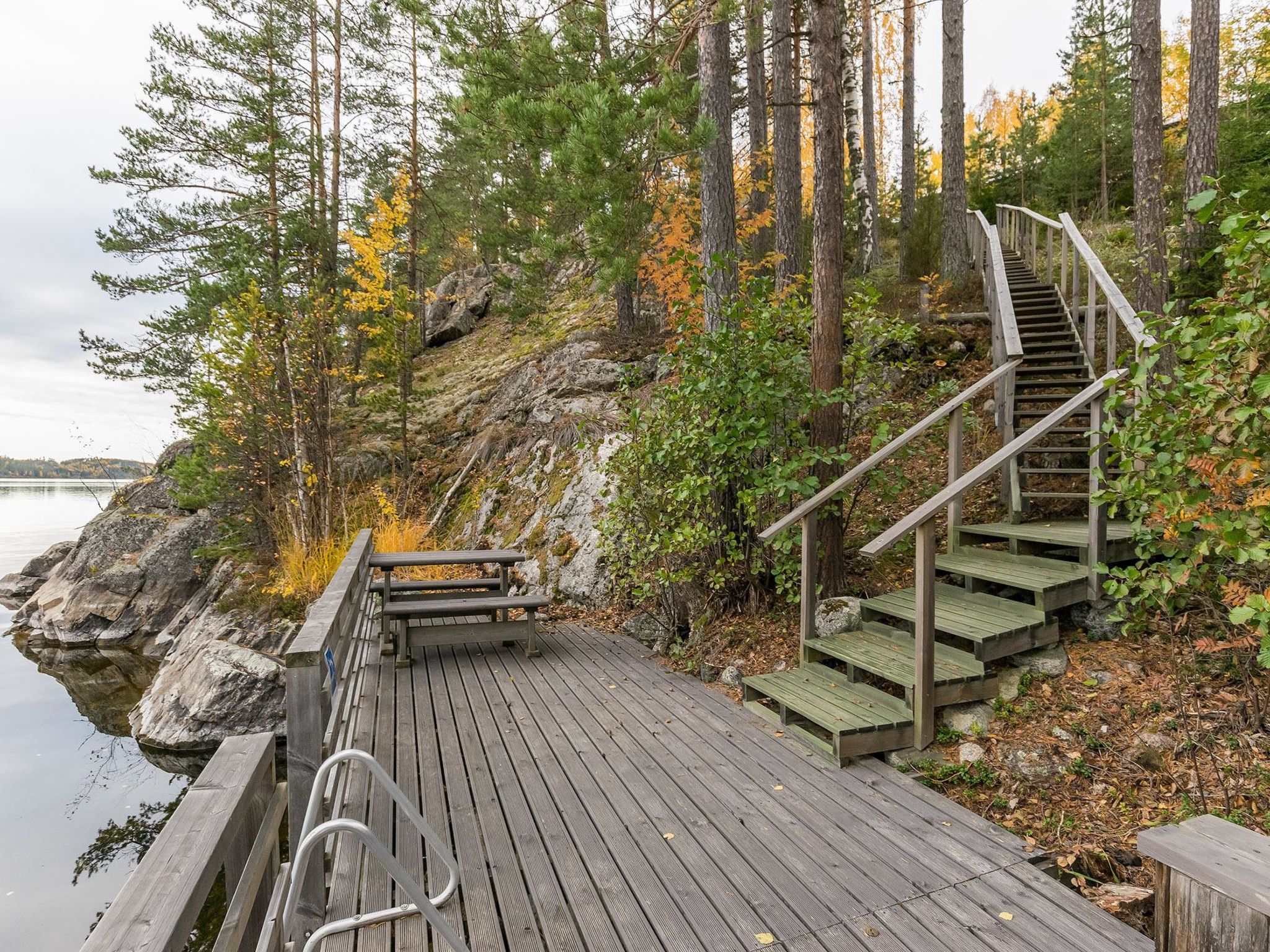 56 km südlich von Savonlinna, See Saimaa Pihlajavesi 35 m, Ufer vertieft sich schnell, harter Felsboden, steiler Hang mit steilen Treppen zum Strand, grosse Anlegestelle am Strand, eigenes Boot im Sommer. Steiniger und felsiger Strand. Blockhaus, Baujahr 2011, grosse Küche, 3 Schlafzimmer mit je zwei Betten, Duschraum, Ankleideraum, Sauna (Elektroherd), zwei Veranden. Separate Sauna mit Ankleideraum (mit Holz beheizte Sauna). Das Grundstück befindet sich hautpsächlich in natürlichem Zustand (felsige und waldreiche Umgebung). Nächster Nachbar ist das Ferienhaus-Nr. 8761.
