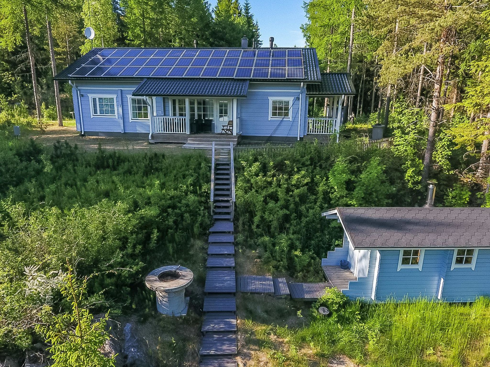 56 km südlich von Savonlinna, See Saimaa Pihlajavesi 50 m, Ufer vertieft sich schnell, harter Felsboden, steiler Hang mit steilen Treppen zum Strand, grosse Anlegestelle am Strand. Steiniger und felsiger Strand. Blockhaus, Baujahr 2011, grosse Küche, 3 Schlafzimmer mit je zwei Betten, Duschbad, Ankleidezimmer, Sauna (Elektroherd) mit zwei Veranden. Separate Sauna ab Juni 2012 mit Ankleideraum (mit Holz beheizte Sauna). Das Grundstück befindet sich hauptsächlich in natürlichem Zustand (felsige und waldreiche Umgebung). Nächster Nachbar ist Ferienhaus-Nr. 8760.