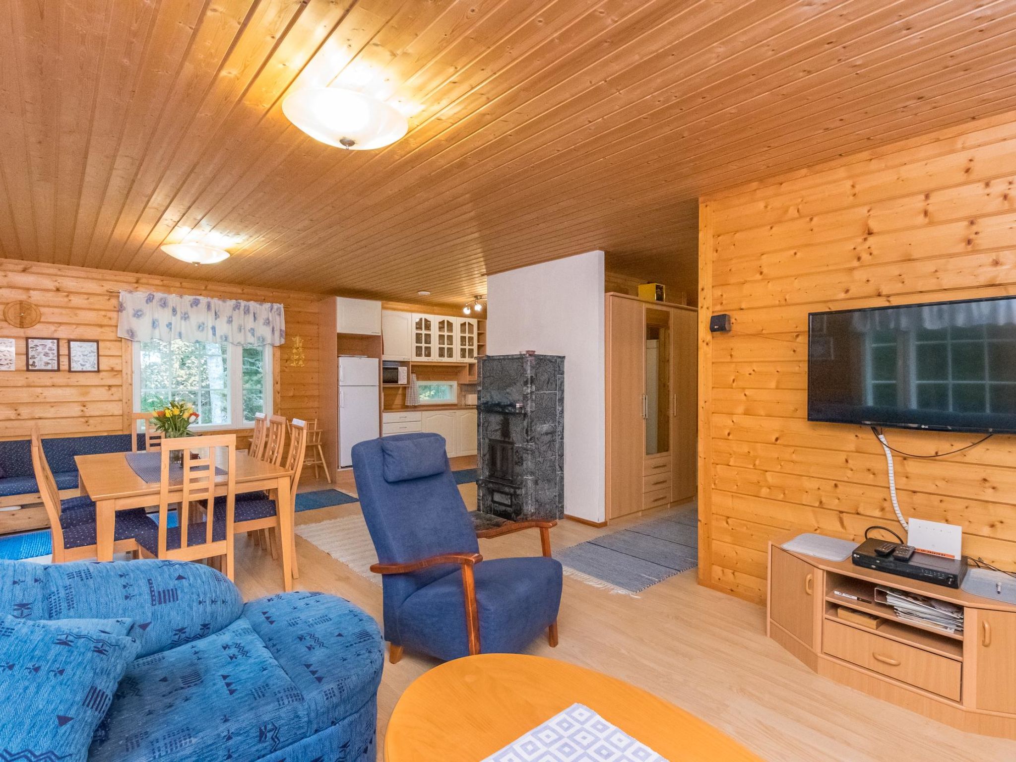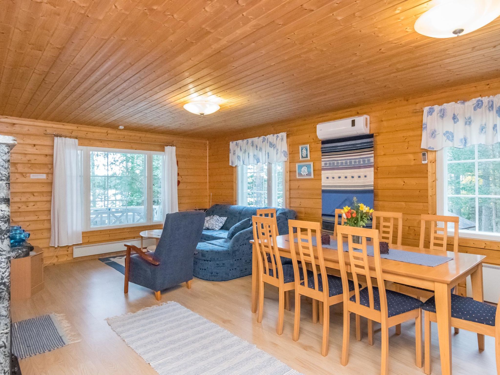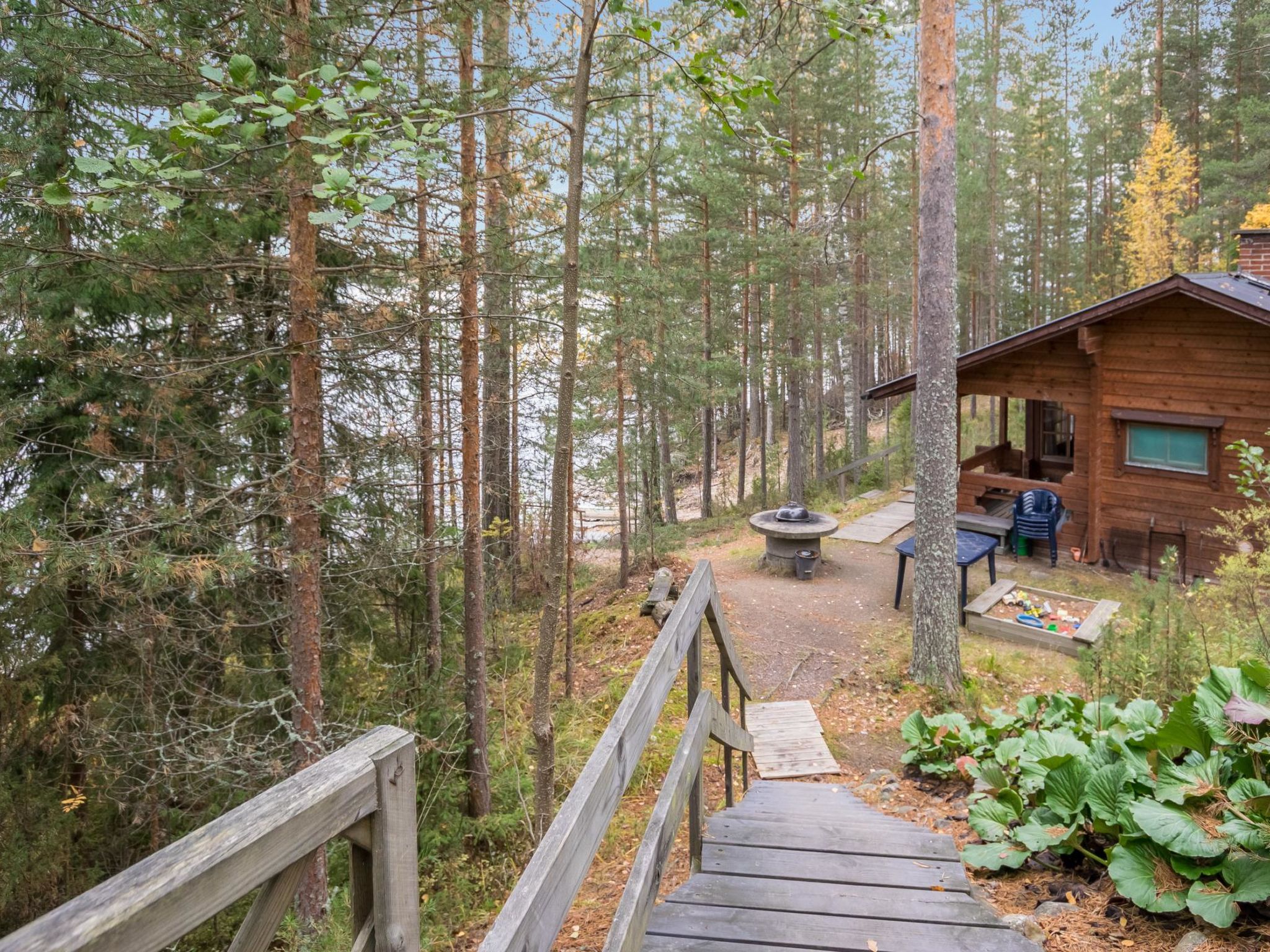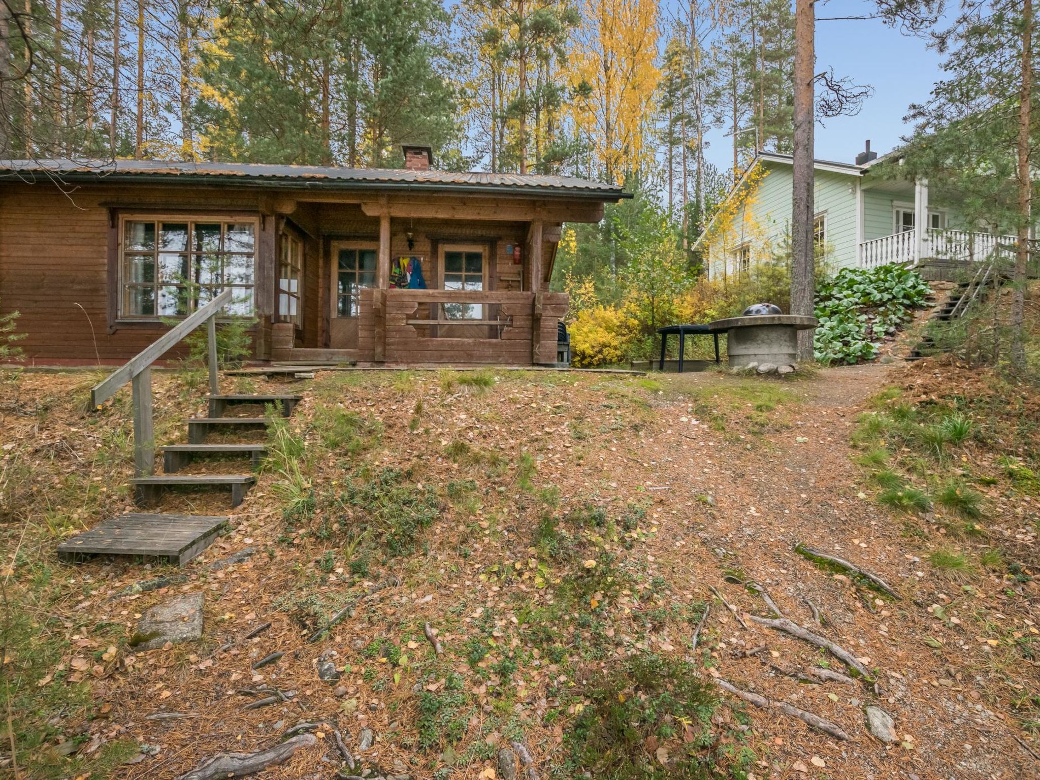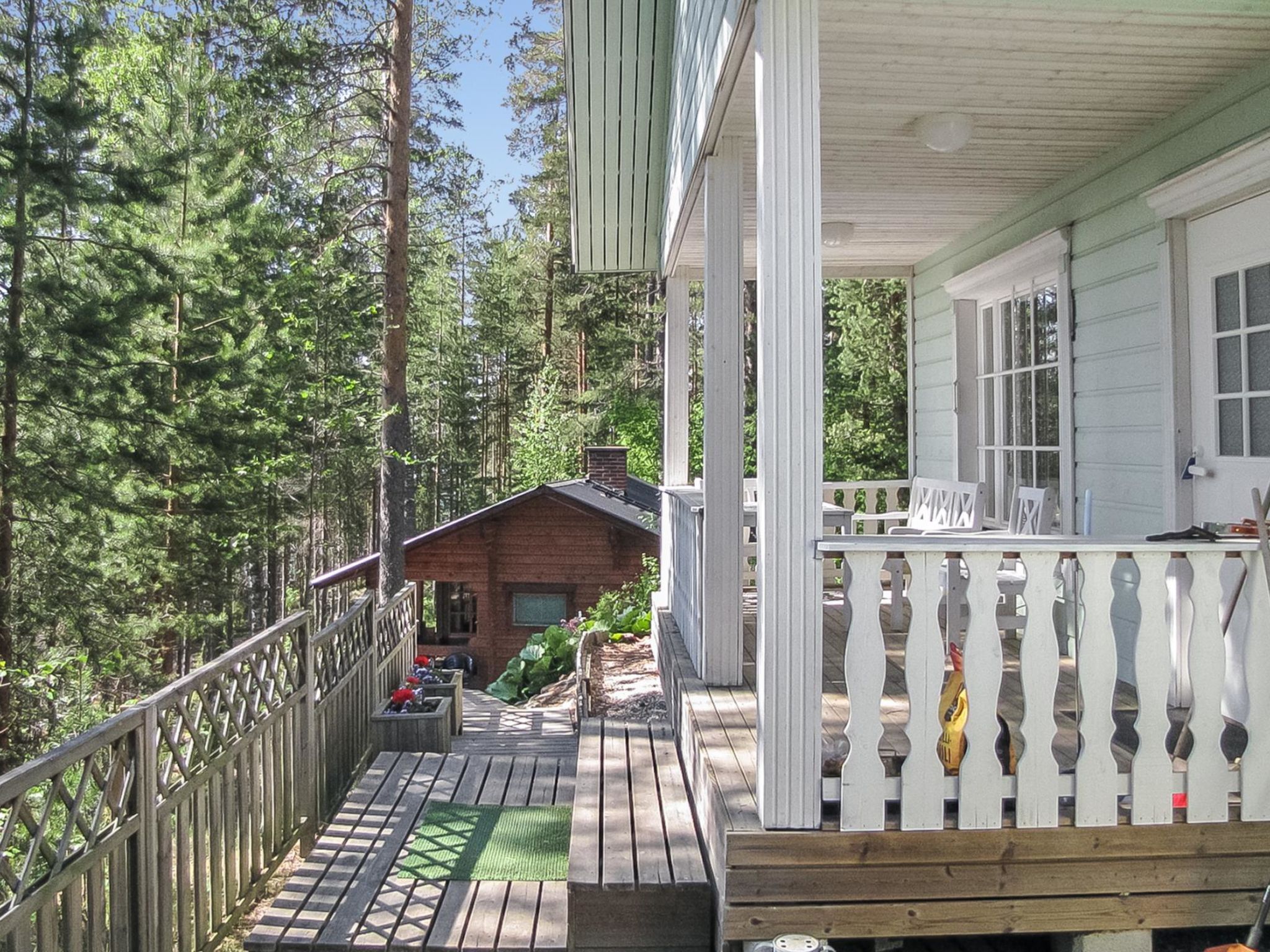 56 km südlich von Savonlinna, See Saimaa Pihlajavesi Gegend 25 m, harter und teilweiser flacher und tiefer Sand-/Felsboden. Eigenes Boot. Holzferienhaus, Baujahr 2006, Wohnküche mit 2 Zustellbetten (Schlafsofa), zwei Schlafzimmer mit je 2 Einzelbetten, Waschraum, Sauna (Elektroherd), Hauswirtschaftsraum, Flur, offene Veranda. Zusätzlich separate Seesauna mit Holzofen, Wohnküche, kaltes und warmes Wasser, Kamin.
