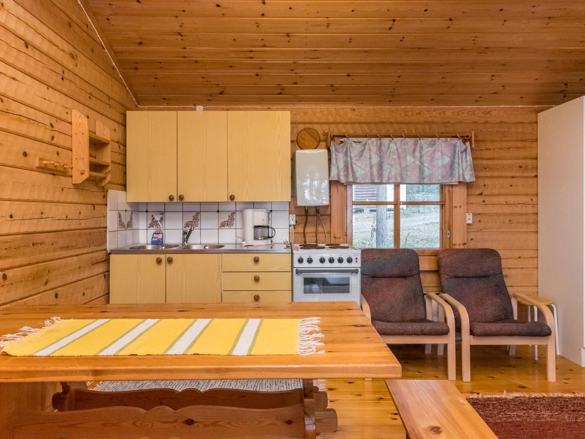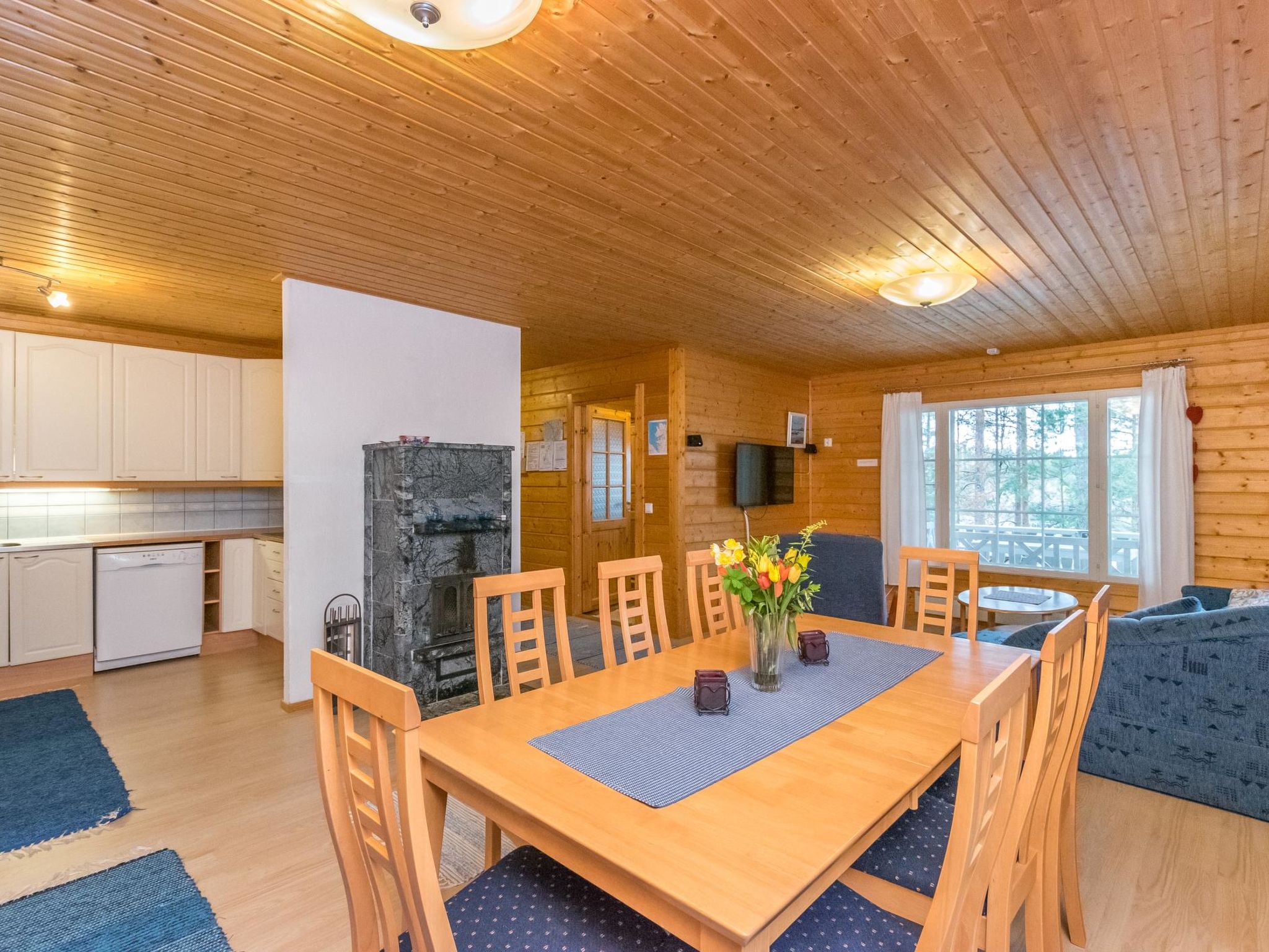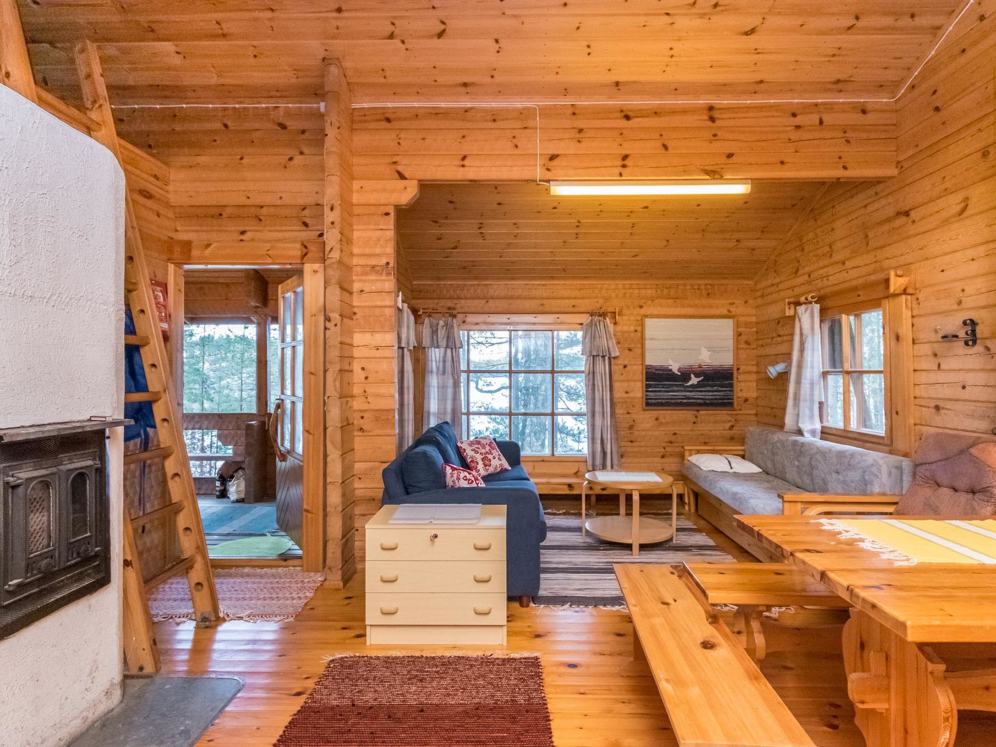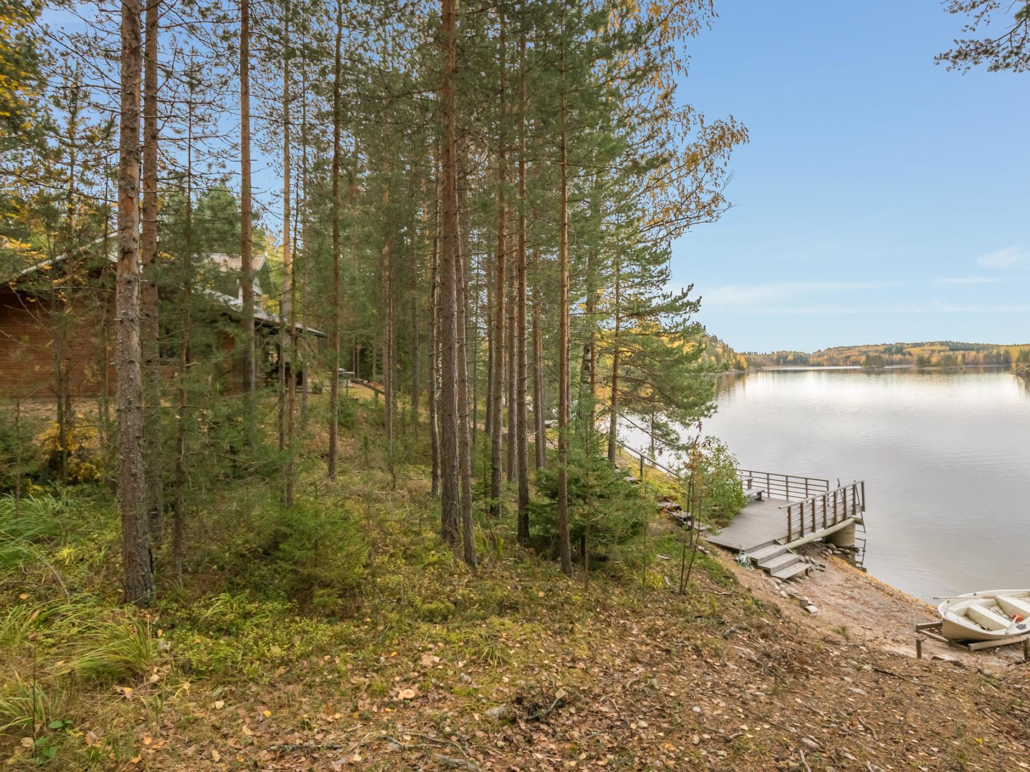 56 km südlich von Savonlinna, See Saimaa Pihlajavesi Gegend 25 m, harter und teilweiser flacher und tiefer Sand-/Felsboden. Eigenes Boot. Holzferienhaus, Baujahr 2006, Wohnküche mit 2 Zustellbetten (Schlafsofa), zwei Schlafzimmer mit je 2 Einzelbetten, Waschraum, Sauna (Elektroherd), Hauswirtschaftsraum, Flur, offene Veranda. Zusätzlich separate Seesauna mit Holzofen, Wohnküche, kaltes und warmes Wasser, Kamin.