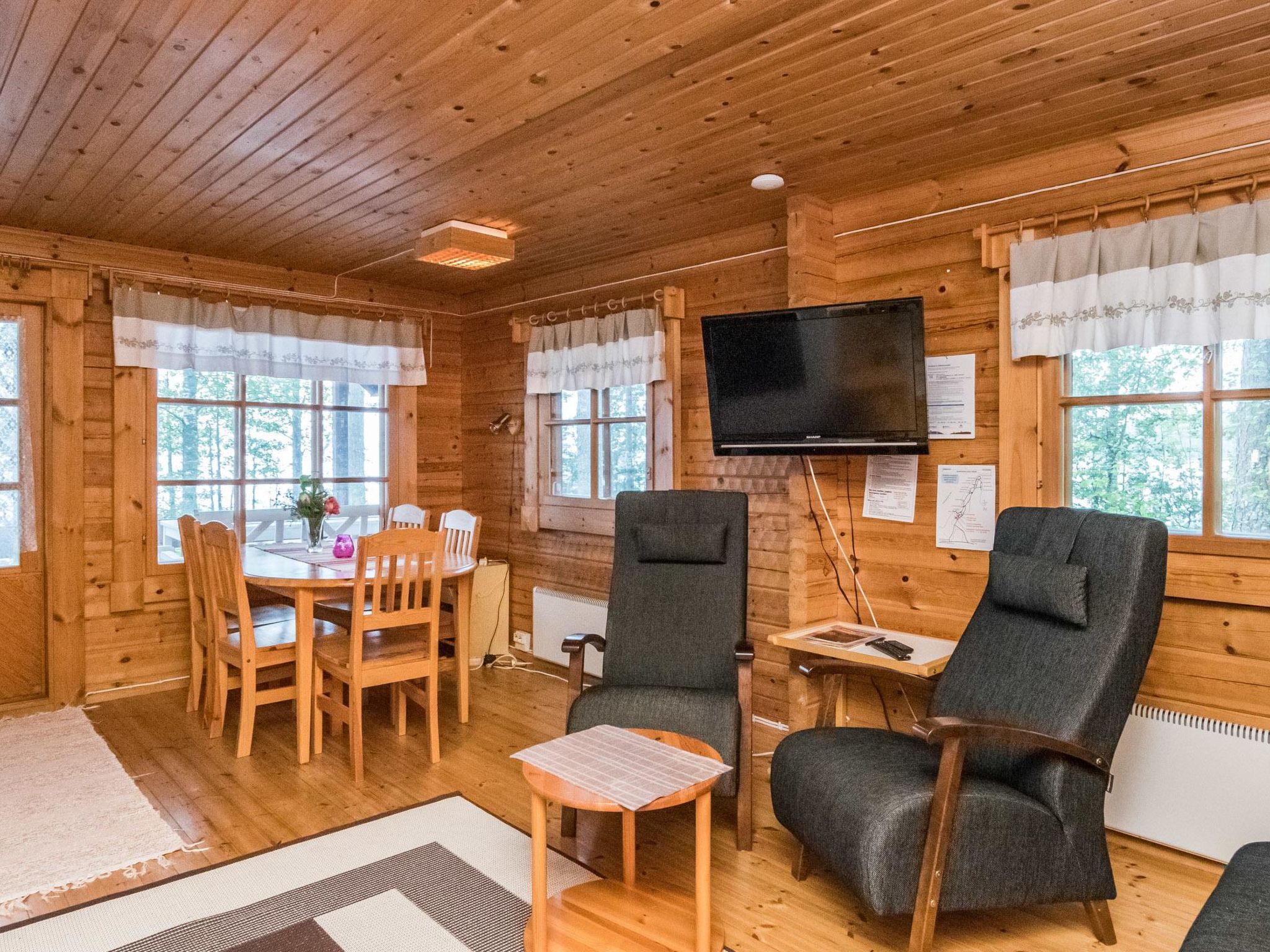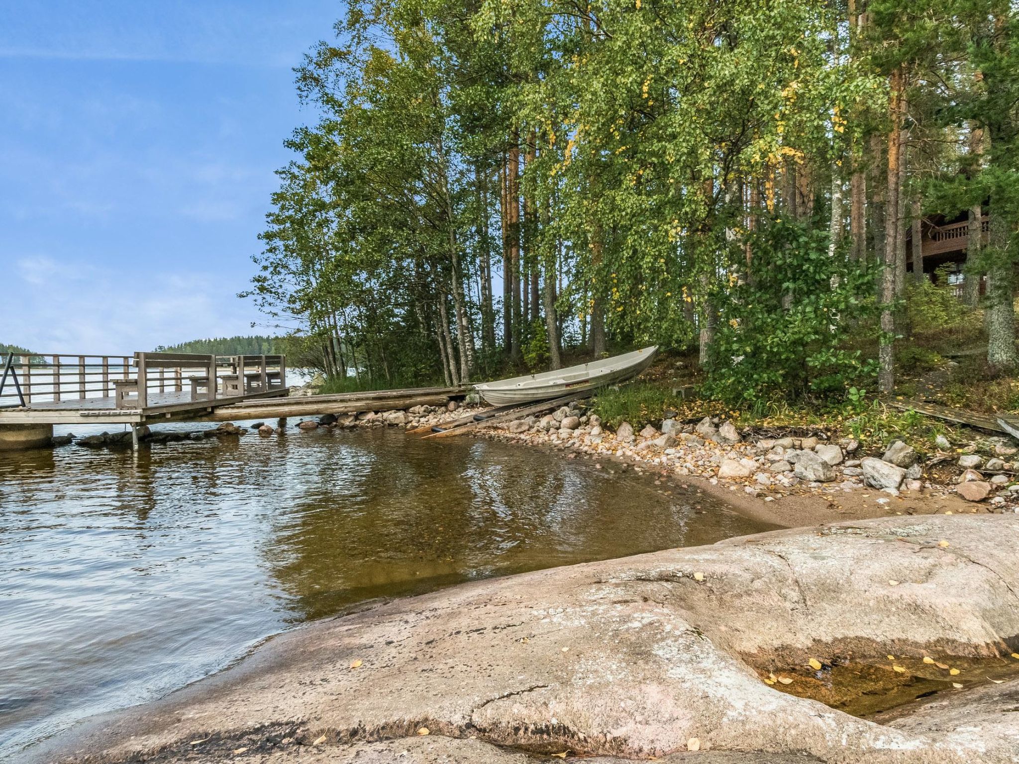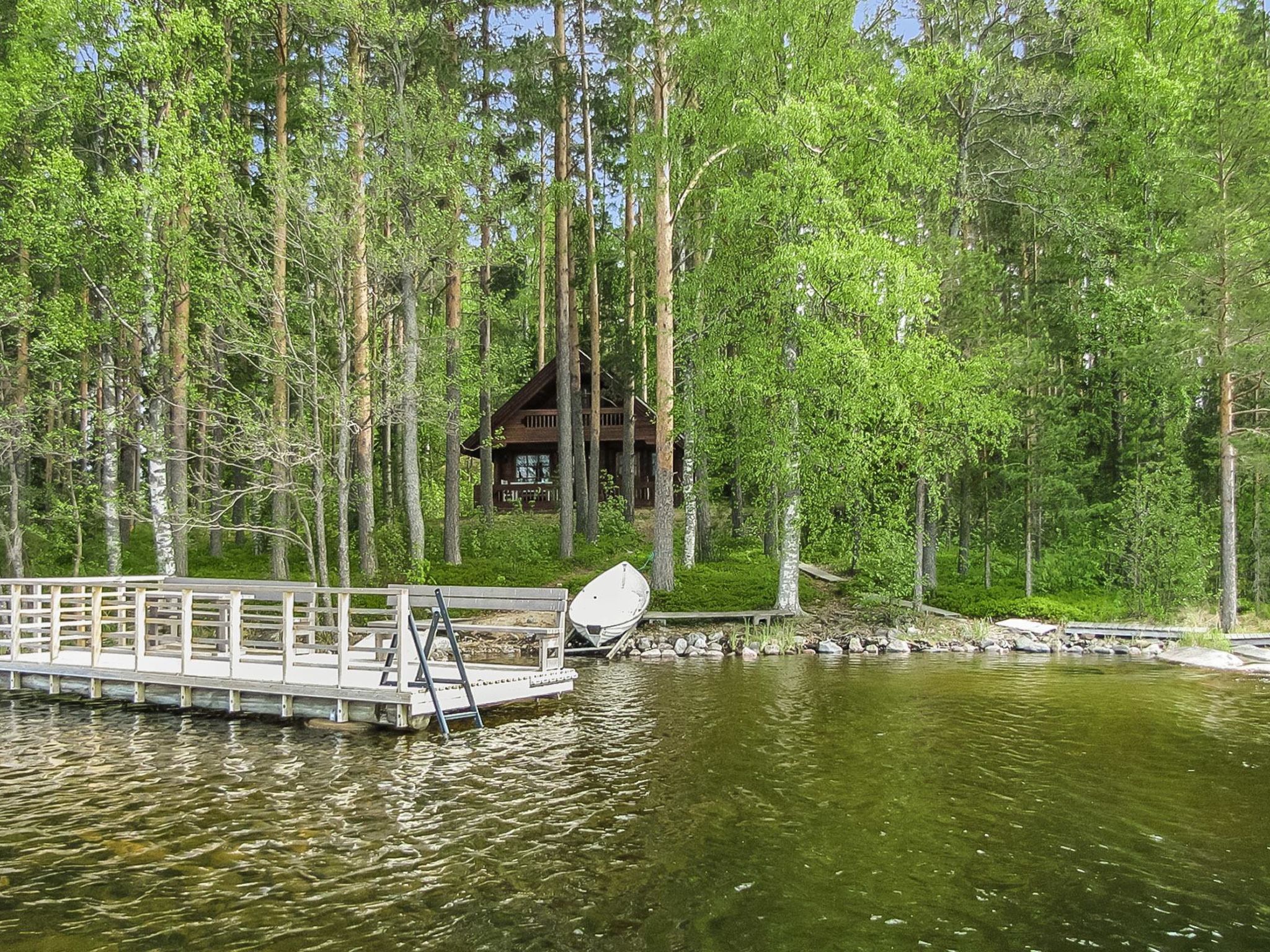 56 km südöstlich von Savonlinna. See Pihlajavesi 20 m, flaches und tiefes Wasser, fester Sand-/Felsboden. Eigenes Boot. Blockhaus, Baujahr 1986, Wohnküche, Schlafboden (steile Treppe) mit 2 Betten und Doppelbett, Ankleideraum, Sauna, Balkon, offene Veranda. Im Sommer alternativer Schlafplatz: Nebengebäude (el. Heizung) mit 2 Betten. Baby- oder Kinderbett und Hochstuhl auf Anfrage kostenlos zur Verfügung. Boot und Fahrrad können gemietet werden.