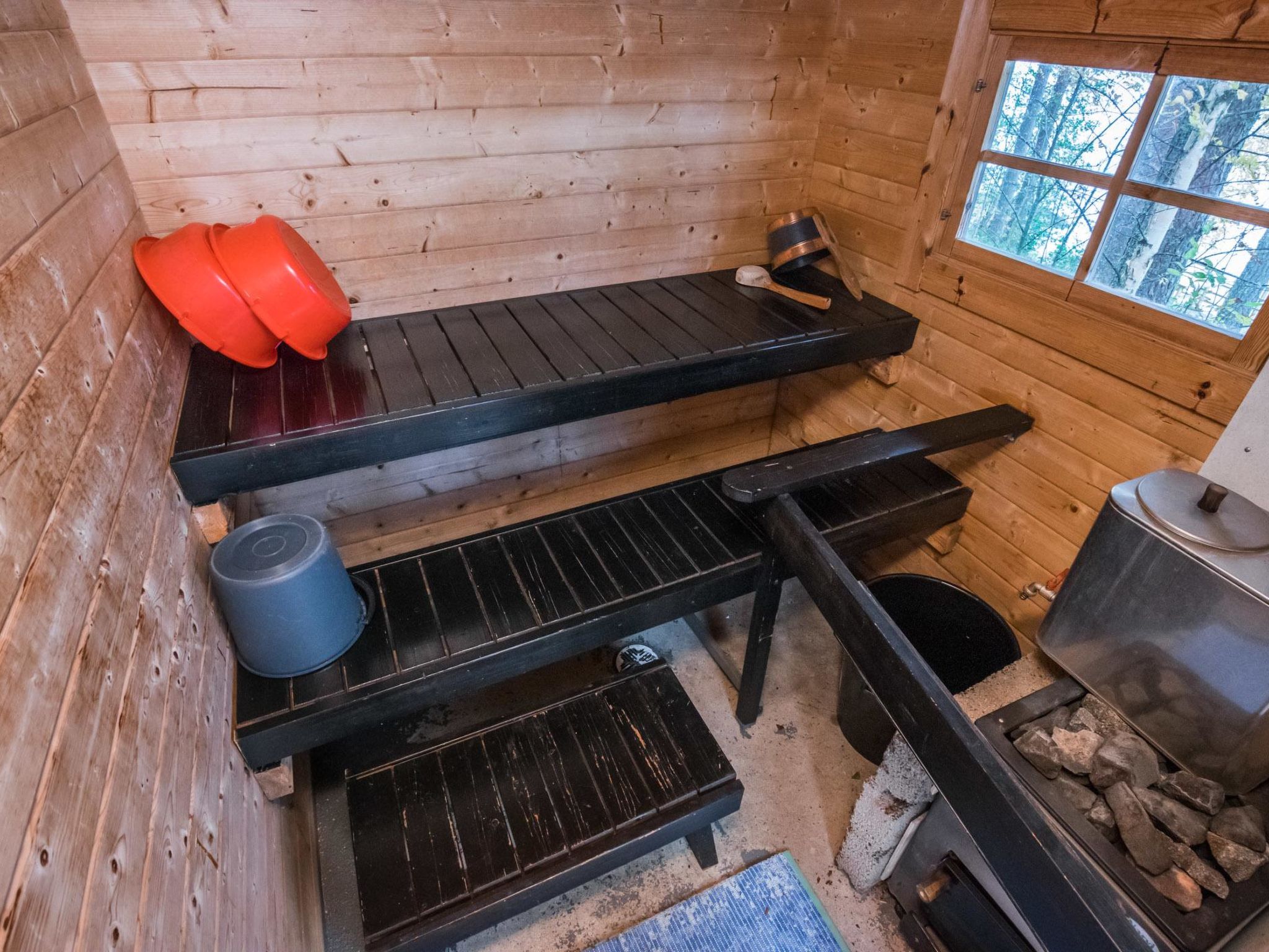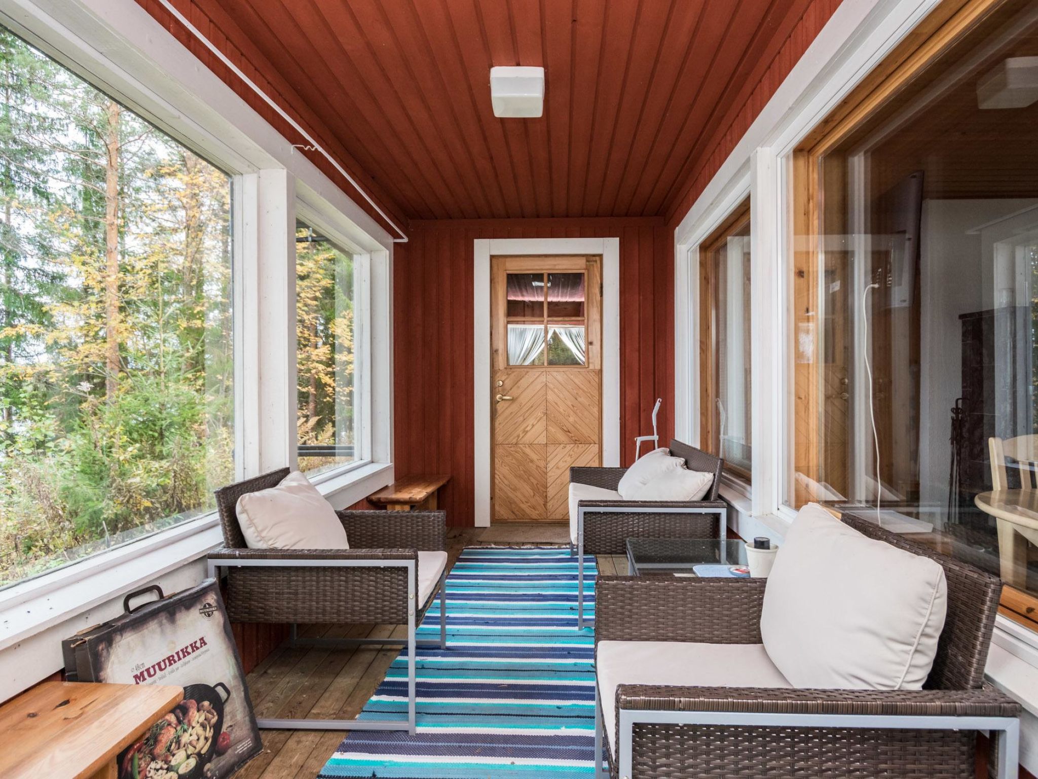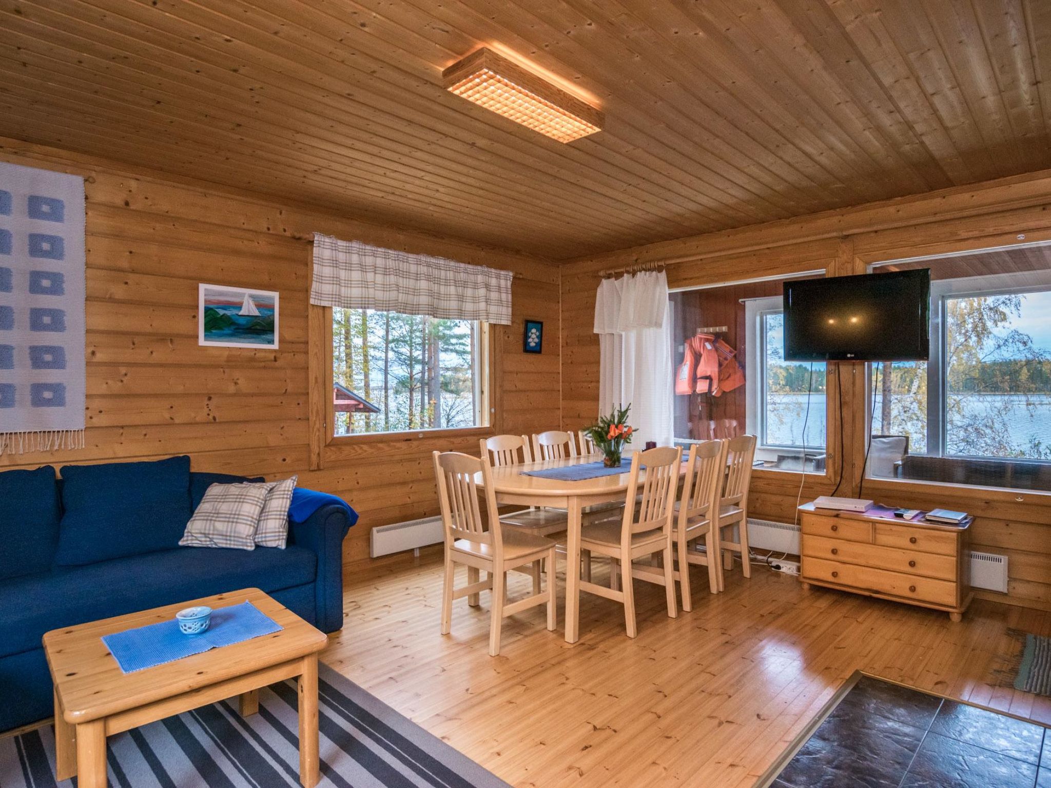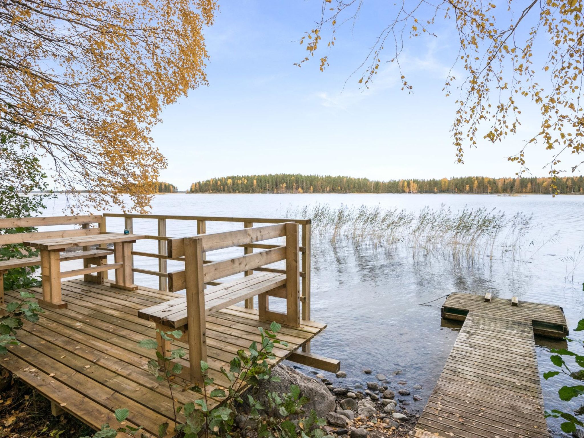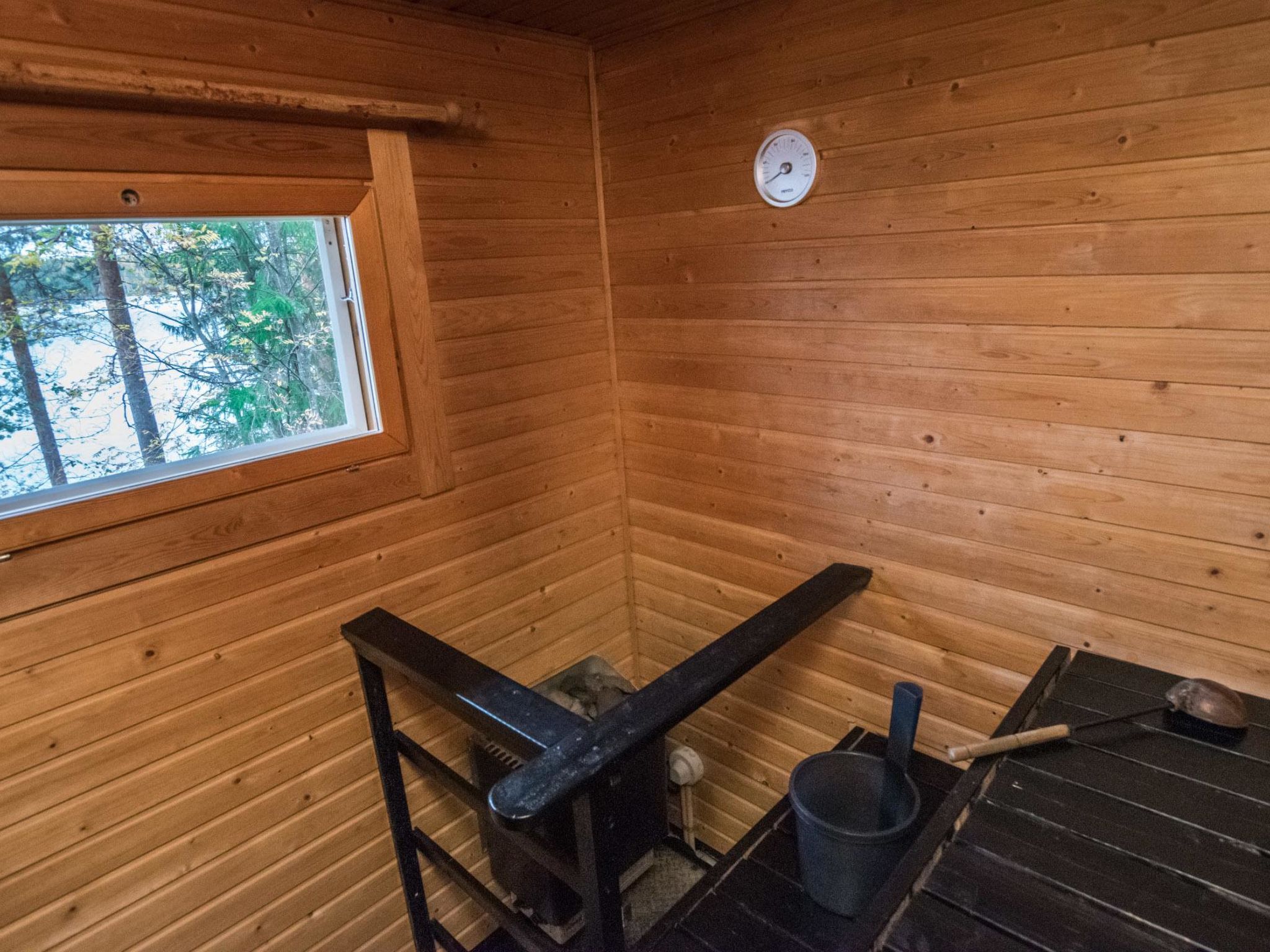 56 km südlich von Savonlinna. See Saimaa/Pihlajavesi 20 m, flaches Wasser, fester Sand-/Kiesboden. Eigenes Boot. Block-/Holzhaus, Baujahr 1998, Wohnküche mit 1 Zustellbett, 2 Schlafzimmer mit je 2 Betten, Waschraum, Ankleideraum, Sauna (Elektroherd), Foyer, verglaste Veranda. Seesauna 10 m2 (mit Holz beheizt). Steiler Hang vom Ferienhaus bis zum Ufer.