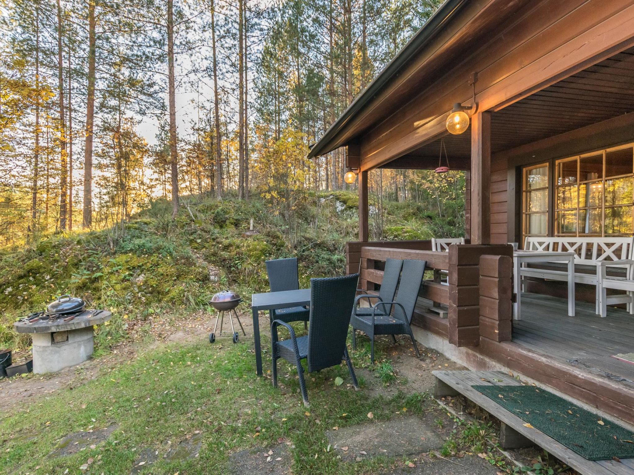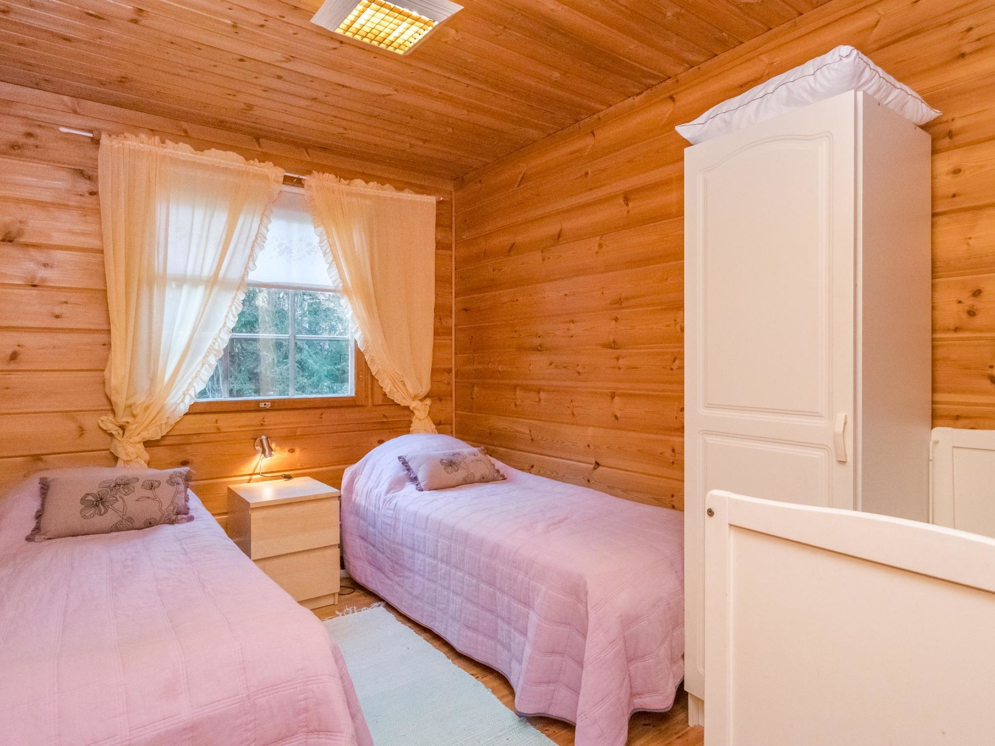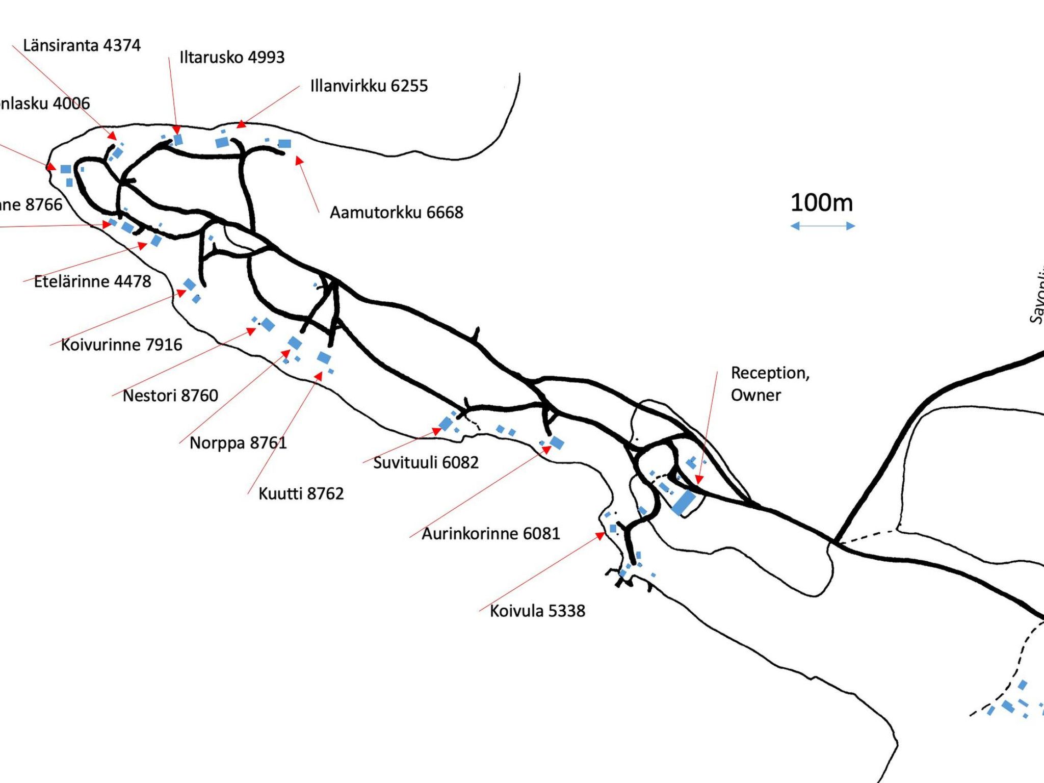 56 km südlich von Savonlinna. See Saimaa/Pihlajavesi 25 m, ziemlich tiefes Wasser, fester Sandboden. Eigenes Boot. Blockhaus, Baujahr 1994, Wohnküche mit Schlafsofa, 2 Schlafzimmer mit je 2 Betten, Waschraum, Ankleideraum, Sauna (elektrischer Saunaofen), offene Veranda. Seesauna 10 qm (mit Holz beheizt). Gepflegte Skipisten (Länge 2 km) direkt vom Ferienhaus. Steiler Hang vom Ferienhaus zum Strand. Aussenbordmotor und Fahrräder zu mieten.