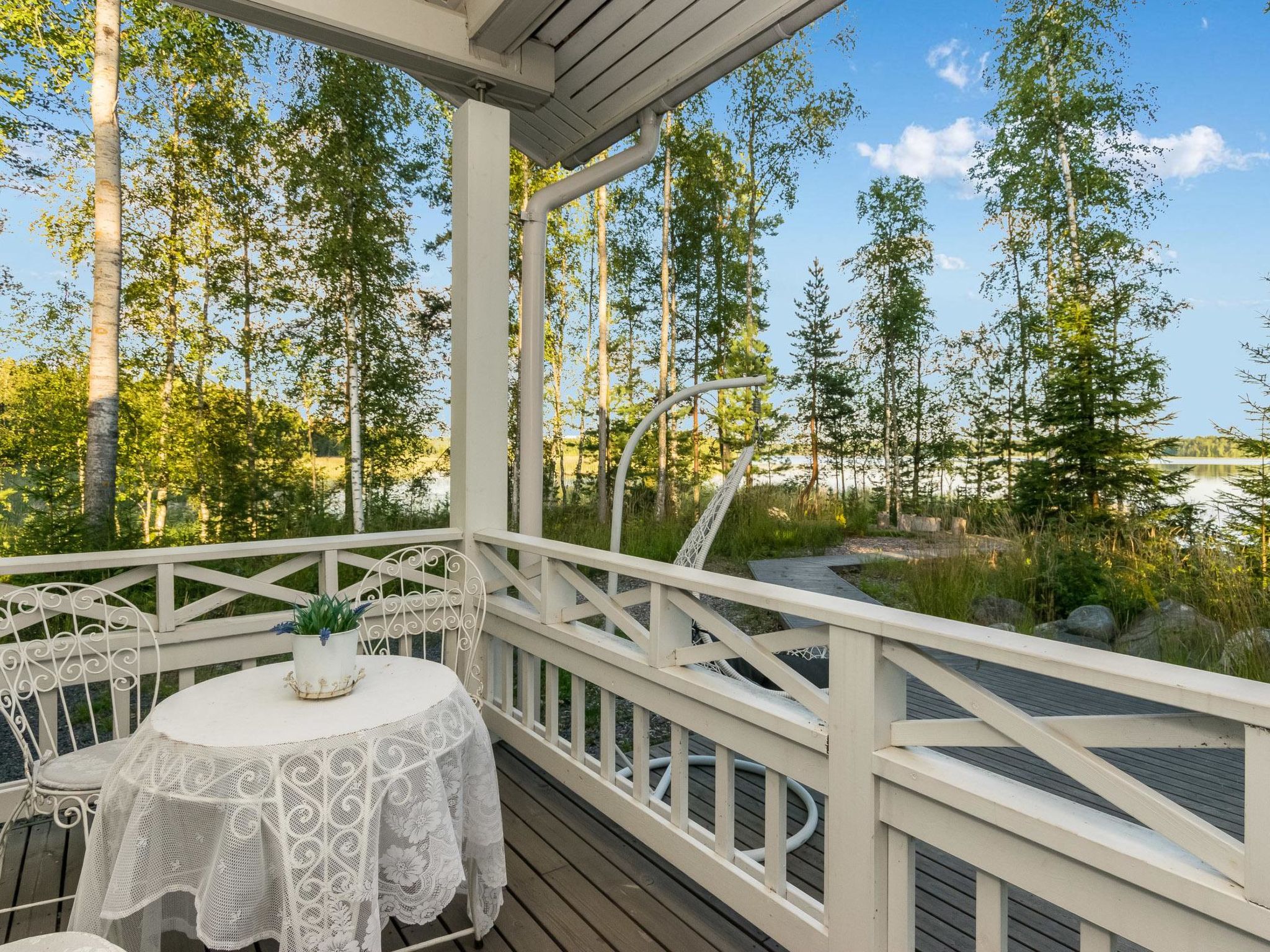 Maximal 1 Haustier/Hund erlaubt. 61 km östlich von Savonlinna, See Saimaa/Puruvesi 25 m, harter und leicht vertiefter Sandboden, Pier und Ruderboot. Blockhaus, Baujahr 2014, Küche, Wohnzimmer, Schlafzimmer (10 m²) mit Doppelbett, weiteres Schlafzimmer (10 m²) mit zwei Betten, Ankleideraum, Waschraum, Sauna (elektrischer Saunaofen), separates WC, überdachte Veranda und große Terrasse. Zwei Betten im flachen Dachboden. Beim Vermieter kann Internetzugang, 2 Fatbikes, 2 SUP-Boards, Außenbordmotoren (sowohl Benzin- als auch Elektrobetrieb) und Aluminiumboot mit Außenbordmotor (40 PS) gemietet werden. Haapaniemi ist ein Miethaus auf einem großen Grundstück. Ruhige Lage mitten in der Natur, Entfernung zum nächsten Nachbarn 400 m. Kesälahti 22 km, Punkaharju 28 km, Pajarinhovi 38 km, Parikkala 49 km, Kitee 54 km, Savonlinna 61 km, Imatra 112 km, Helsinki 367 km.