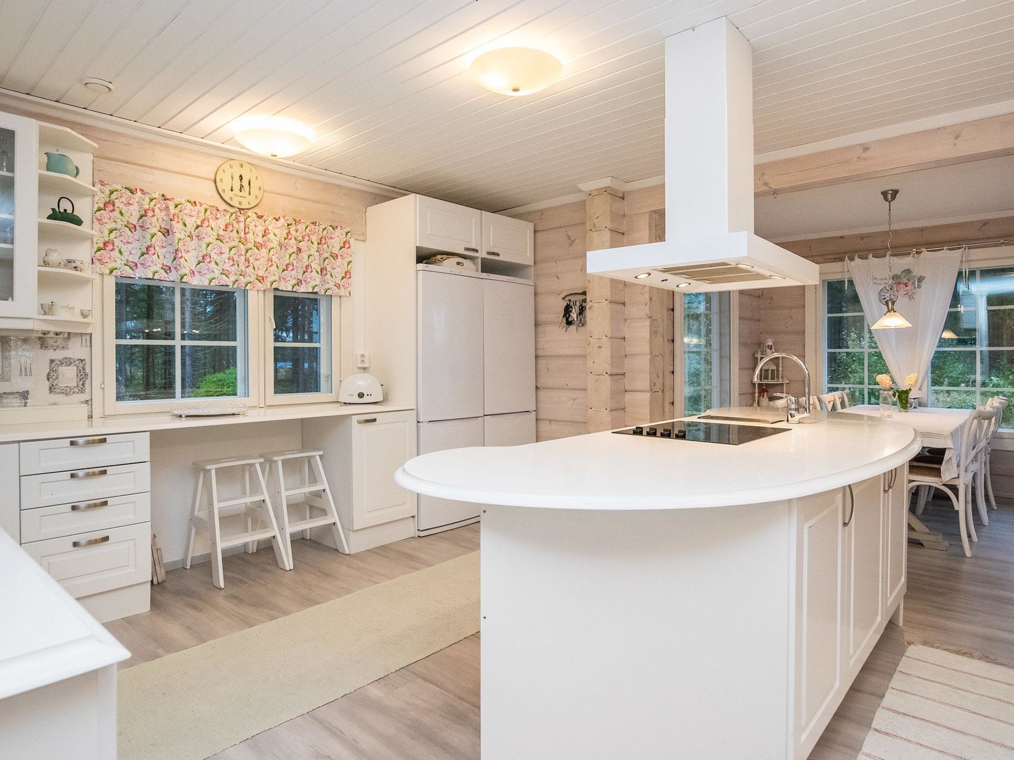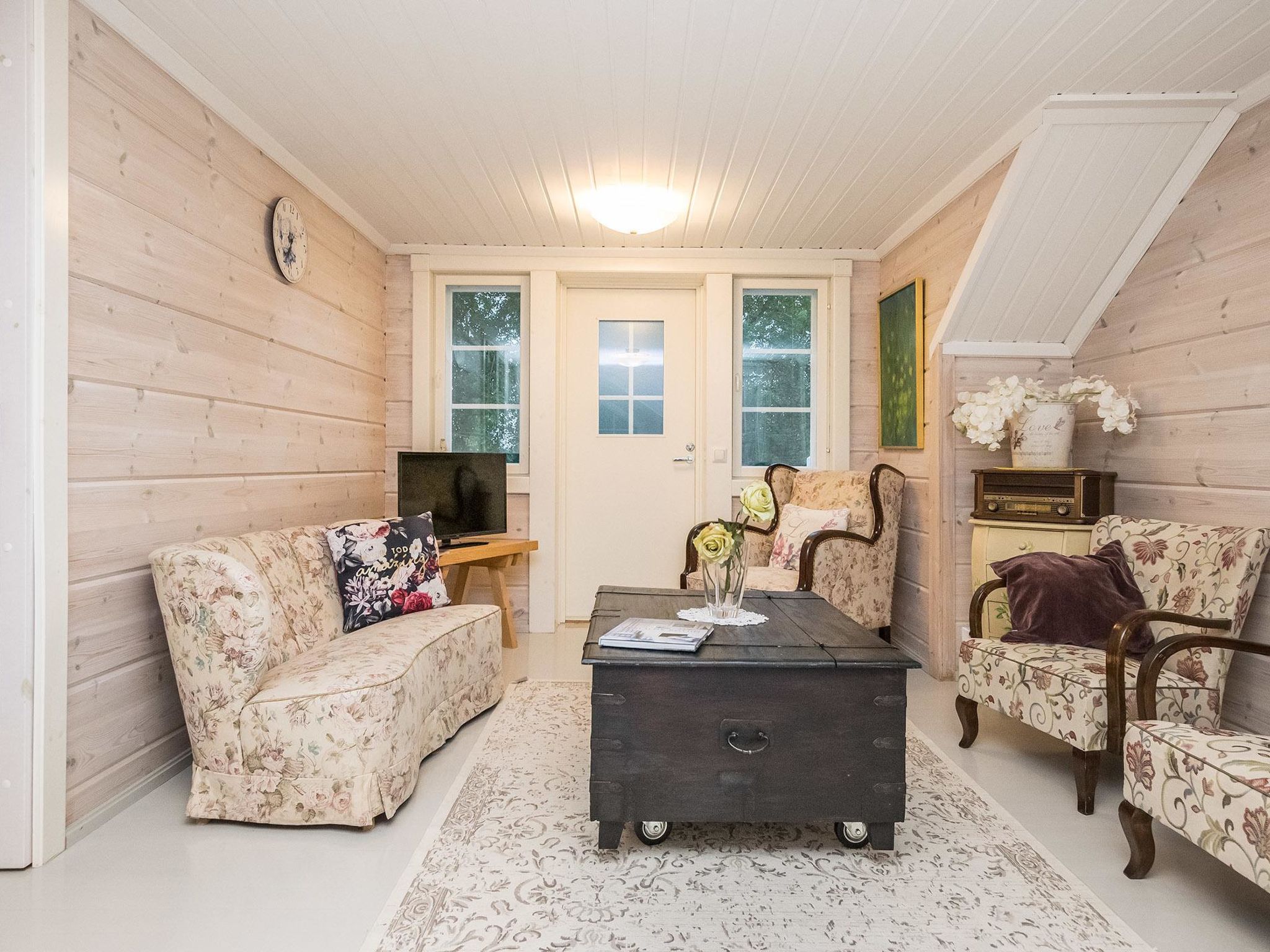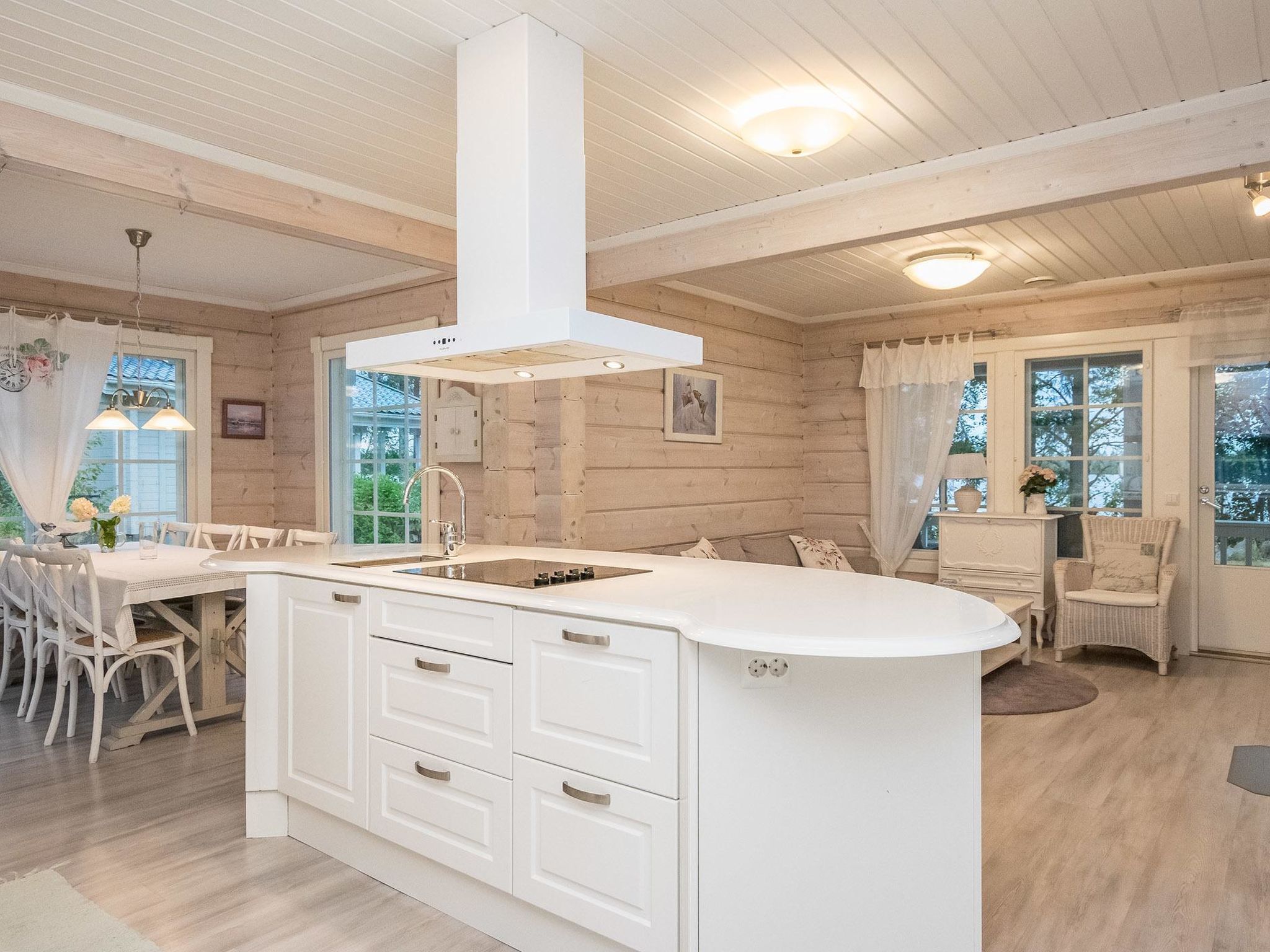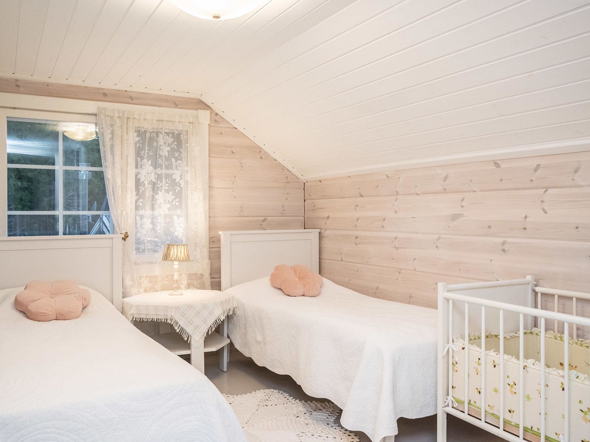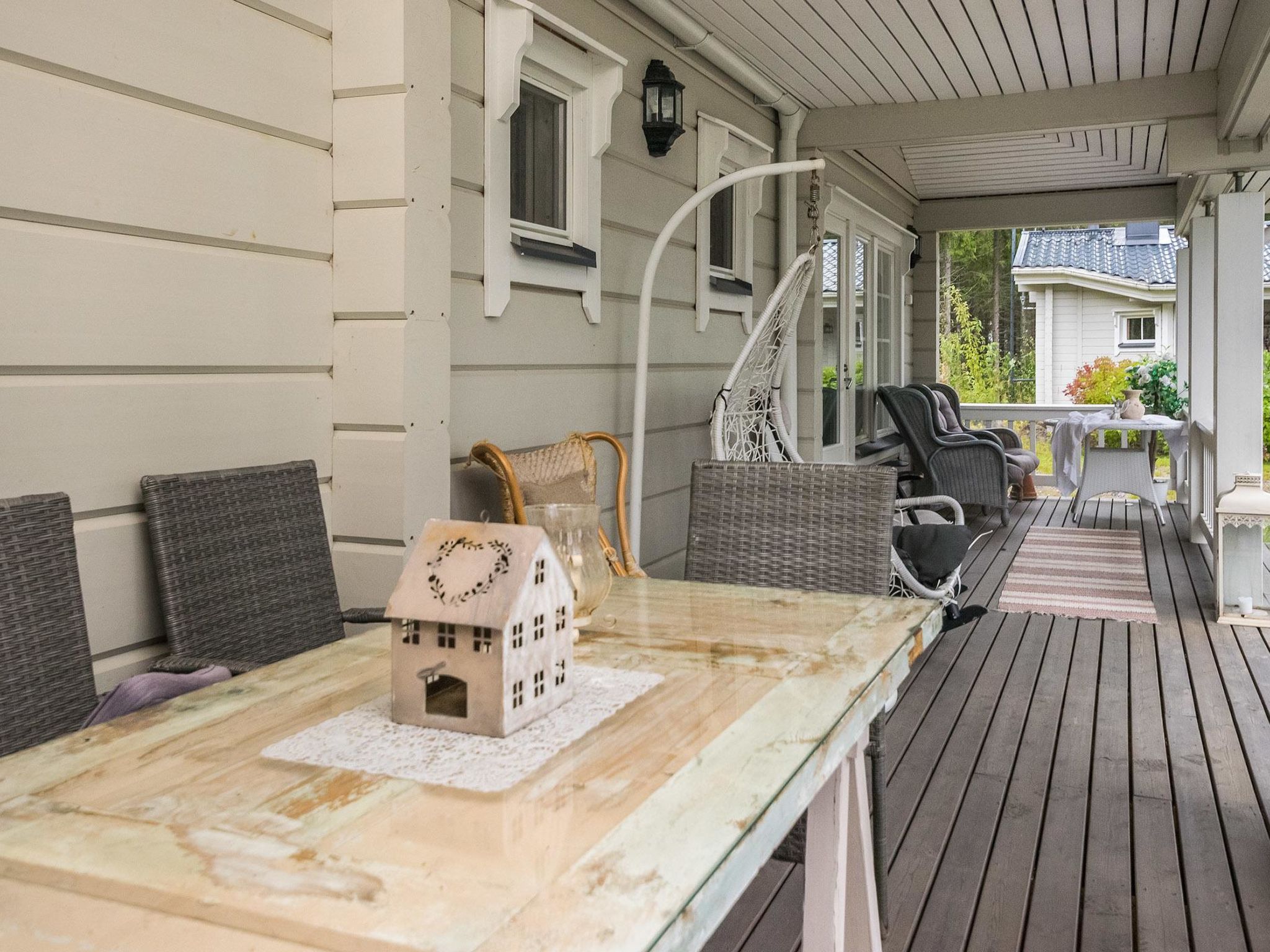 Maximal 1 Haustier/Hund erlaubt. Tyssinniemi ist eine große und stilvoll eingerichtete Mietvilla, die sich gut als Urlaubsziel für mehrere Familien eignet. Großzügiges und ruhiges Grundstück, kein Sichtkontakt zum nächsten Nachbarn, Entfernung ca. 500 Meter. 62 km östlich von Savonlinna, See Saimaa/Puruvesi 15 m, harter und sich stetig vertiefender Sand-/Kiesgrund, Pier und Ruderboot. Blockhaus, Baujahr 2015, Wohnküche, Schlafzimmer (10 m²) mit Doppelbett, Ankleideraum, Waschraum, Sauna (elektrischer Saunaofen), WC, überdachte Terrasse. Im Obergeschoss Schlafzimmer (10 m²) mit 1 Doppelbett und 1 Kinderbett, Schlafzimmer (10 m²) mit 2 Betten, Schlafzimmer (15 m²) mit 1 Doppelbett und 1 Kinderbett, Flur, WC, Balkon. Seesauna mit Holzsaunaofen, Dusche, WC, Kochnische in Verbindung mit Wohnraum, Terrasse. Beim Vermieter kann Internetzugang, 2 Fatbikes, 2 SUP-Boards, Außenbordmotoren (sowohl Benzin- als auch Elektrobetrieb) und Aluminiumboot mit 40 PS Außenbordmotor gemietet werden. Sie können auch mobiles Sprudelbad (Sprudelbad auf dem Anhänger) beim Eigentümer gemietet werden. Unter insgesamt fünf Häusern kann ein Sprudelbad gemietet werden. Tyssinniemi ist eine hochwertige Mietvilla, auf einem großen Grundstück. Ruhige Lage mitten in der Natur. Derselbe Vermieter hat mehrere Miethäuser in der Umgebung, 15025 Torniniemi, 15026 Haapaniemi, 15500 Tyssinniemi, 15501 Kiviniemi und 15502 Honkaniemi. Kesälahti 23 km, Punkaharju 29 km, Pajarinhovi 39 km, Parikkala 50 km, Kitee 55 km, Savonlinna 62 km, Imatra 113 km, Helsinki 368 km.