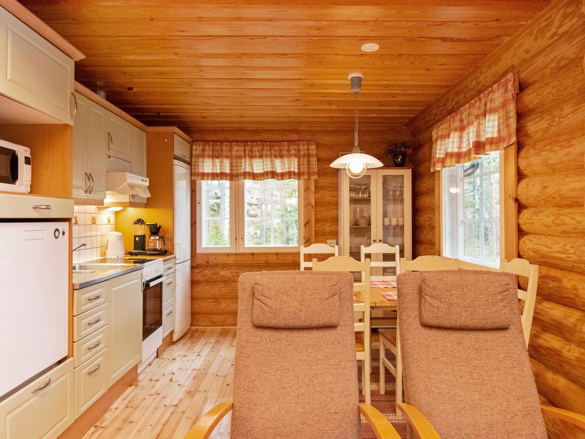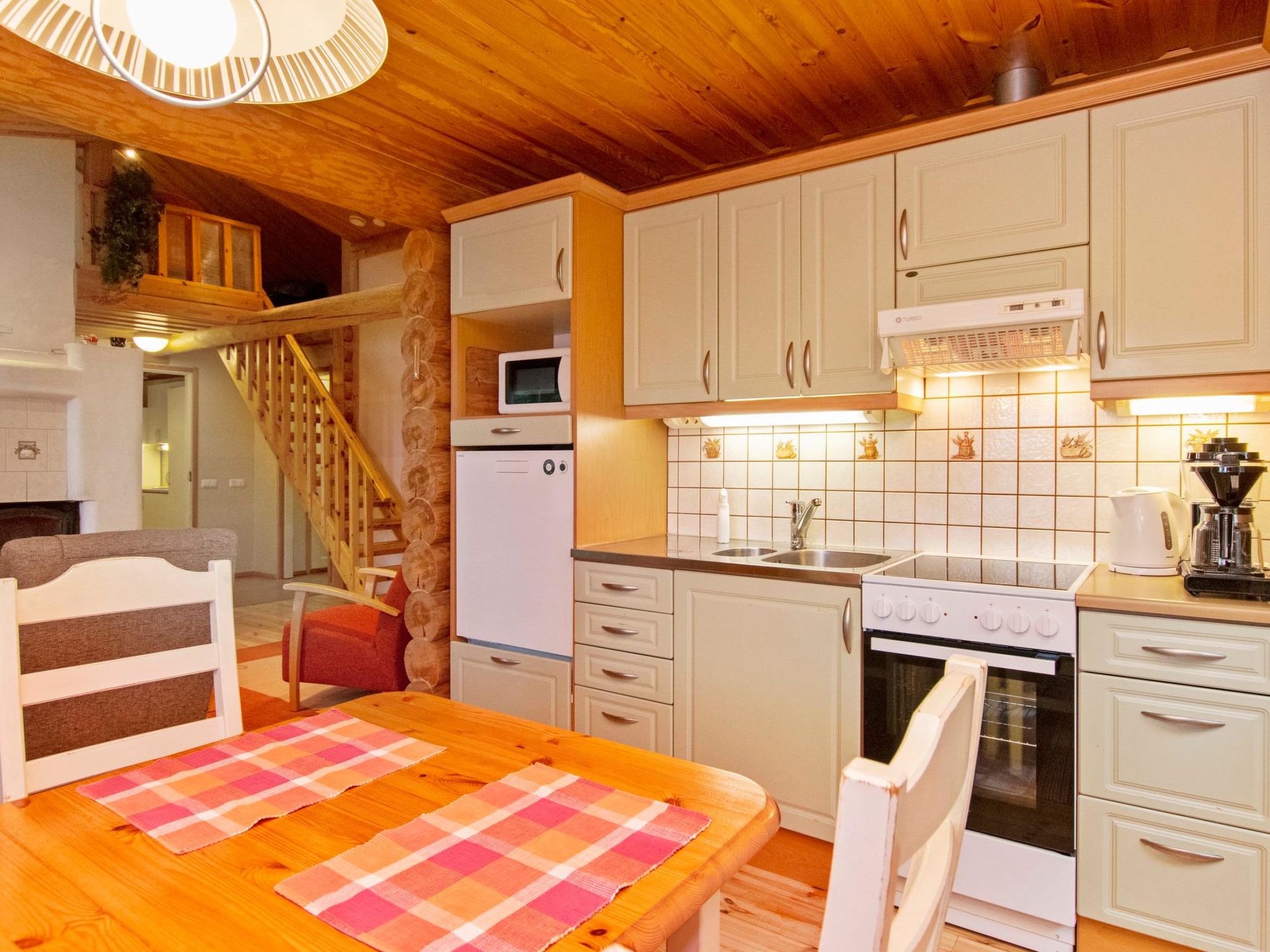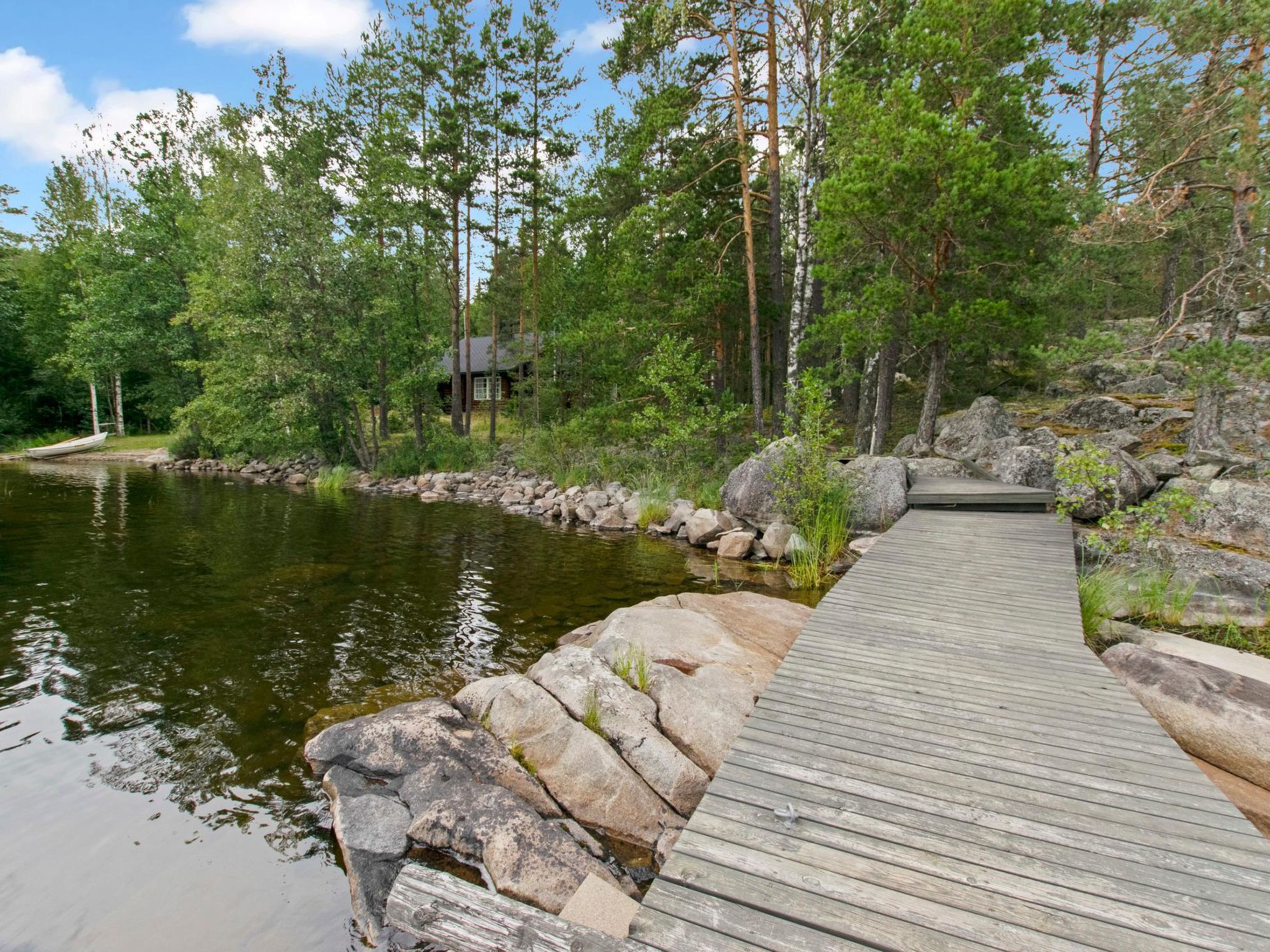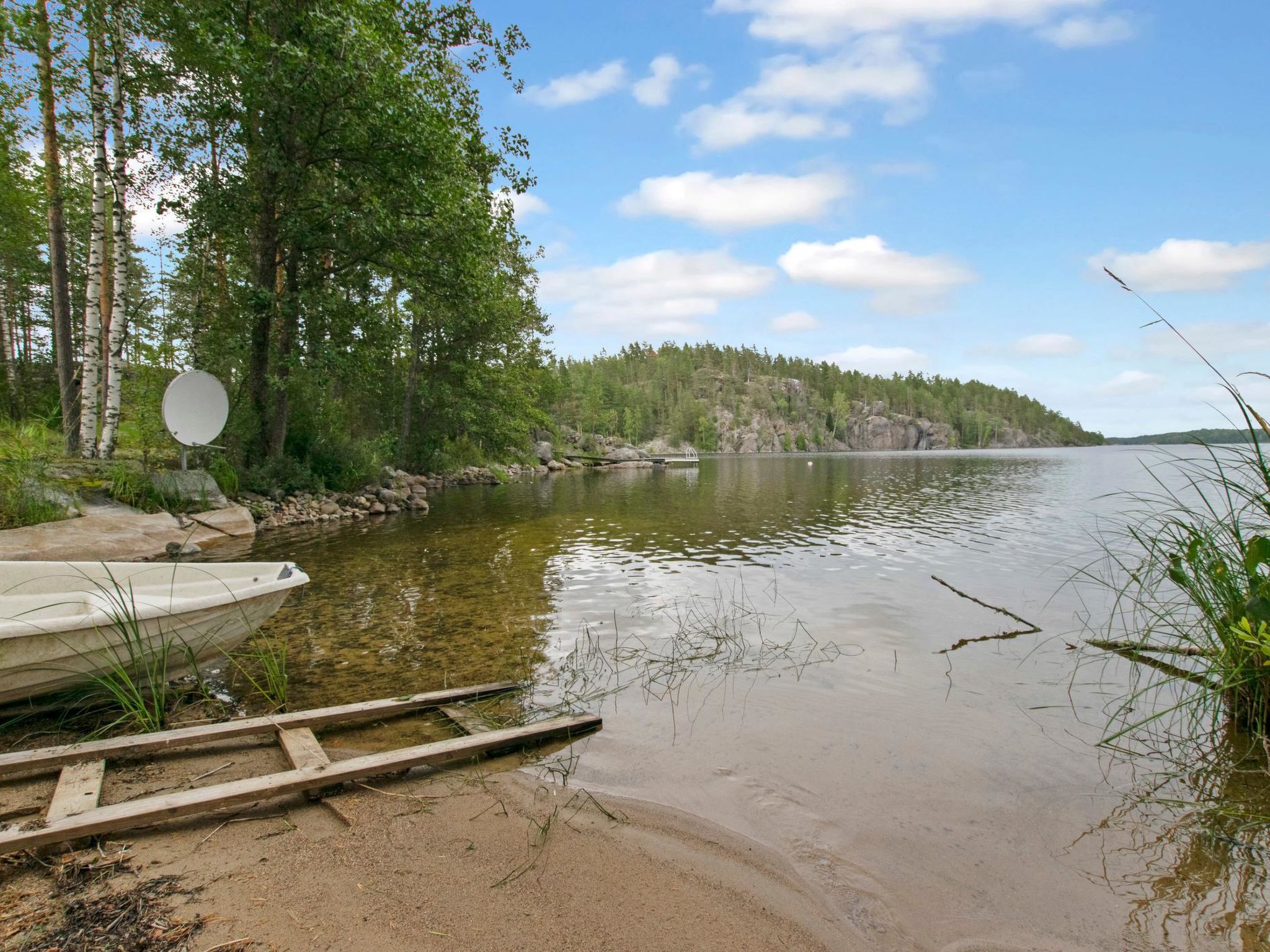 Maximal 1 Haustier/Hund erlaubt. Ulappa ist ein hochwertiges Miethaus, für einen komfortablen Urlaub. Das Zielobjekt ist gut für Familien mit Kindern oder Paare geeignet. 54 km südöstlich von Mikkeli, See Saimaa/Ruokovesi 15 m, harter und sanft sich vertiefender Sandboden, Pier und Ruderboot. Rundblockhaus, Baujahr 2002, Küche, Wohnzimmer, zwei Schlafzimmer mit je 2 Betten, Hauswirtschaftsraum, Waschraum, Sauna-Holzofen, separates WC. Zwei Betten im Obergeschoss. Überdachte Terrasse 28 m². Die Gesamtfläche der Kabine beträgt 112 m², davon im Erdgeschoss 85 m² und im Obergeschoss 27 m². 4G Wi-Fi, Luftwärmepumpe. Im Hof gibt es Grillplatz und Kugelgrill. Ulappa ist eine ruhiges Miethaus, kein Sichtkontakt zum Nachbarn. Der Vermieter hat einen Außenbordmotor zu vermieten. Felsmalereien Astuvansalmi 18 km, Sommerrestaurant Kallioniemi 19 km, Strand Pistohiekka 27 km, Ristiina 35 km, Restaurant Sahanlahti 36 km, Puumala 44 km, Mikkeli 54 km, Imatra 111 km, Helsinki 260 km.