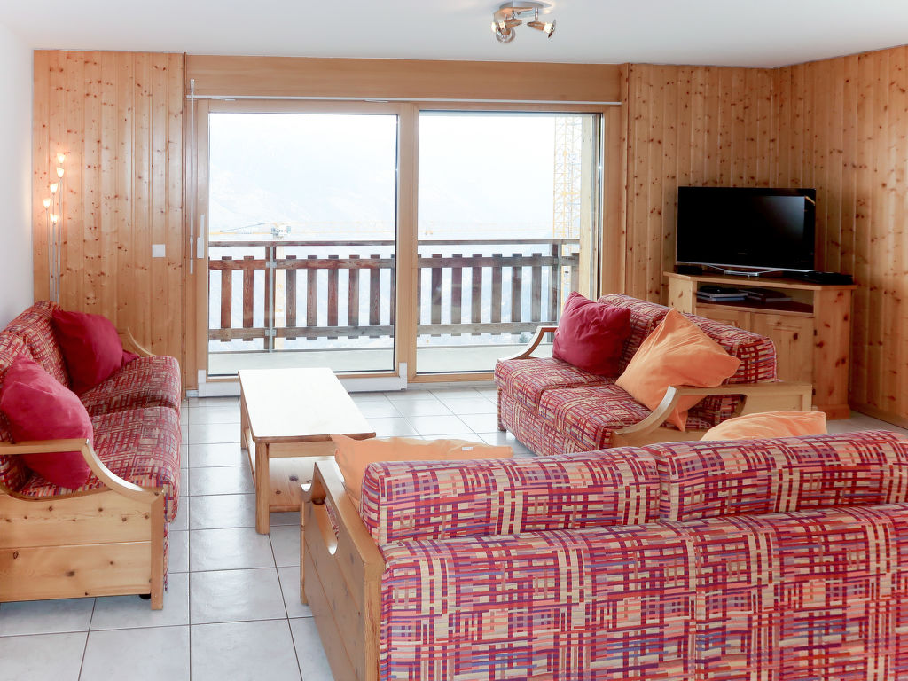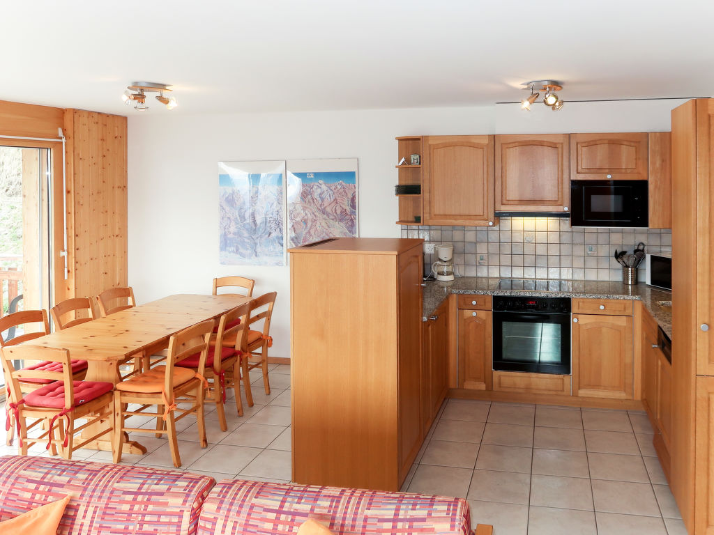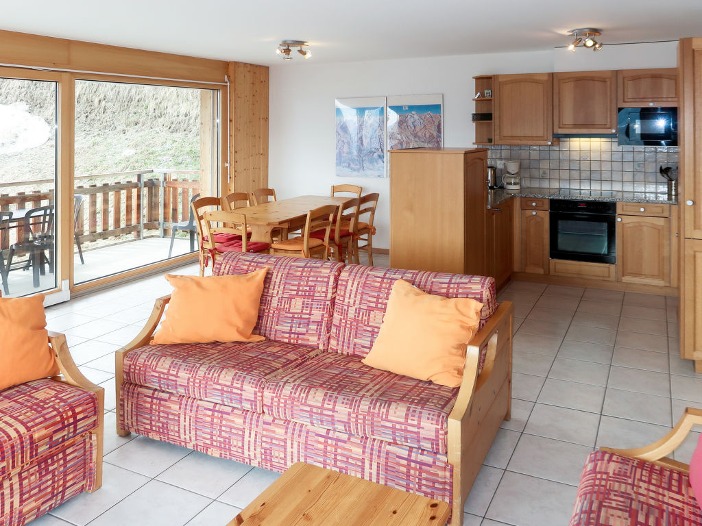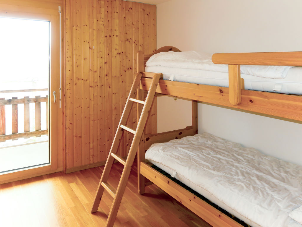 "Les Cîmes 3", 4-Zimmer-Wohnung 85 m2 im 3. Stock. Komfortabel und geschmackvoll eingerichtet: Wohn-/Schlafzimmer mit 1 Doppeldiwanbett, Esstisch, Sat-TV und Internationale TV-Sender. Ausgang zum Balkon. 1 Zimmer mit 2 Betten (90 cm, Länge 200 cm). Ausgang zum Balkon. 1 Zimmer mit 1 x 2 Etagenbetten (80 cm, Länge 200 cm). Ausgang zum Balkon. 1 Zimmer mit 1 Doppelbett (160 cm, Länge 200 cm). Ausgang zum Balkon. Offene Küche (Backofen, Geschirrspüler, 4 Glaskeramikherd Platten, Mikrowelle, elektrische Kaffeemaschine, Fondue Set (Käse)). Bad/WC, Dusche/WC, Whirlbadewanne. Parkettböden. Balkon 50 m2. Balkonmöbel. Panoramasicht. Zur Verfügung: Internet (Wireless LAN, gratis). Bitte beachten: Nichtraucher-Unterkunft. Maximal 1 Haustier/Hund erlaubt.