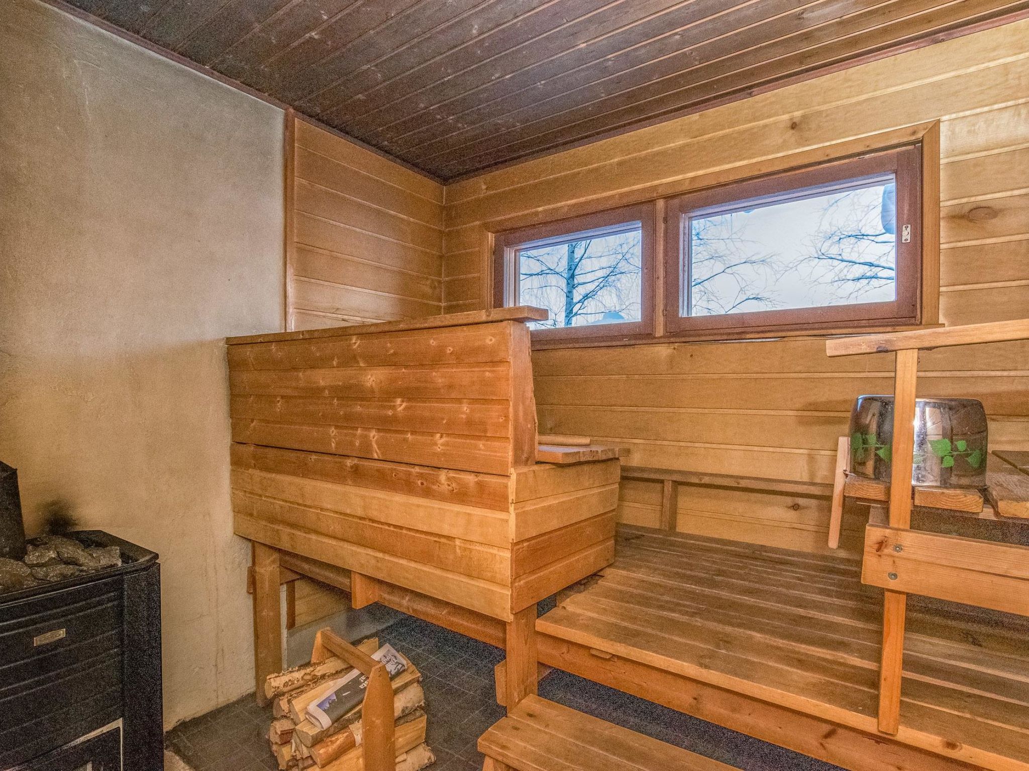 60 km nördlich von Savonlinna, See Kaitajärvi (Länge 9 km, Breite 0.5 km), harter und sich allmählich vertiefender, geschliffener Lehmboden, Anlegestelle, eigenes Boot. Blockferienhaus, Baujahr 1990, Wohnküche mit 2 Zusatzbetten, 2 Schlafzimmer mit je 2 Betten, Sauna (Holzofen), Waschraum mit Dusche und WC, Ankleideraum, Terrasse. Überdachter Grill. Holzschuppen/Abstellraum. W-LAN. Iltarusko ist ideal für Angler, der See hat klares Wasser und gute Fischbestände. Hoffläche geschliffen und etwas Gras und Fichtenwald vorhanden. Das Ferienhaus verfügt über eine "malerische Sauna" mit Bänken in Richtung vom See, 10 m vom Ufer entfernt. Dieser Eigentümer hat auch andere Miethäuser (4739, 4740, 4741 ja 4742). Der Kinderspielbereich (der von allen Miethäusern gemeinsam genutzt wird) verfügt über Sandkasten, Kinderschaukel, Spielhaus, Badmintonnetz, Tischtennis, Basketballkorb, Volleyballnetz und Sandbereich, Entfernung 200 m. Der Eigentümer vermietet Whirlpool, Schneemobil, Qaud (ATV), Schneeschuhe, Ski, Schlittschuhe im Safari-Stil, Fahrräder, 2-5 PS Aussenbordmotor, Babybett. Der Eigentümer vermietet auch mobilen Whirlpool. Für Wochenendbuchungen beträgt die Miete EURO 100, wenn der Kunde die Wanne selbt erwärmt, EURO 150, wenn sie vom Eigentümer vorgewärmt wird. Zahlung vor Ort, in bar. Längere Miet-/Zahlungszeiten müssen mit dem Eigentümer vereinbart werden. Der Whirlpool muss rechtzeitig gebucht werden. Skigebiet Lekotti und Seilbahnpark 5 km, Savonranta 7 km, natürlicher Angelplatz Vuokalanvirta 7 km, Bootsanlegestelle nach Saimaa 7 km, Orivirra-Brücken 8 km, Kanuverleih 9 km, Kolovesi-Nationalpark 15 km, Kermankoski 36 km, Kerimäki (die grösste Holzkirche der Welt) 40 km, Heinävesi (Klöster Valamo und Lintula) 45 km, Punkaharju, Kesämaa, Lusto, Retretti 55 km, Olavinlinna 60 km, Joensuu 87 km, Imatra 154 km, Helsinki 394 km.