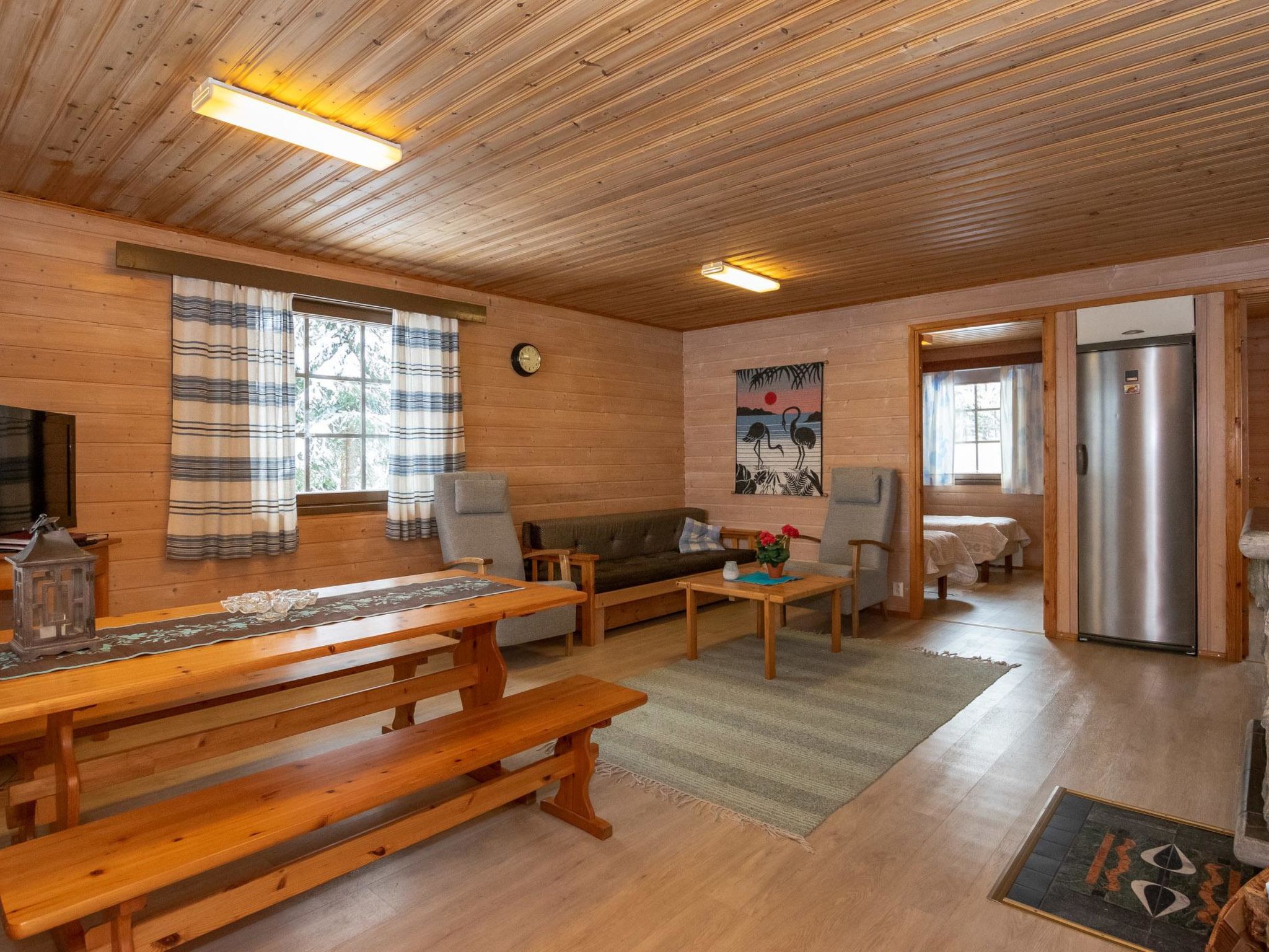 60 km nördlich von Savonlinna, See Kaitajärvi (Länge 9 km, Breite 0.5 km), harter und langsam vertiefender, sandiger Lehmboden, Anlegestelle und eigenes Boot. Holz-Ferienhaus, Baujahr 1988, teilweise renoviert 2006, Wohnküche, ausziehbares Doppelbett, Schlafzimmer (8 m²) mit 2 Betten, Schlafzimmer (8 m²) mit 2 Betten, Sauna (Holzofen), Waschraum mit Dusche und WC, Ankleideraum mit Trockenschrank, Terrasse. Holzschuppen. Überdachter Grill. W-LAN. Satellitenkanäle (HOTBIRTH freie Kanäle). Aamusarastus ist ideal für Angelfreunde, der See hat klares Wasser und gute Fischbestände, 15 m langer Hang zum Ufer. Hofbereich ist geschliffen, etwas Gras und Fichtenwald gibt es auch. Dieser Eigentümer hat auch andere Miethäuser (4739, 4740, 4741 ja 4742). Der Kinderspielbereich (zur Mitbenutzung mit allen Miethäusern) verfügt über Sandkasten, Schaukel, Spielhaus, Badmintonnetz, Tischtennis, Basketballkorb, Volleyballnetz und Sandbereich. Die Entfernung beträgt 600 m. Der Eigentümer vermietet: Whirlpool, Schneemobil, Quad-Bike (ATV), Schneeschuhe, Skier, Schlittschuhe im Safari-Stil, Fahrräder und Aussenborder (2-5 PS). Babybett und Hochstuhl kostenlos, bei Voranmeldung (bitte, bei der Buchung angeben). Der Eigentümer mietet auch mobilen Whirlpool. Bei Wochenendbuchungen beträgt die Miete € 100, wenn der Kunde selbst die Wanne aufheizt und € 150, wenn sie vom Eigentümer vorgeheizt wird. Bezahlung vor Ort, in bar. Längere Miet-/Zahlungsfristen müssen mit dem Eigentümer vereinbart werden. Der Whirlpool muss im Voraus gebucht werden. Lekotti Skigebiet und Seilpark 5 km, Savonranta 7 km, Vuokalanvirta natürlicher Angelplatz 7 km, Bootsanlegestelle nach Saimaa 7 km, Orivitta Brücken 8 km, Kanuverleih 9 km, Kolovesi Nationalpark 15 km, Kermankoski 36 km, Kerimäki (die grösste Holzkirche der Welt) 40 km, Heinävesi (Valamo und Lintula Klöster) 45 km, Punkaharju, Kesämaa, Lusto, Retretti 55 km, Olavinlinna 60 km, Joensuu 87 km, Imatra 154 km, Helsinki 394 km.