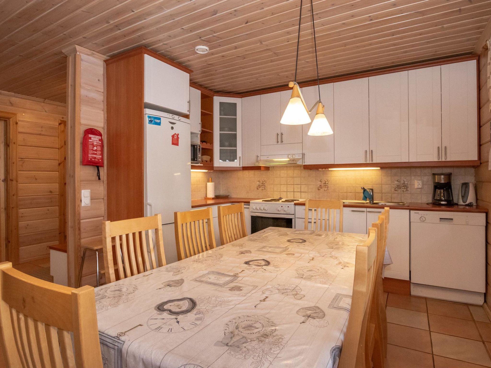 60 km nördlich von Savonlinna, See Kaitajärvi (Länge 9 km, Breite 0.5 km), harter und langsam sich vertiefender, sandiger Lehmboden, Anlegestelle und eigenes Boot. Block-Chalet, Baujahr 2005, Wohnküche mit ausziehbarem Doppelbett für zwei Personen, 3 Schlafzimmer mit je 2 Betten, Sauna (Elektro- und Holzofen), Waschraum mit 2 Duschen, Ankleideraum/Hauswirtschaftsraum mit Waschmaschine und Trockenschrank, 2 separate Toiletten, Diele, grosse Terrasse. Holzschuppen/Abstellraum. WiFi. Die Villa Kontie ist eine hochwertige und geräumige Villa. Mechanische Lüftung und Wärmerückgewinnung, Erdwärme, drahtloses Breitband. Der Hof verfügt über permanenten Specksteingrill, separaten Gasgrill, Sandkasten und Gartenschaukel. Sandplatz, Mischwald. Der See mit klarem Wasser ist ideal für Angler und bietet gute Fischbestände. Der Besitzer hat auch andere Miethäuser (4739, 4740, 4741 und 4742). Der Kinderspielbereich (von allen Miethäusern zur Mitbenutzung) verfügt über Sandkasten, Schaukel, Spielhaus, Badmintonnetz, Tischtennis, Basketballkorb, Volleyballnetz und Sandbereich. Die Entfernung beträgt 800 m. Der Eigentümer vermietet Whirlpool, Schneemobil, Schneeschuhe für Quads (ATV), Skier, Schlittschuhe im Safari-Stil, Fahrräder und Aussenborder (2-5 PS). Babybett und Hochstuhl kostenlos nach Voranmeldung (bitte, bei der Buchung angeben). Der Eigentümer vermietet Whirlpool, Schneemobil, Quad-Bike (ATV), Schneeschuhe, Skier, Schlittschuhe im Safari-Stil, Fahrräder und Aussenborder (2-5 PS). Der Eigentümer vermietet auch mobilen Whirlpool. Bei Wochenendbuchungen beträgt die Miete EURO 100, wenn sich der Kunde um Vorheizen kümmert und EURO 150, wenn der Eigentümer den Whirlpool vorheizt. Bezahlung vor Ort in bar. Längere Miet-/Zahlungsfristen müssen mit dem Vermieter vereinbart werden. Der Whirlpool muss im Voraus gebucht werden. Lekotti Skigebiet und Seilpark 5 km, Savonranta 7 km, Vuokalanvirta natürlicher Angelplatz 7 km, Bootsanlegestelle nach Saimaa 7 km, Orivirra Brücken 8 km, Kanuverleih 9 km, Kolovesi Nationalpark 15 km, Kermankoski 36 km, Kerimäki (die grösste Holzkirche der Welt) 40 km, Heinävesi (Valamo und Lintula Klöster) 45 km, Punkaharju, Kesämaa, Lusto, Retretti 55 km, Olavinlinna 60 km, Joensuu 87 km, Imatra 154 km, Helsinki 394 km.