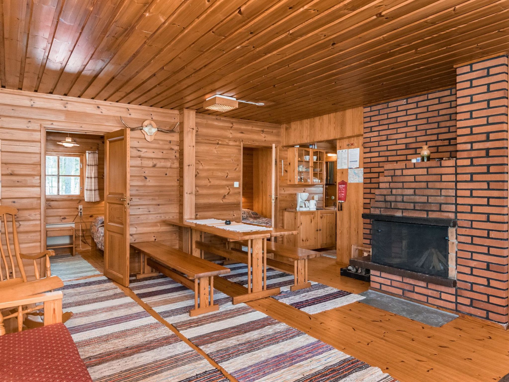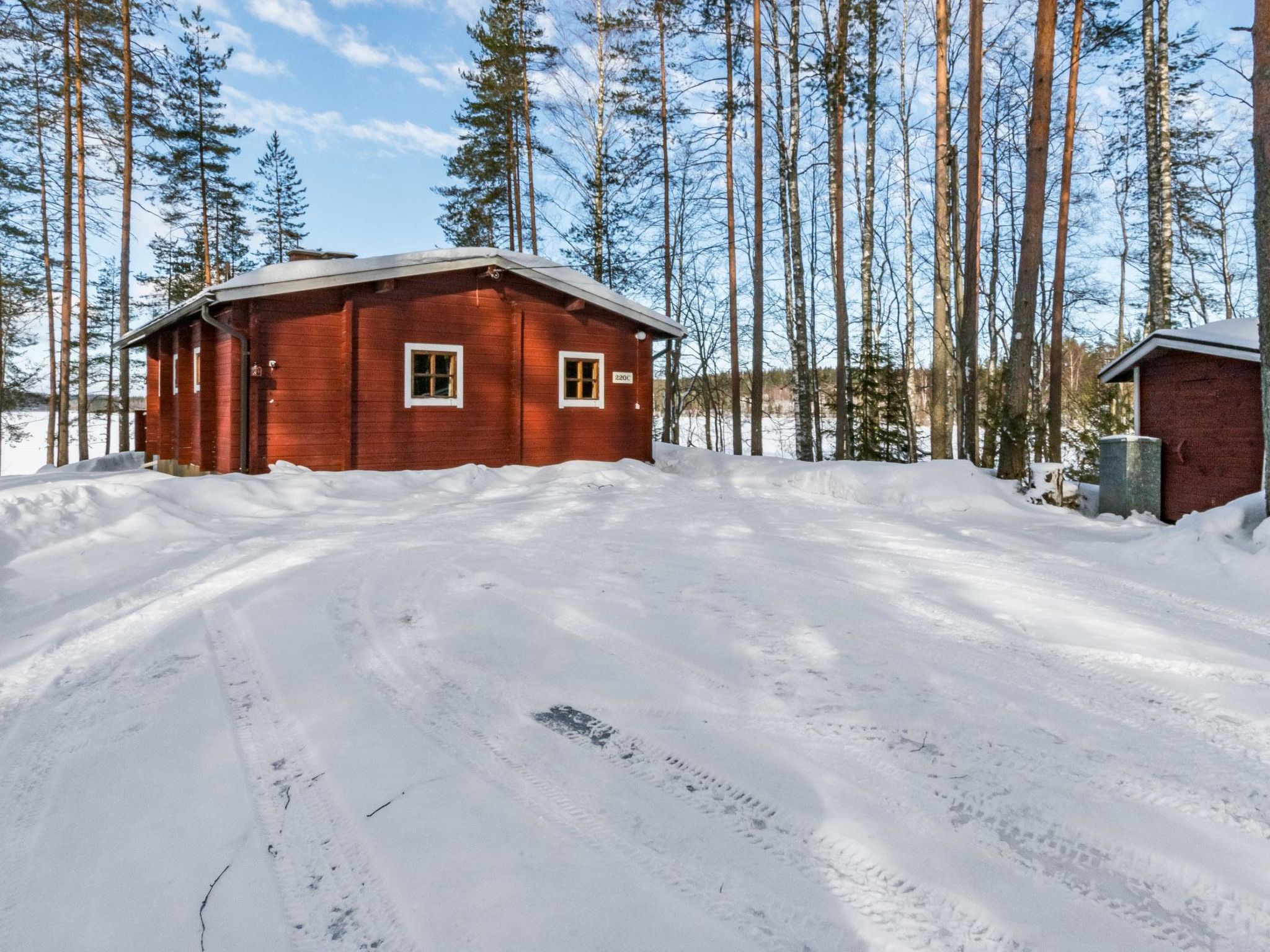 64 km nördlich von Savonlinna. See Ruokojärvi 10 m (Länge 7 km, Breite 1 km), flaches Wasser, Sandboden. Unterstand (2.5 km entfernt) am See Saimaa. Eigenes Boot am See Ruokojärvi. See Saimaa 2.5 km. Am See Saimaa eigenes Ruderboot zum Angeln mit Aussenbordmotor (gegen Aufpreis). Hinweis! Die abgebildeten Motorboote können nicht gemietet oder benutzt werden. Blockhaus, renoviert 1992, Küche, 2 Schlafzimmer mit je 2 Betten, Wohnzimmer mit 2 Zusatzbetten (Couch), Sauna (elektrischer Saunaofen), Ankleidezimmer, offene Veranda. Trinkwasser wird vom Eigentümer gebracht. Internet %3D W-LAN 4G, max. 50 Mbt. Jagdmöglichkeit. LEKOTINMÄKI Skigebiet 8 km. Fahrräder nach separater Anordnung, Krebsenfang. Drahtlose Internetverbindung und Aussenbordmotor zu mieten.