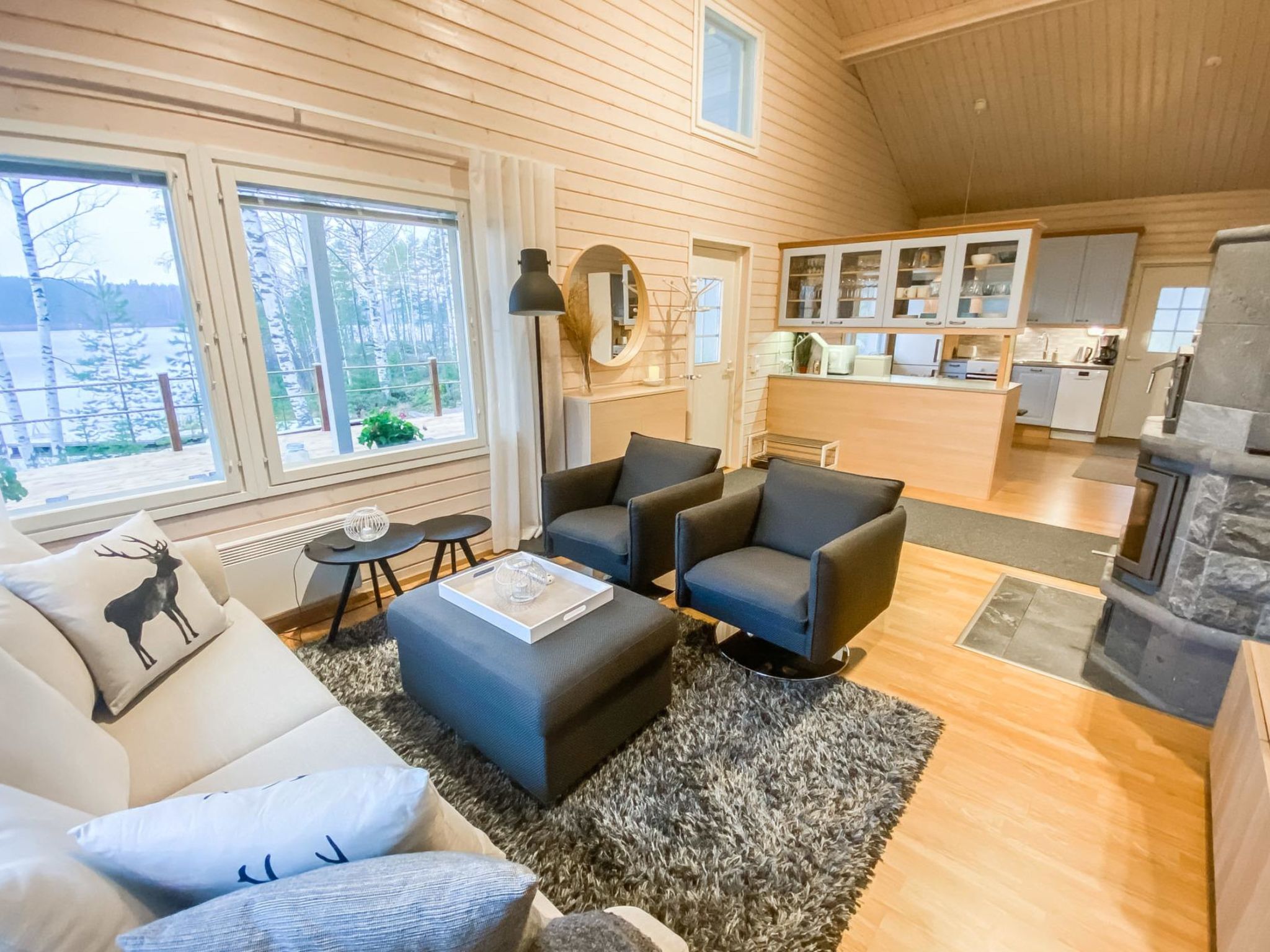 70 km nordöstlich von Savonlinna, Kaita-See 25 m (Länge 9 km, Breite 0.5 km), harter und sich allmächlich vertiefender, sandiger Schlammboden, eigenes Boot. Holzvilla, Baujahr 2014, Wohnküche, Schlafzimmer (7 m²) mit 2 Betten, Schlafzimmer mit 2 Betten, Schlafboden mit 2 Betten, Sauna, Badezimmer mit Dusche und Toilette, Ankleideraum, Terrasse. In der Villa: Luftwärmepumpe, Fussbodenheizung, Backofen. Vom zweiten Schlafzimmer führt eine Treppe zum Schlafboden. Holzschuppen. Gasgrill im Freien. Schöne Villa in ruhiger Lage, am sauberen und fischreichen Kaita-Järvi-See. Die Inneneinrichtung ist angenehm und wurde von einem Innenarchitekten eingerichtet. Geeignet für das ganze Jahr: * im Sommer: der See bietet gute Angelmöglichkeiten. Das Grundstück und der Strand sind nach Nordwesten ausgerichtet (die Sonne scheint ca. 10-22). Boot zur Verfügung (+ nach gesonderter Vereinbarung Aussenbordmotor zu mieten). Lekotti Erlebnispark (ca. 1 km mit dem Boot entfernt). Operngäste fahren nach Savonlinna ca. 70 km. * im Herbst: gutes Pilz-/Beerengelände. * im Winter: Lekotti Skigebiet. Skifahren, gute Angelmöglichkeiten im Winter: Eisangeln (Felchen, Barsch und Hecht), im Sommer (Felchen, Barsch, Hecht und Quappe). Angelkarten im nahe gelegenen Geschäft erhältlich. Entfernungen: Lekotti Skipiste 9 km, Oravi Nationalpark 24 km, Kerimma Golf 36 km, Heinävesi, Valamo und Lintula Klöster 70 km, Savonlinna, Olavinlinna 70 km.