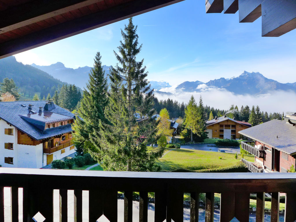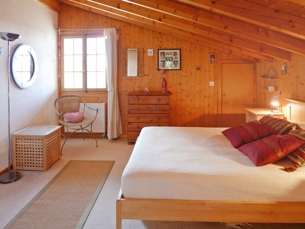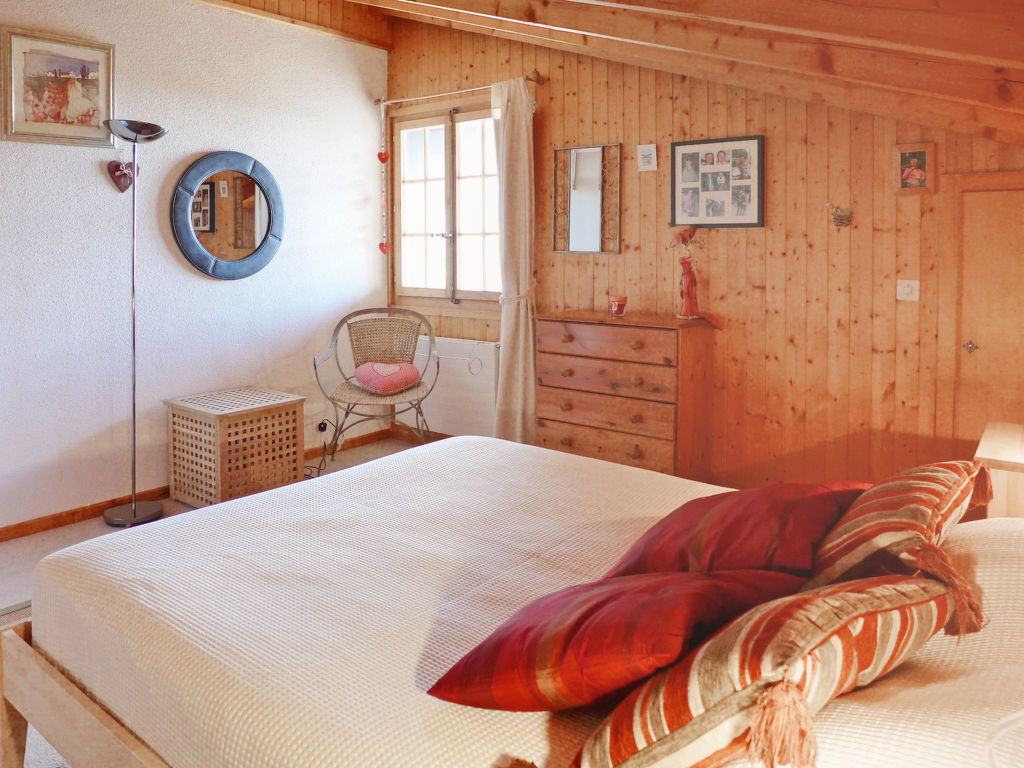"Armorial II / apt 6", 3-Zimmer-Attikawohnung 90 m2 auf 2 Stockwerken im 3. Stock, Südlage. Komfortabel und gemütlich eingerichtet: abgeschrägtes Wohn-/Esszimmer mit offenem Kamin, Esstisch und TV (Flachbildschirm). Ausgang zum Balkon, Richtung Süden. 1 Zimmer mit 2 Betten (90 cm, Länge 200 cm). Offene Küche (4 Kochplatten, Backofen, Geschirrspüler, Tiefkühler). Dusche/WC. Obergeschoss: 1 abgeschrägtes Doppelzimmer mit 1 Doppelbett (160 cm, Länge 200 cm), Bad/WC. Balkon 8 m2, Südlage. Sehr schöne Panoramasicht auf die Berge. Garage Nr. 2.