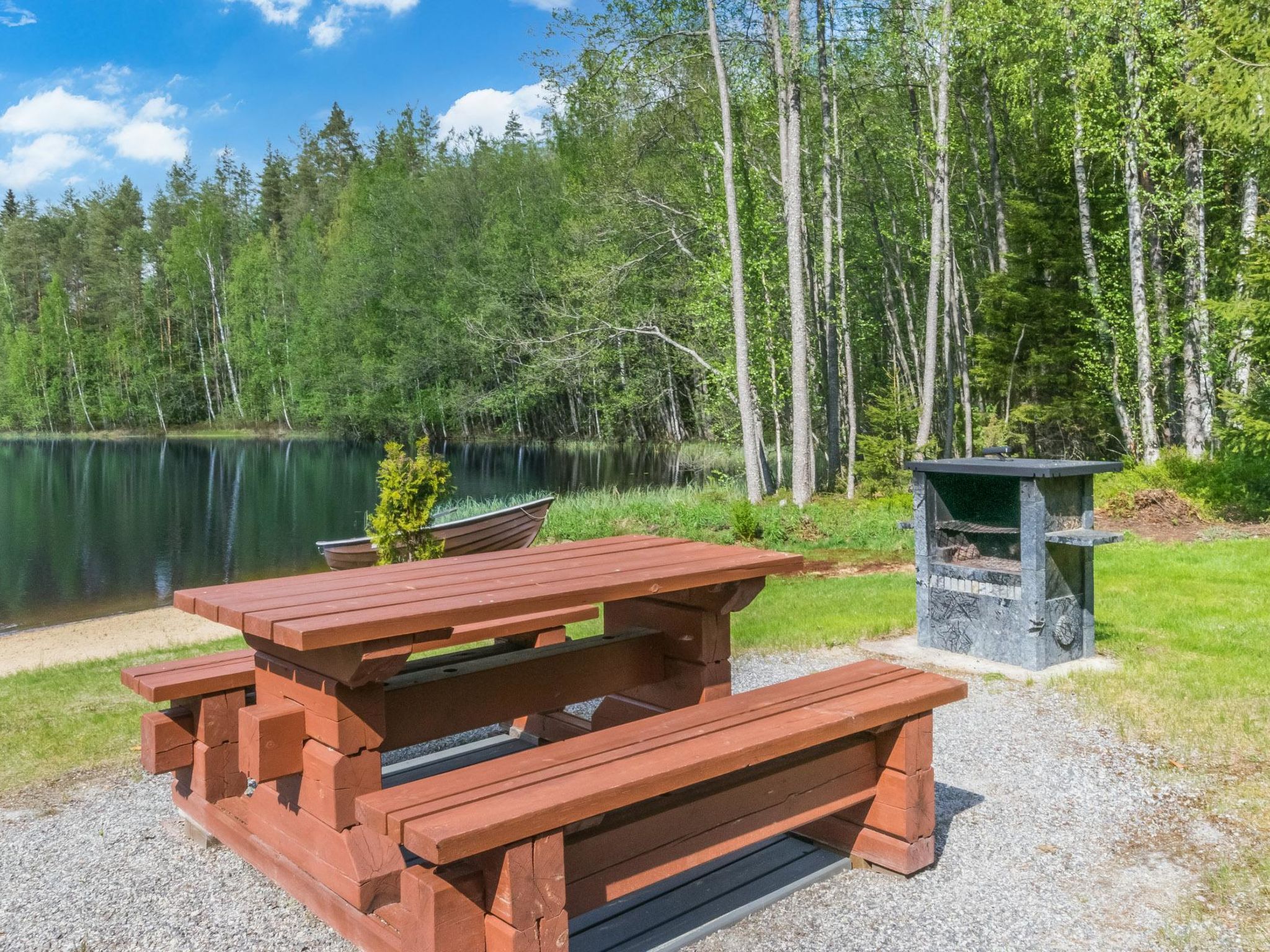 50 km südlich von Savonlinna, See Lauttajärvi 15 m (Länge 1 km, Breite 150 m), flacher und hart geschliffener Boden, eigenes Boot. Blockhaus, Baujahr 2005, Wohnküche mit 2 Zustellbetten, Schlafzimmer mit Doppelbett, Hauswirtschafts-/Umkleideraum, Waschraum, Sauna, offene Veranda. Ferienhaus mit allen Annehmlichkeiten. Grundstück ist eben und grasig, Ufer nach Nordwesten ausgerichtet. Friedlicher Ort, Nachbarn nicht sichtbar. Elektr. Grill. Sulkava 11 km, Savonlinna 50 km.