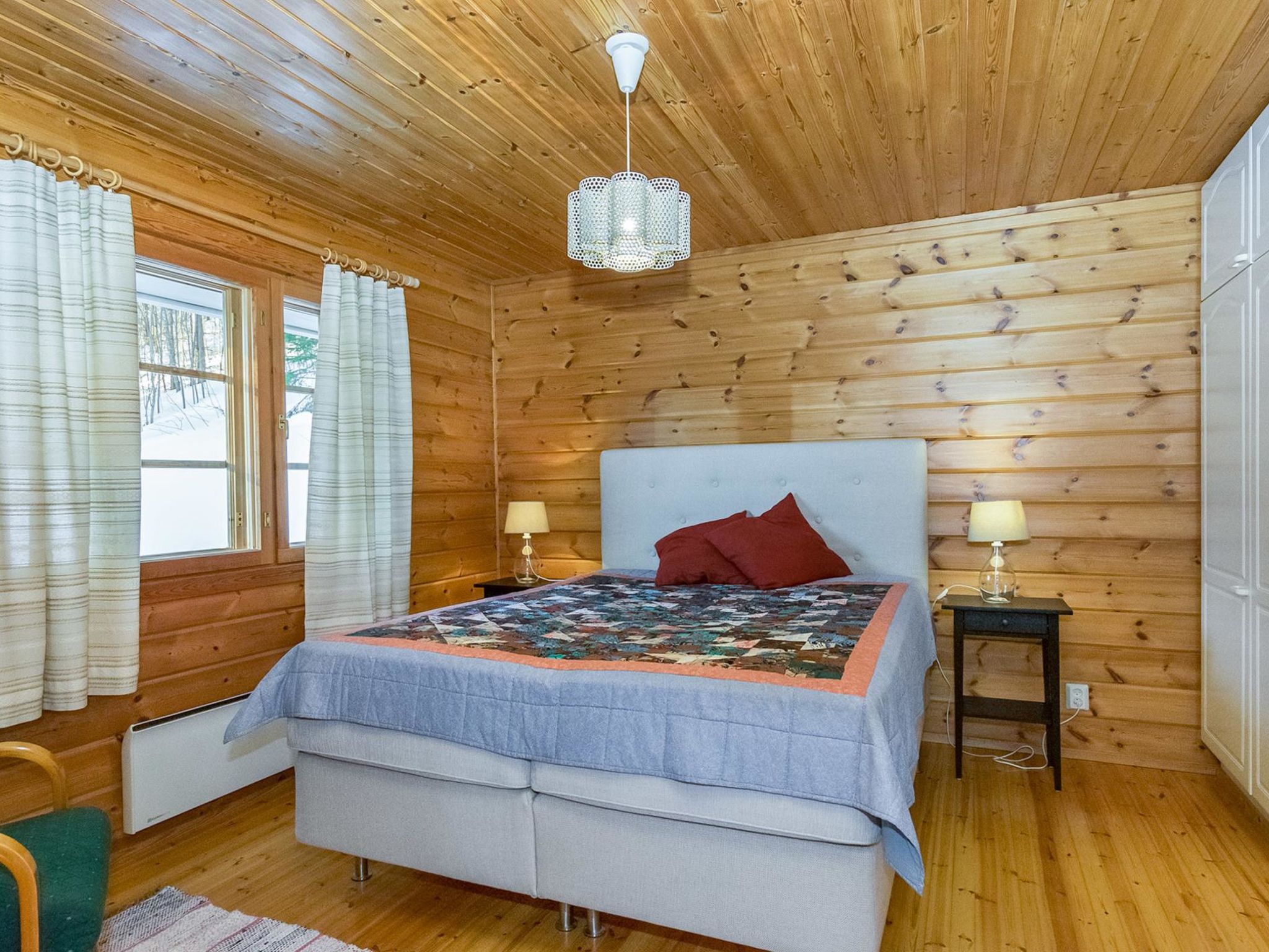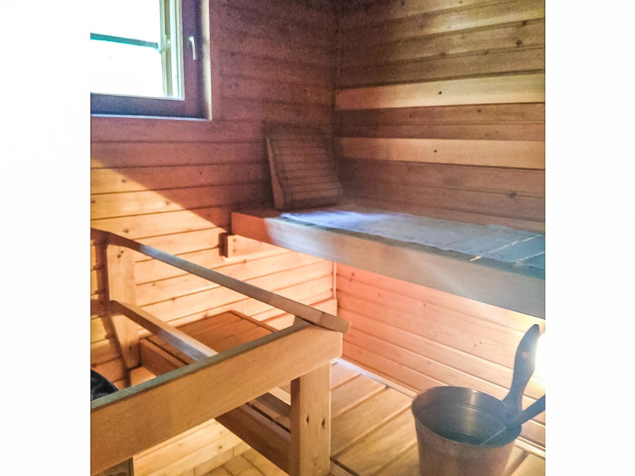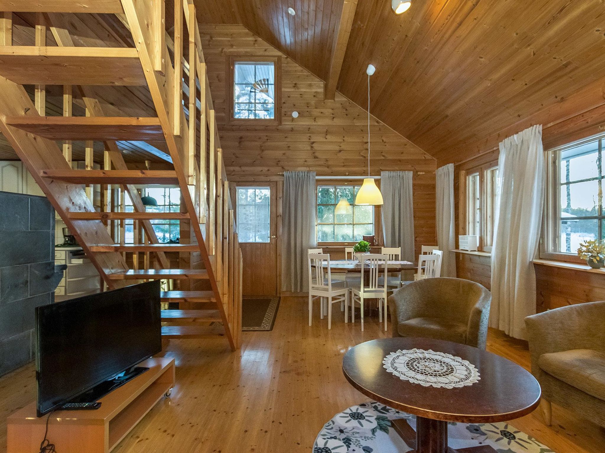 55 km südwestlich von Savonlinna, See Saarivesi 15 m (Länge 1.6 km, Breite 0.4 km), sich sanft vertiefender, harter Lehmboden, Anlegestelle, Ruderboot. Blockhaus, Baujahr 1990, renoviert 2018, Küche, Wohnzimmer, Schlafzimmer (12.5 m²) mit Doppelbett, Ankleideraum, Waschraum, Sauna (elektr. Saunaofen), WC, Lobby und überdachte Veranda. Im Obergeschoss befindet sich Schlafzimmer (11 m²) mit zwei Betten. Auf dem offenen Dachboden kann ein ausziehbares Bett (2 zusätzliche Schlafplätze) verwendet werden, Balkon. Im Sommer steht eine separate Sauna am See zur Verfügung. Es gibt Kaminzimmer und überdachte Veranda in der Sauna. Im Sommer stehen zwei alternative Betten zur Verfügung. Zwei Steckplätze für Autos im Carport. Saarijärvi ist ein ruhiges und geräumiges Mietshaus, das ideal für Familien mit Kindern ist. Auf dem grossen Rasenplatz können viele verschiedene Spiele im Freien gespielt werden. Es gibt auch Platz für Haustiere. Sulkava 15 km, Savonlinna 55 km, Imatra 93 km, Mikkeli 94 km, Helsinki 332 km.