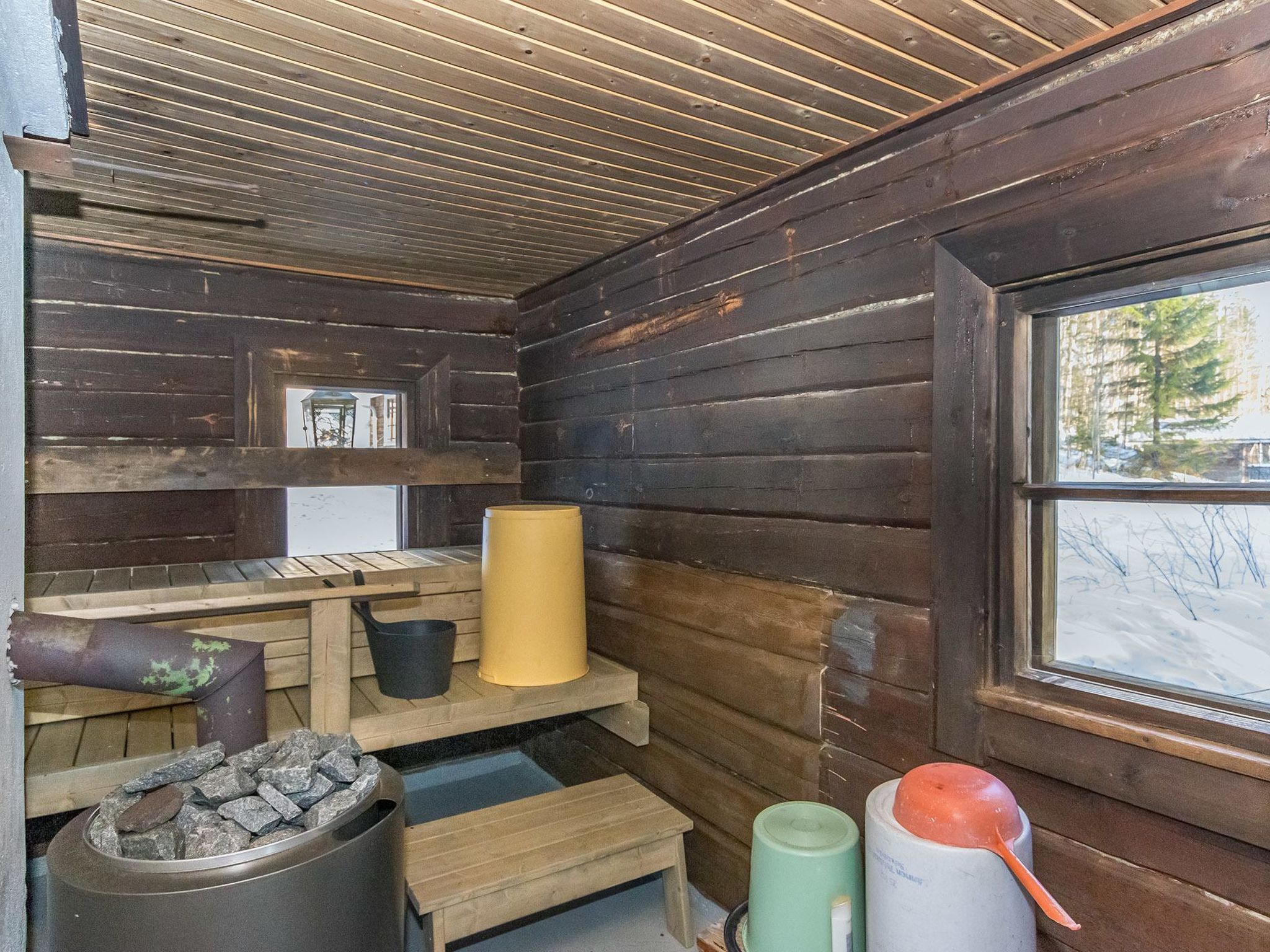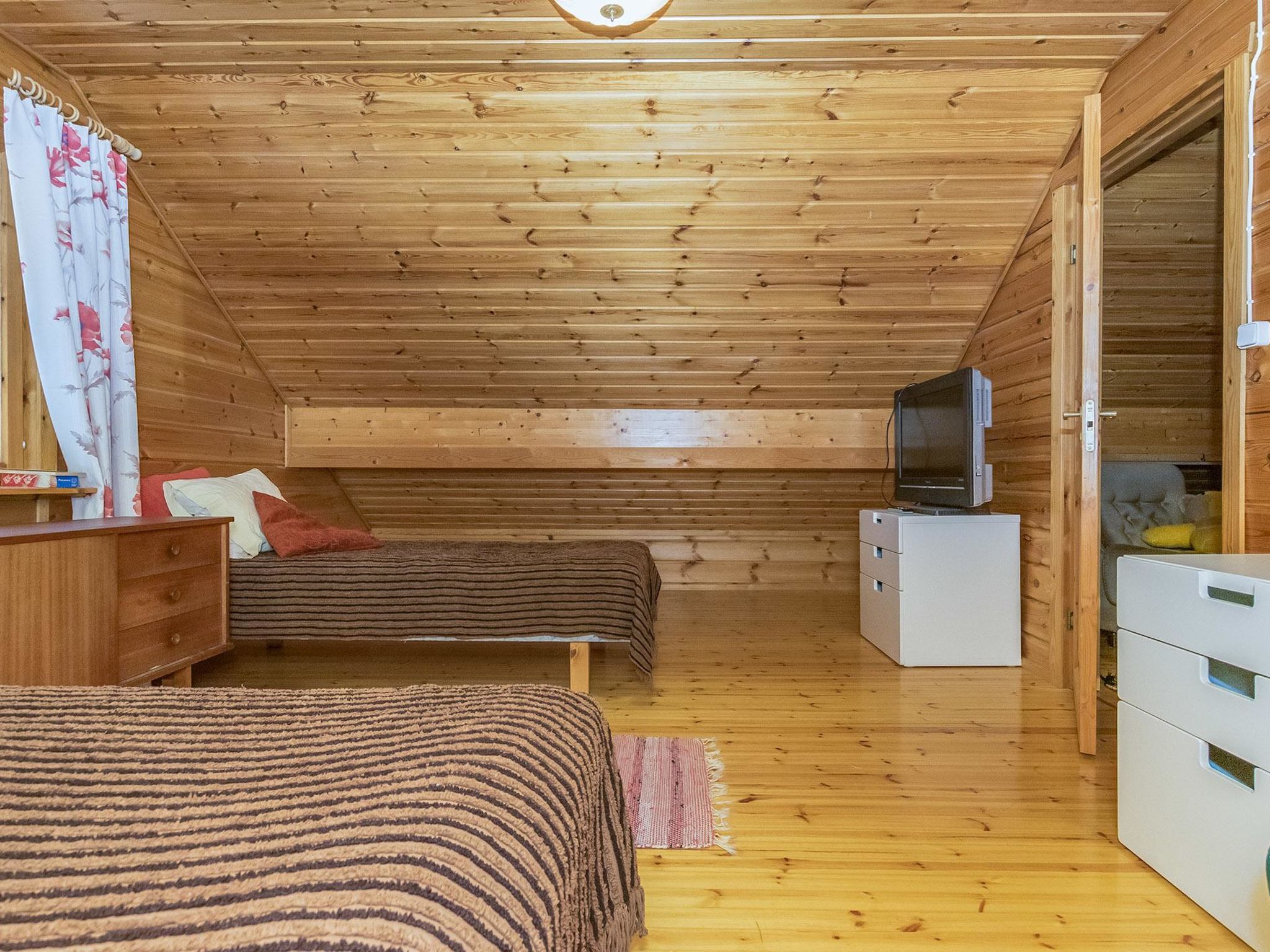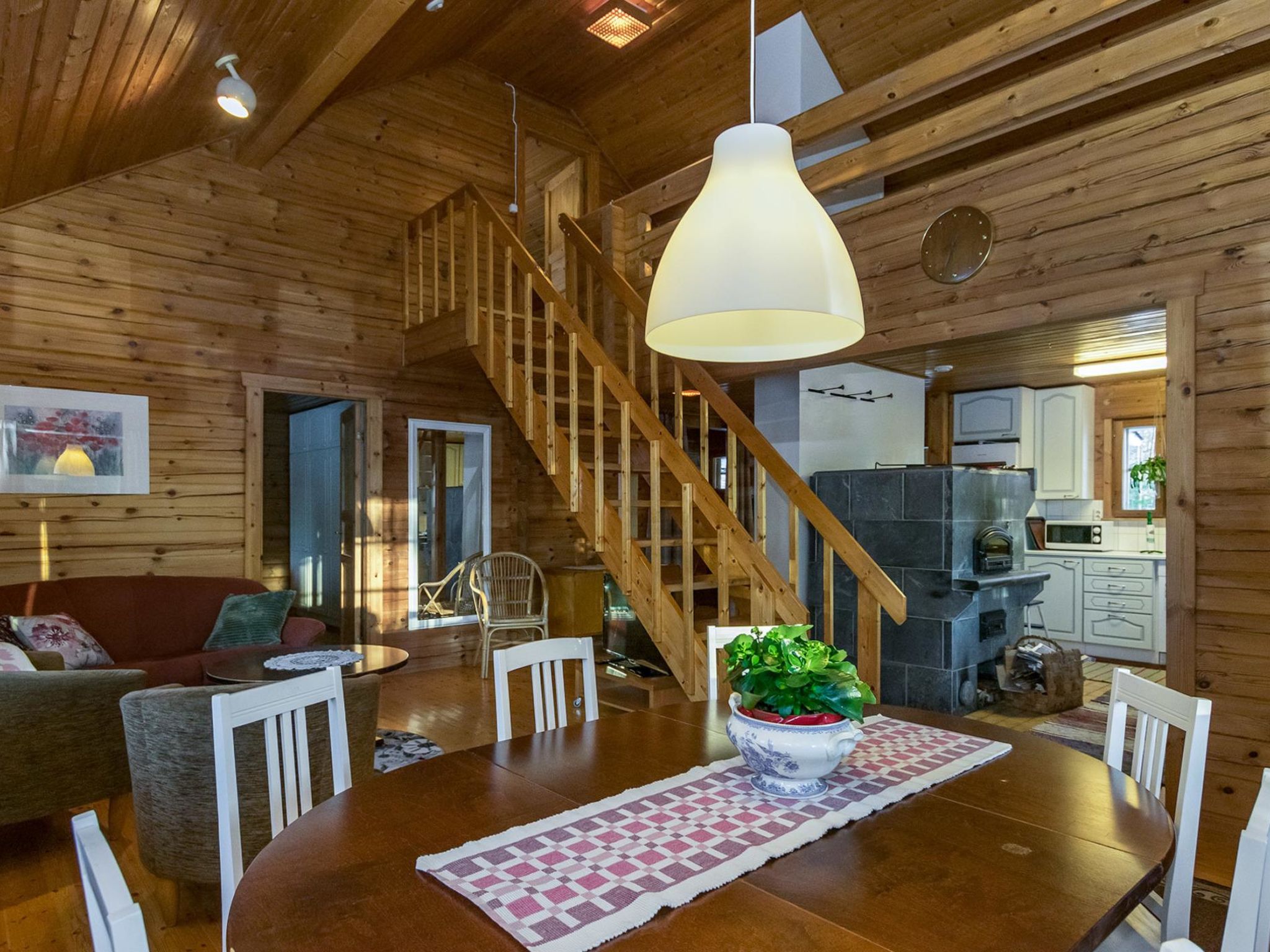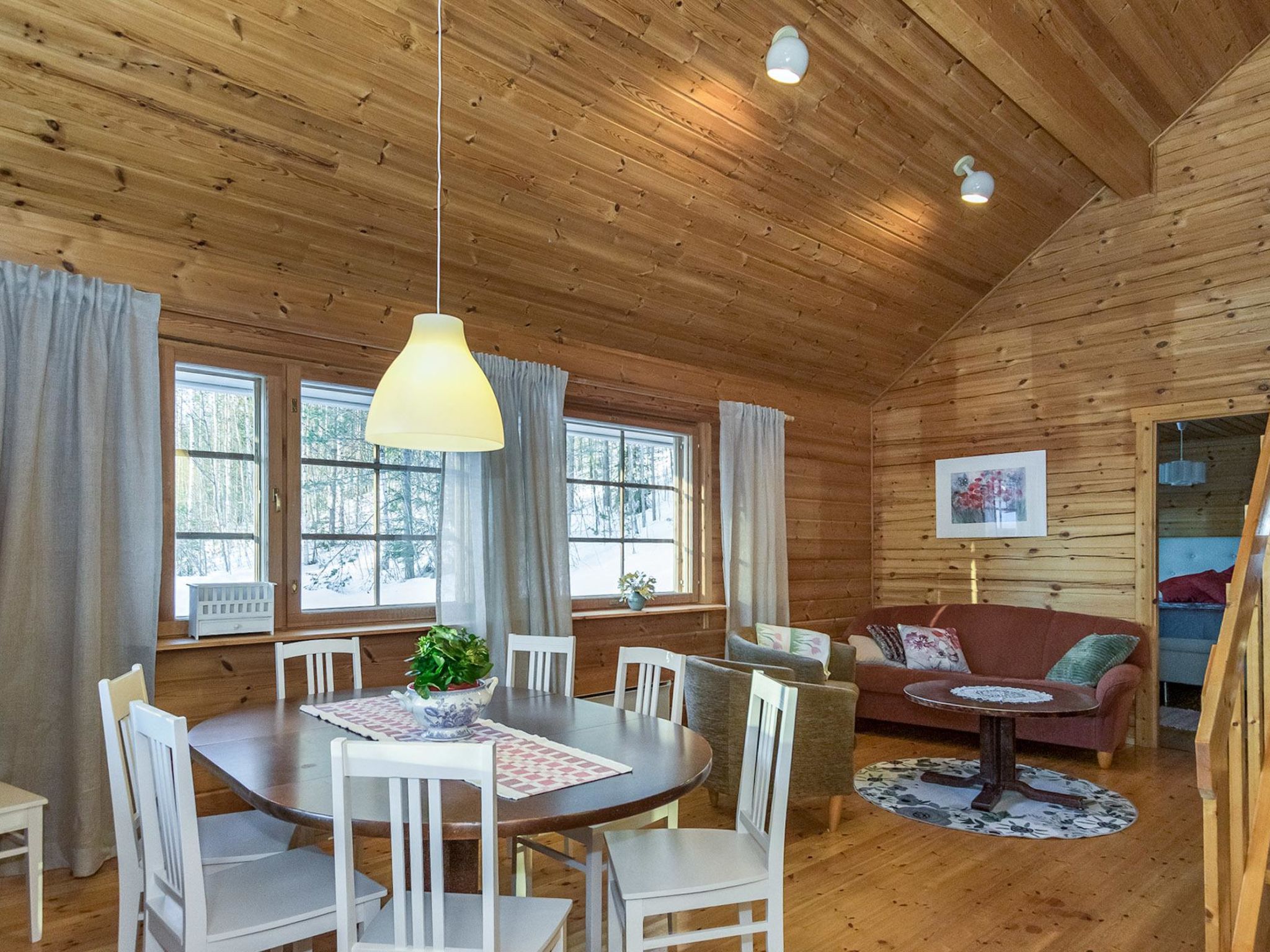 55 km südwestlich von Savonlinna, See Saarivesi 15 m (Länge 1.6 km, Breite 0.4 km), sich sanft vertiefender, harter Lehmboden, Anlegestelle, Ruderboot. Blockhaus, Baujahr 1990, renoviert 2018, Küche, Wohnzimmer, Schlafzimmer (12.5 m²) mit Doppelbett, Ankleideraum, Waschraum, Sauna (elektr. Saunaofen), WC, Lobby und überdachte Veranda. Im Obergeschoss befindet sich Schlafzimmer (11 m²) mit zwei Betten. Auf dem offenen Dachboden kann ein ausziehbares Bett (2 zusätzliche Schlafplätze) verwendet werden, Balkon. Im Sommer steht eine separate Sauna am See zur Verfügung. Es gibt Kaminzimmer und überdachte Veranda in der Sauna. Im Sommer stehen zwei alternative Betten zur Verfügung. Zwei Steckplätze für Autos im Carport. Saarijärvi ist ein ruhiges und geräumiges Mietshaus, das ideal für Familien mit Kindern ist. Auf dem grossen Rasenplatz können viele verschiedene Spiele im Freien gespielt werden. Es gibt auch Platz für Haustiere. Sulkava 15 km, Savonlinna 55 km, Imatra 93 km, Mikkeli 94 km, Helsinki 332 km.