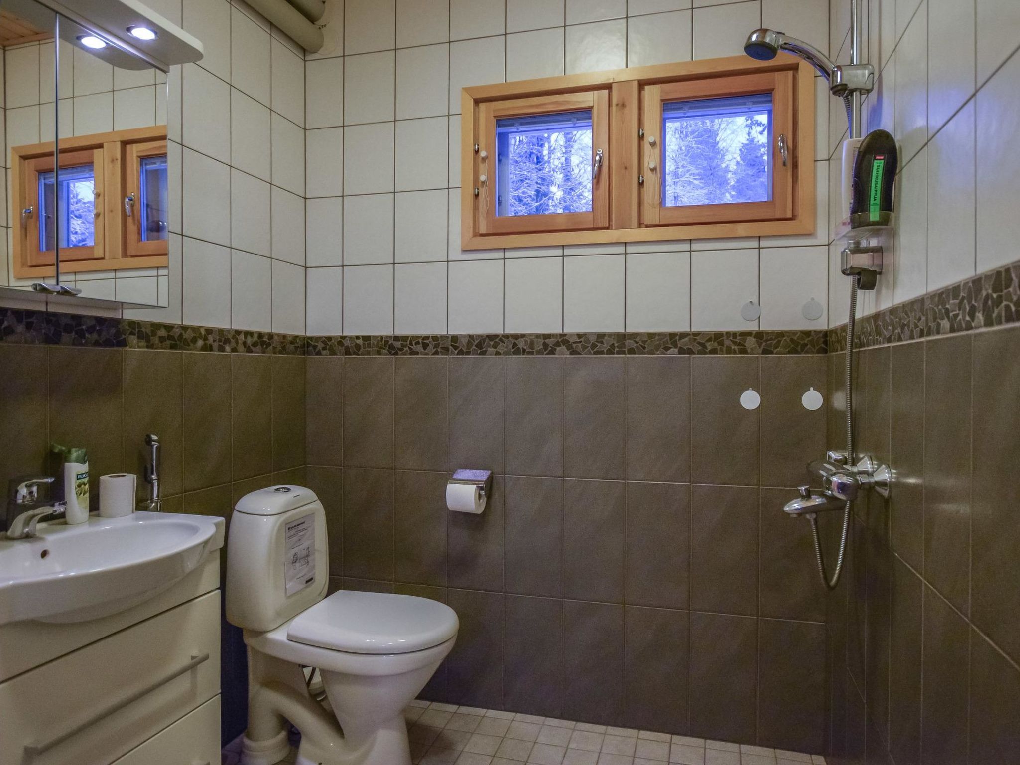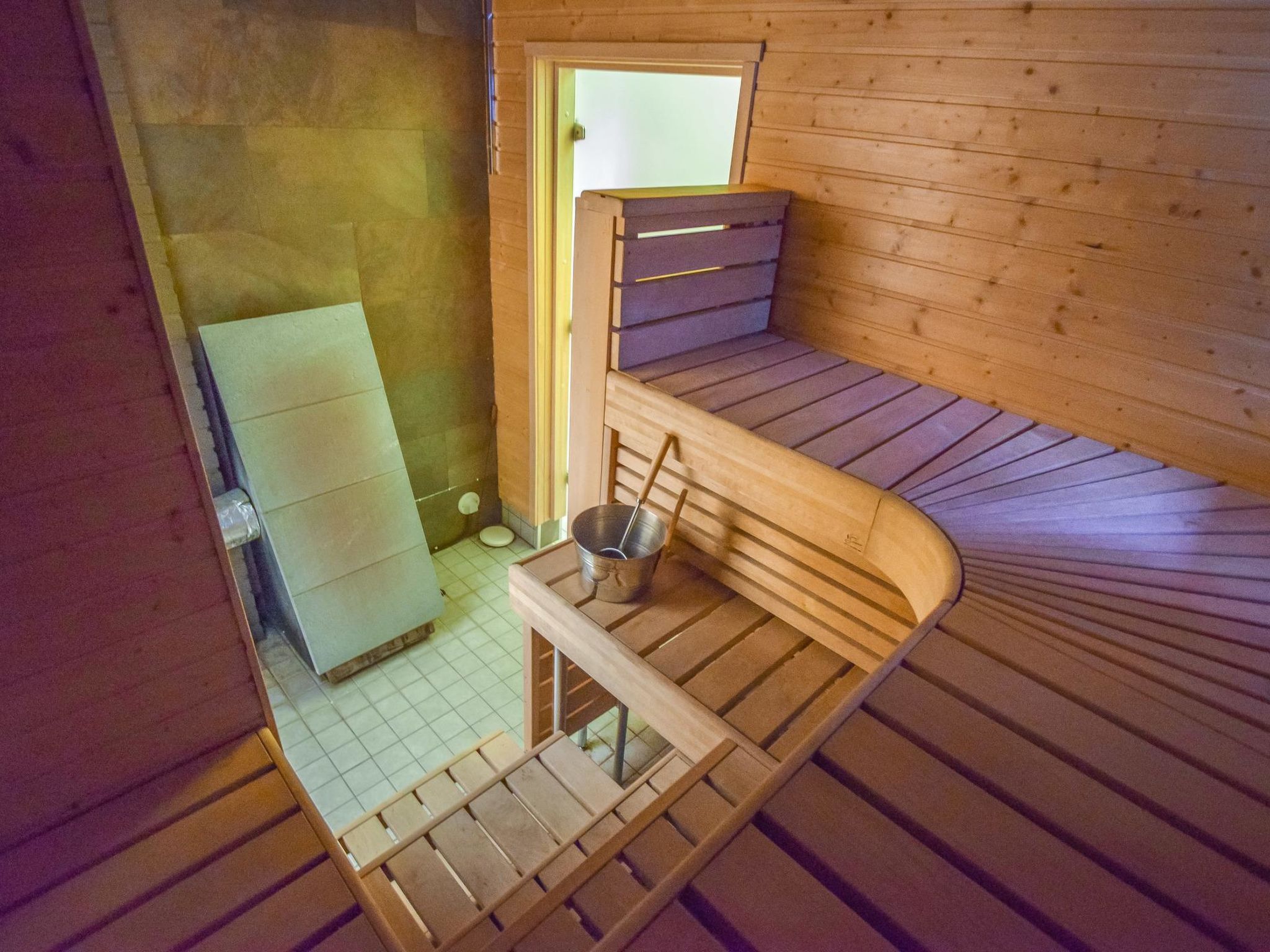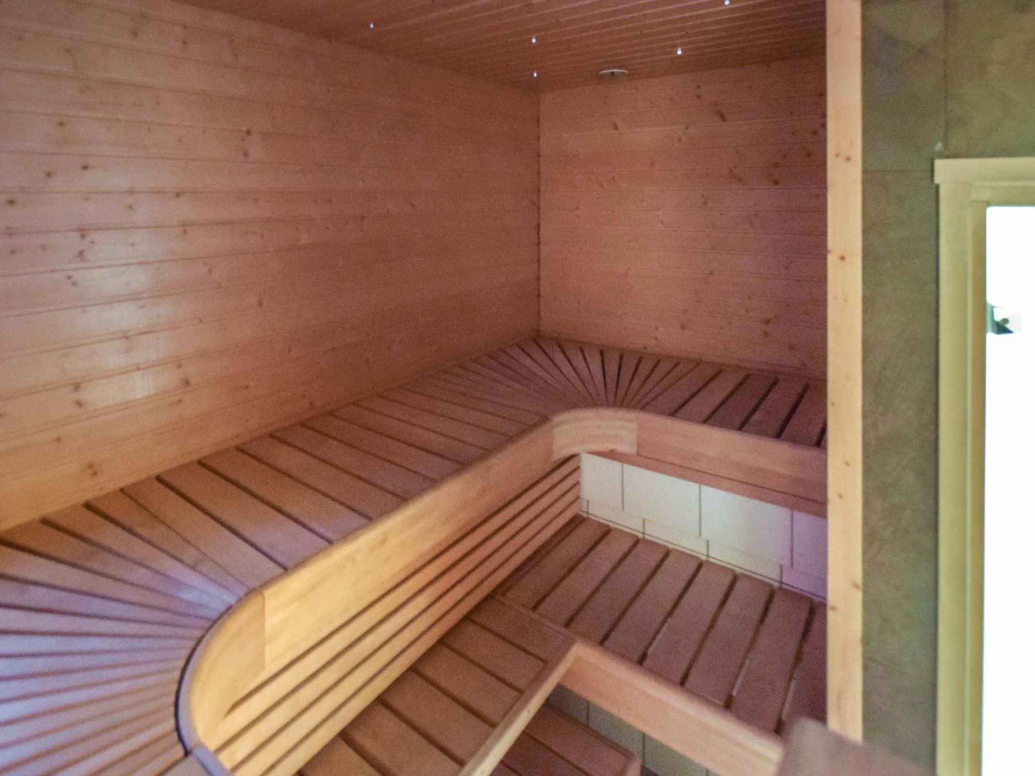 57 km östlich von Jyväskylä, Skigebiet Häkärinteet 4 km entfernt, See Sauvonen 2.5 km entfernt (Breite 0.5 km, Länge 2.5 km). Hochwertiges Blockhaus, Baujahr 2012. Im Erdgeschoss befindet sich Wohnküche mit Schlafcouch und TV, Waschraum, Sauna (Holz- und Elektro-Ofen), Kaminzimmer mit Doppelbett, Toilette. Im Obergeschoss Schlafzimmer mit 1 Doppelbett und Schlafzimmer mit 1 Doppelbett + 1 Einzelbett und TV. Im Obergeschoss, im Wohnbereich, Schlafsofa, TV und gute Tonausstattung. Alle drei Fernseher zeigen Satellitenkanäle an. Auf der grossen überdachten Terrasse finden Sie Holz-Whirlpool, Gasgrill und Esstisch. Josala ist ein hochwertiges und gut ausgestattetes Ferienhaus. Es gibt auch Dusche im Schlafzimmer/Zimmer mit Kamin, aber die wird vor allem beim Kommen/Gehen vom/zum Whirlpool verwendet. 4 km entfernt befindet sich das Skigebiet Häkärinteet. Nach gesonderter Bezahlung / Vereinbarung vermietet der Eigentümer zwei Motorschlitten, Schneemobil-Loipe ist 200 m entfernt. Das Ferienhaus liegt nicht an einem See (Entfernung zum Strand 2.5 km), aber die Nutzung des Aussenwhirlpools (und der ersten Heizung) ist in der Miete enthalten. Strand am See Iso-Virmas (Sandboden, flach), Entfernung 2 km mit dem Auto + 500 m zu Fuss. Häkärinteet 4 km, Revontuli 10 km (18-Loch-Golfplatz, Tanzrestaurant, Kegelbahn), Reitschule 20 km, Kurhotel Laajavuori 62 km, Bahnhof Hankasalmi 16 km, Pieksämäki 37 km, Flughafen Jyväskylä 74 km, Varkaus 78 km, Kuopio 100 km.