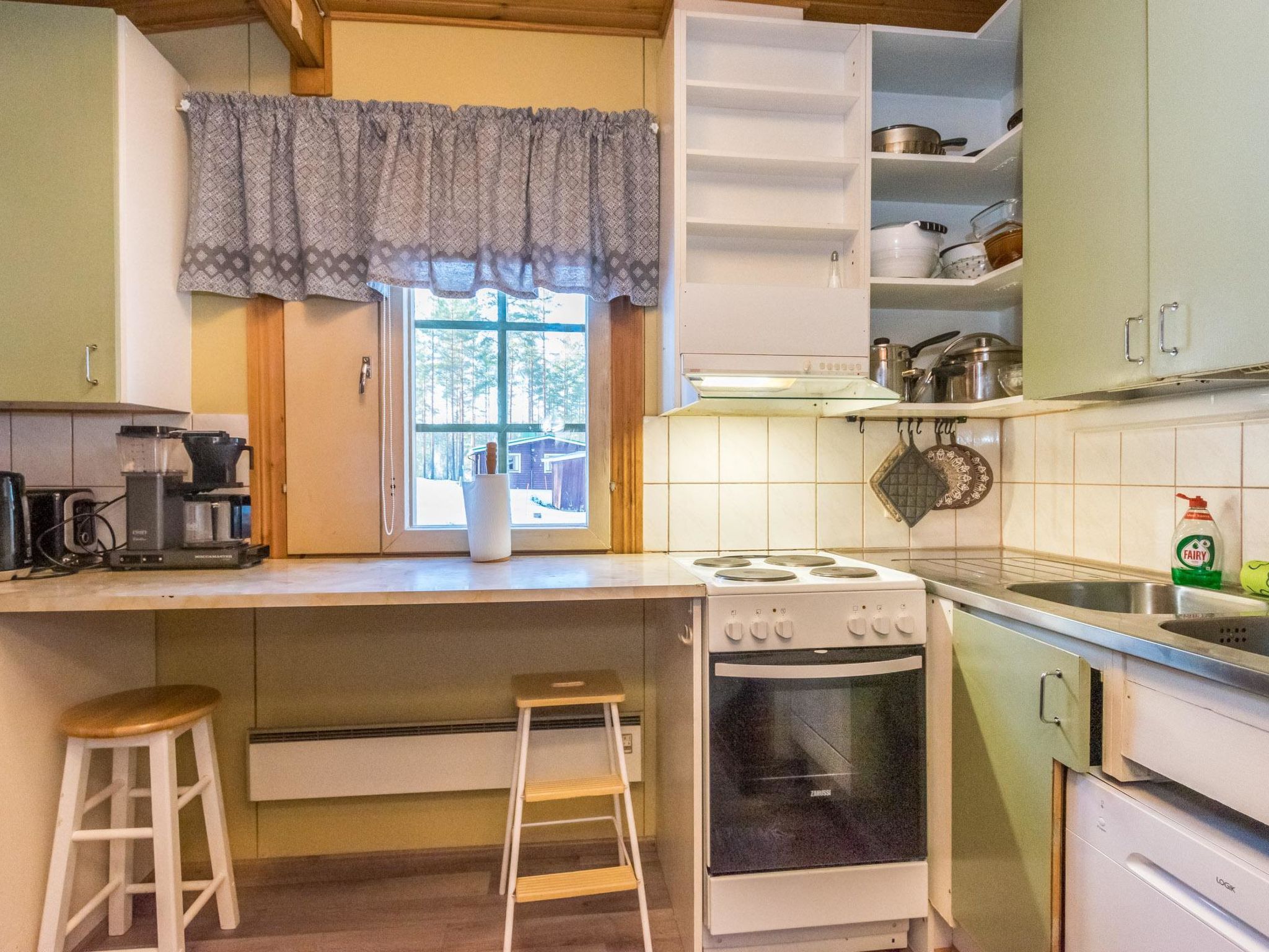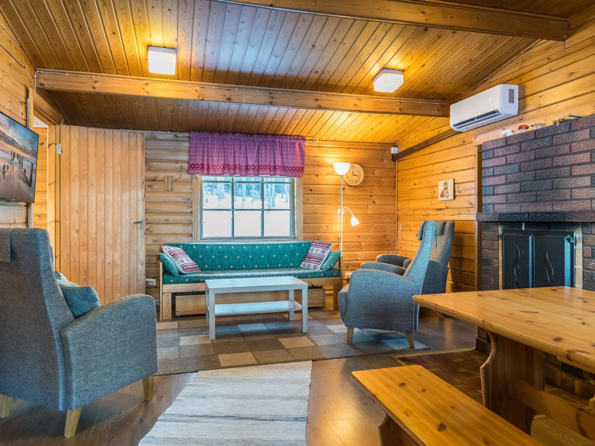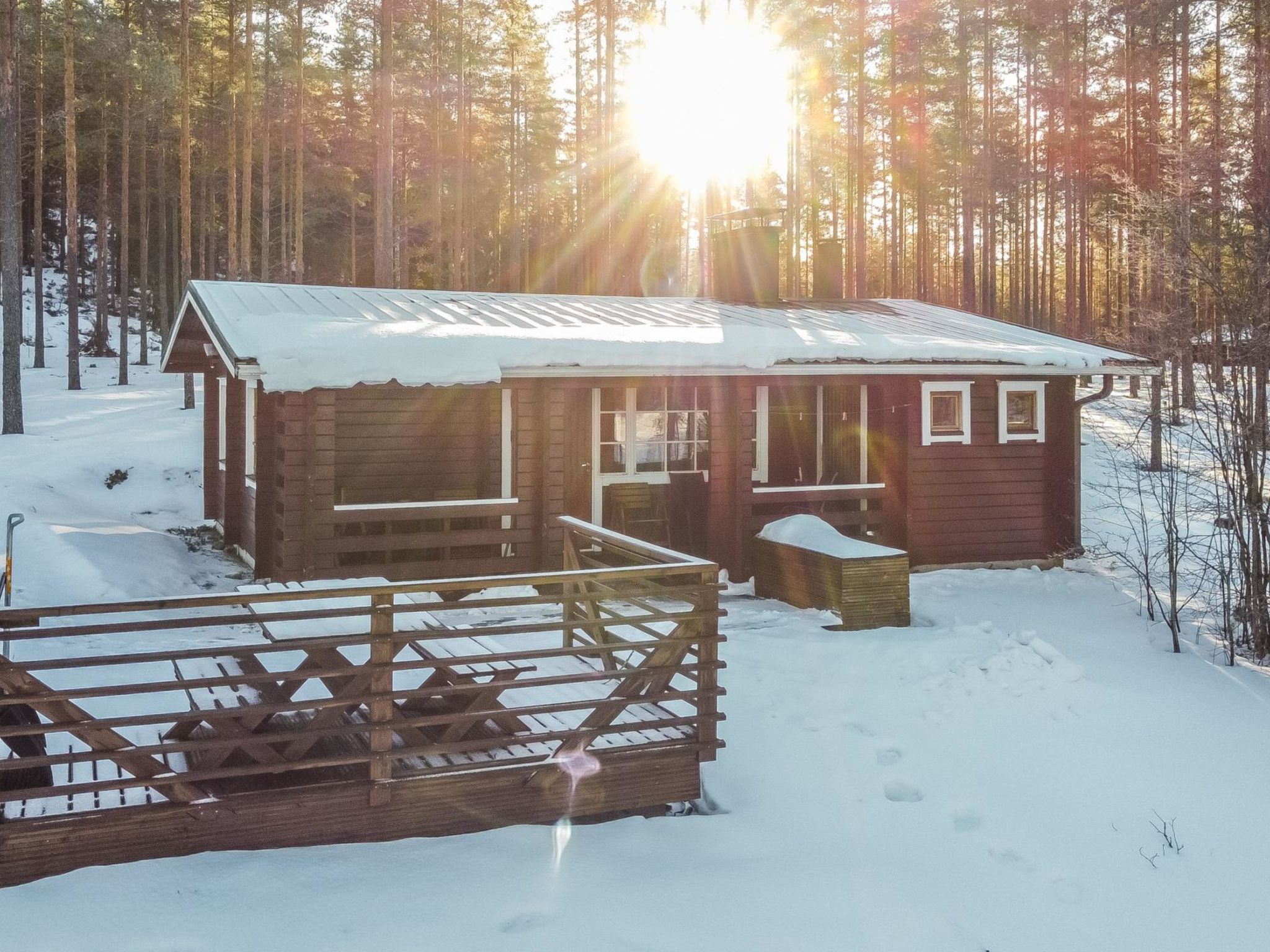 240 km nördlich von Helsinki, See Kankarisvesi 25 m (Länge 10 km, Breite 500 m), flaches Wasser, fester Sandboden. Eigenes Boot. Blockhaus, Baujahr 1991, Küche, Wohnzimmer mit 2 Zusatzbetten, Schlafzimmer mit Doppelbett, Schlafzimmer mit Etagenbett, Ankleideraum, Sauna und WC (Eingang durch Veranda), offene Veranda. Lage am See Kankarisvesi, mit familienfreundlichem und flachem Sandboden. Verfügbares Kinderbett und Hochstuhl. Gute Outdoor- und Wandergebiete in der Nähe. Pilz- und Beerenwälder auch in der Nähe. Gepflegte Skipisten im Winter. Haustiere gegen Aufpreis von EURO 30 erlaubt, max. 1-3 Haustiere.