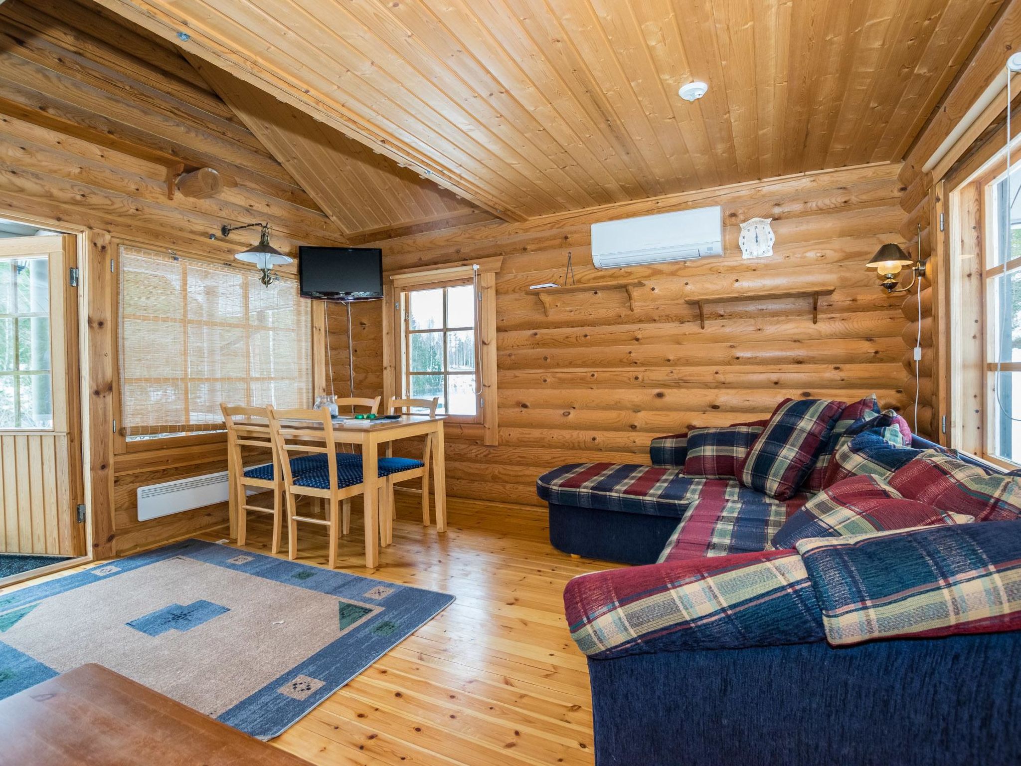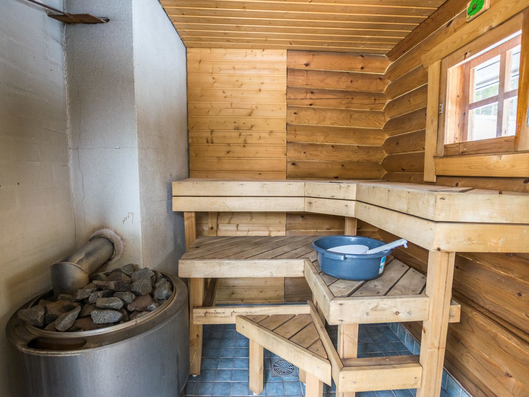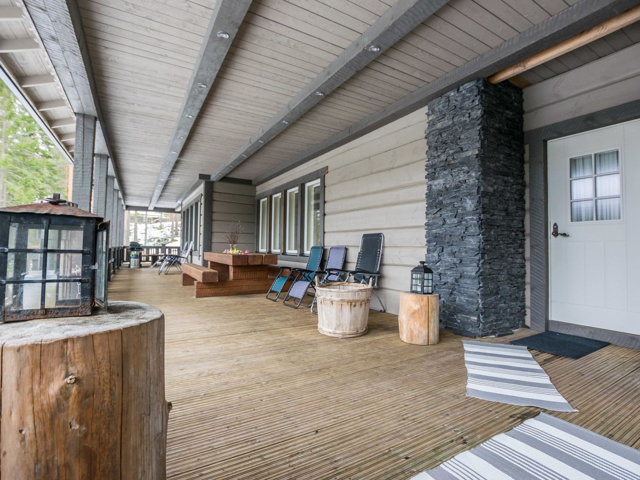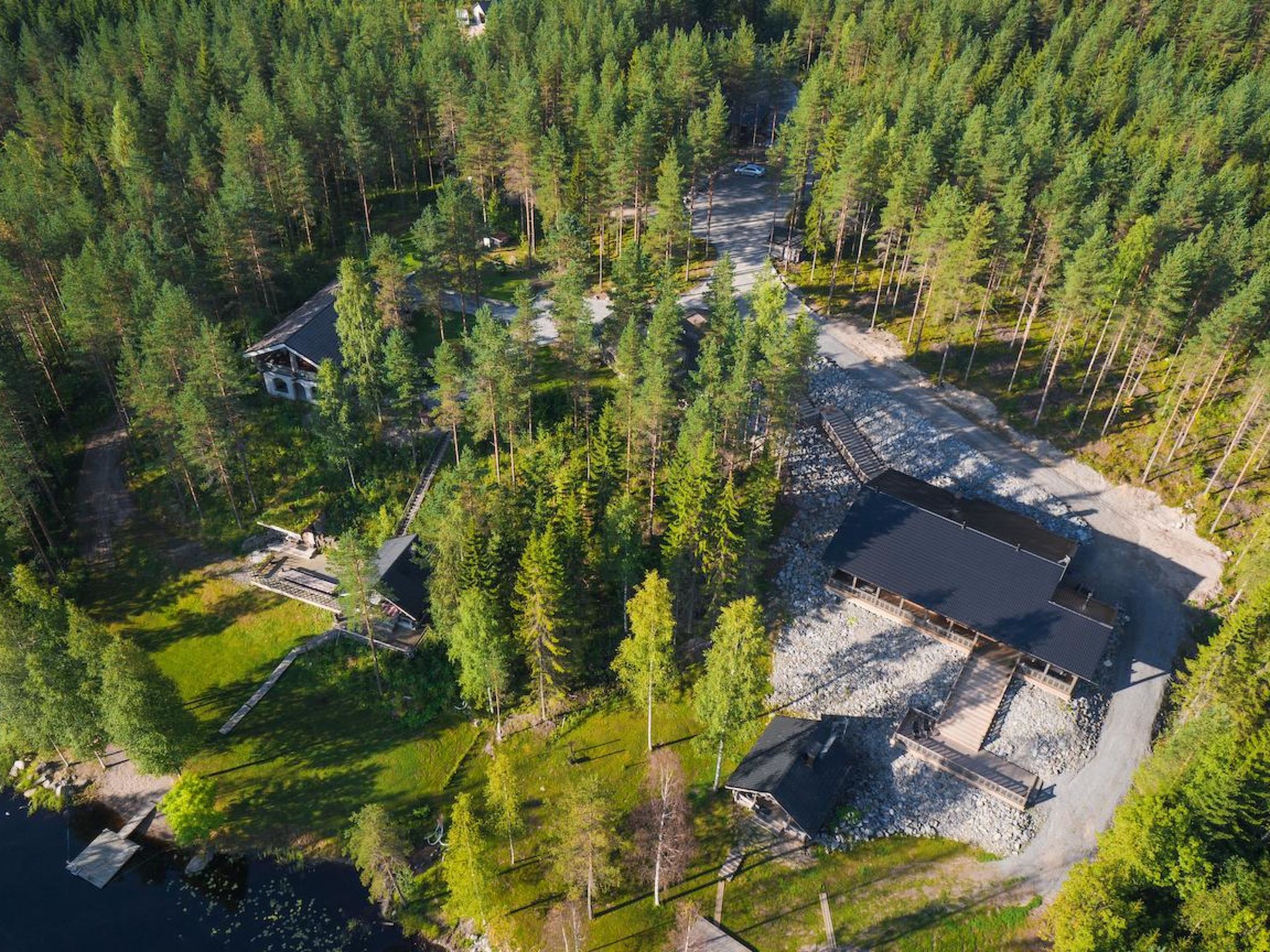 70 km westlich von Jyväskylä, See Sammionselkä 40 m (Länge 4.7 km, Breite 200 m), flach abfallender, sandiger Lehmboden, eigenes Boot und Bootanlegestelle. Geräumige Blockhausvilla, Wohnküche 97 m², Diele, 2 Schlafzimmer mit je 3 Betten, Schlafzimmer mit 1 Bett, 2 Schlafzimmer mit je 2 Betten, Hauswirtschaftsraum / Ankleideraum, Duschraum, Sauna, Terrassen von 200 m². Seesauna, die nur von Juni bis September zur Verfügung steht. In der Sauna am See stehen 6 Zustellbetten gegen eine separate Gebühr zur Verfügung, sodass von Juni bis September insgesamt 17 Betten zur Verfügung stehen. Auf der Terrasse der Villa befindet sich Whirlpool, der gegen eine separate Zahlung/Vereinbarung gemietet werden kann. Die Villa verfügt über mechanische Belüftung, DVD und Karaoke-Ausrüstung. Grosse Villa auf hellem Hanggrundstück. Flacher Hof. Von der Villa gibt es einen steilen Hang zum Ufer, Stufen auf dem Weg und Zwischenterrasse. Auf dem Strand Lagerfeuerplatz, Fischräucherkiste und Anlegestelle. Schaukel für Kinder und Spiele im Freien. Hunde sind in der Hauptvilla nicht gestattet, dafür aber in der Seesauna. Reitstall Korpi-Jukola 5 km, Moksunniemi Golf 60 km, Keuruun Touristenzentrum Kamana und Elias Lönnrot Raddampfer 10 km. Fliegenfischerplätze: Virtalankoski 3 km, Palsankoski, Housukoski und Käpykoski 25 km. Haapamäki Dampfmaschinenpark 24 km, Jyväskylä Flughafen 73 km, Mänttä Kunststadt 40 km entfernt.